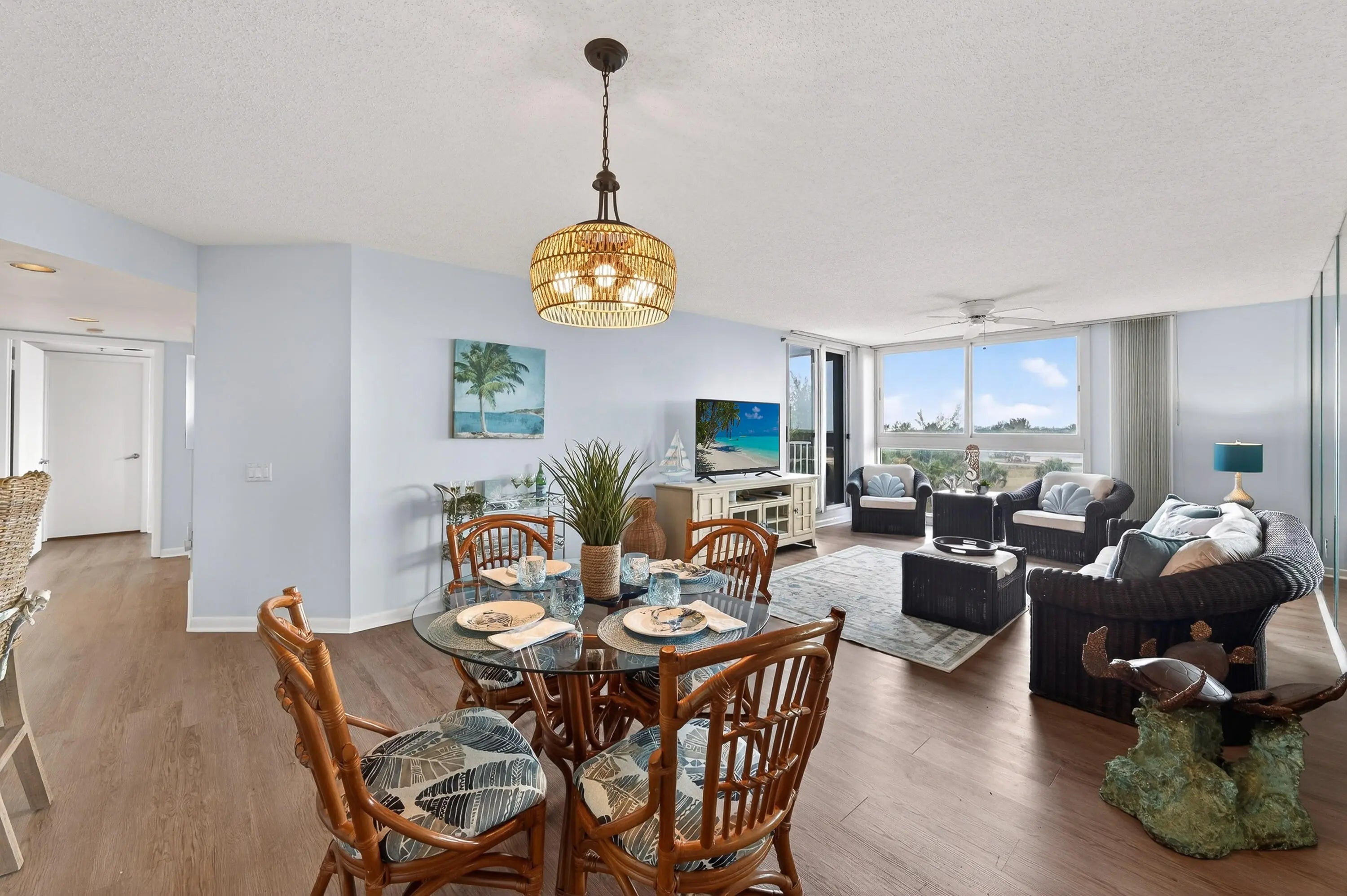 Welcome to Paradise! Southeast ocean and pool views from the sunny side of Aquanique. The Marlin floor plan offers 1,320sf of living space plus a generous 165sf balcony, perfect for morning coffee or evening ocean breezes. Inside, soft blue tones complement the coastal decor creating a light and relaxing atmosphere throughout. Furniture negotiable, allowing for a turnkey opportunity. Upgrades include storm shutters, laminate flooring, granite countertops, stainless steel appliances and newer AC. Aquanique Ocean Club offers private beach access and resort style amenities. Building upgrades include a new roof and balcony restoration/exterior paint. Assessments are all PAID, milestone reports COMPLETE and maintenance fees DECREASED last quarter. Secure you place in paradise today!
