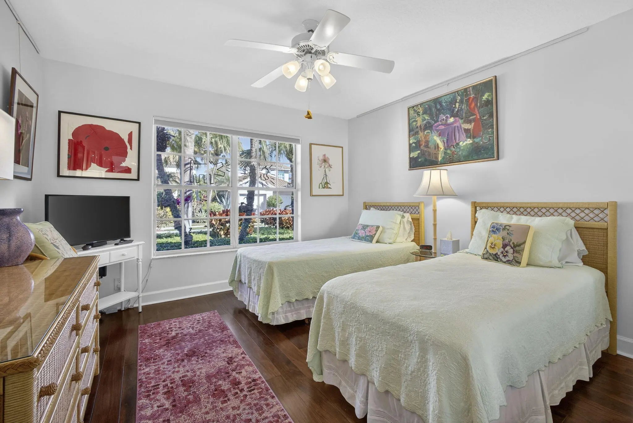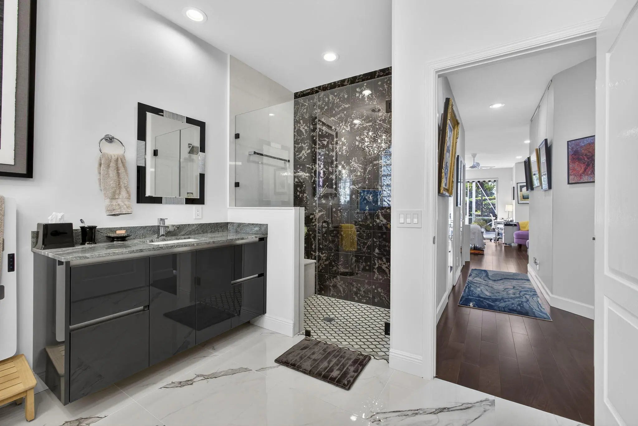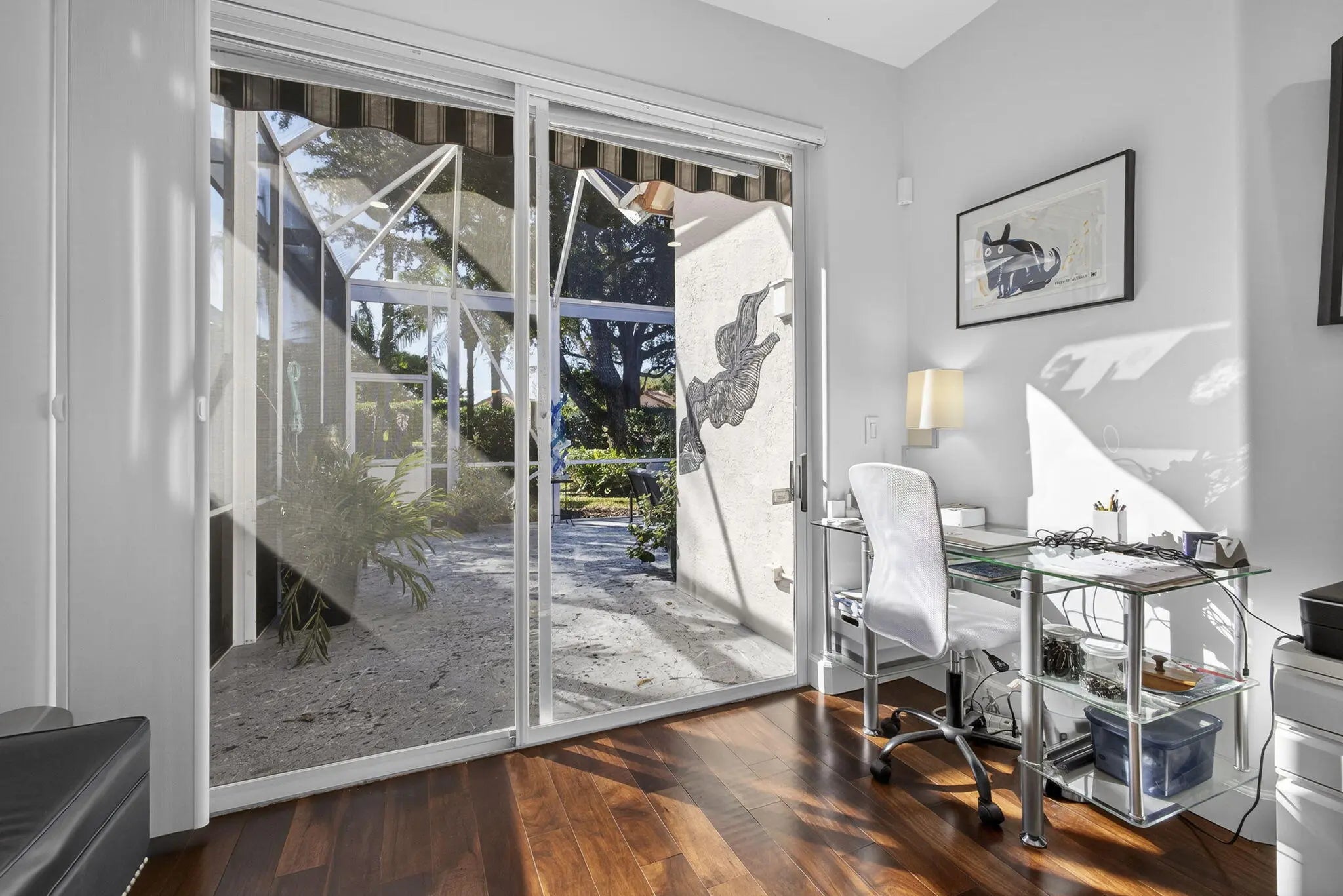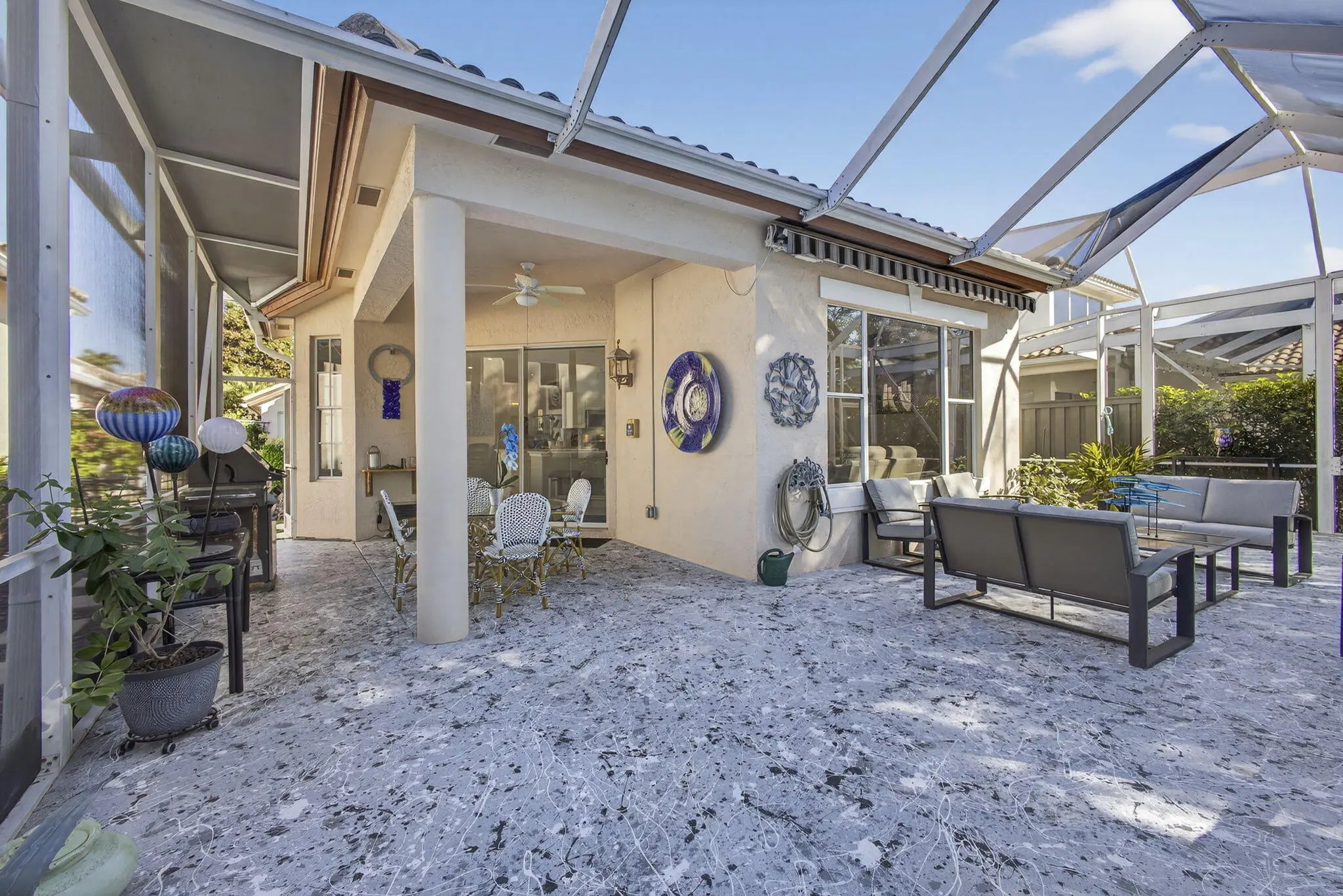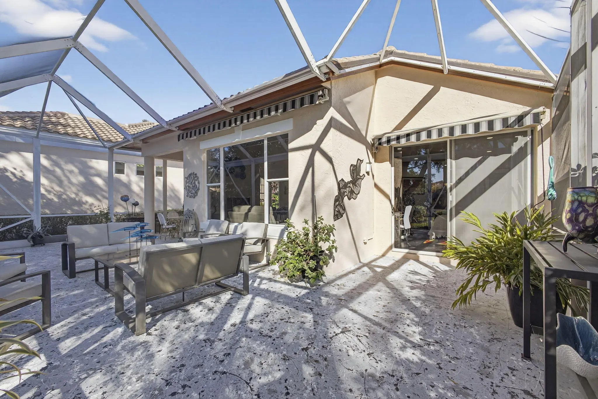Located in the Augusta Pointe neighborhood behind the gates of Eagleton in PGA National this beautifully maintained 3-bedroom, 3-bath residence features a natural light-filled home with a floorplan that flows from one space to the next, creating an inviting atmosphere for everyday living and entertaining. The primary suite has been thoughtfully updated with a spa-inspired bathroom, featuring a roll-in shower, modern finishes and Toto Toilets. Updated countertops throughout ,wood flooring in the bedrooms ,modern window coverings, built in shelfing and a whole-house natural gas generator are just a few of the luxury upgrades providing you peace of mind. Very private backyard space welcomes your pets and parties ! Don't miss this home ! Make it yours this season ! Redesigned patio spaces offer a private retreat, complete with an automatic awning and integrated LED lighting within the oversized screened in area. Side yard has concrete pavers with artificial turf and modern artwork. Set within PGA National, residents enjoy a resort-style lifestyle surrounded by lush landscaping, championship golf, and a vibrant sense of community. Home to the renowned Cognizant Classic, PGA National offers optional club membership and easy access to dining, shopping, and the beaches of Palm Beach Gardens. This residence presents a wonderful opportunity to enjoy a relaxed yet elevated lifestyle in one of the area's most established and sought-after communities.