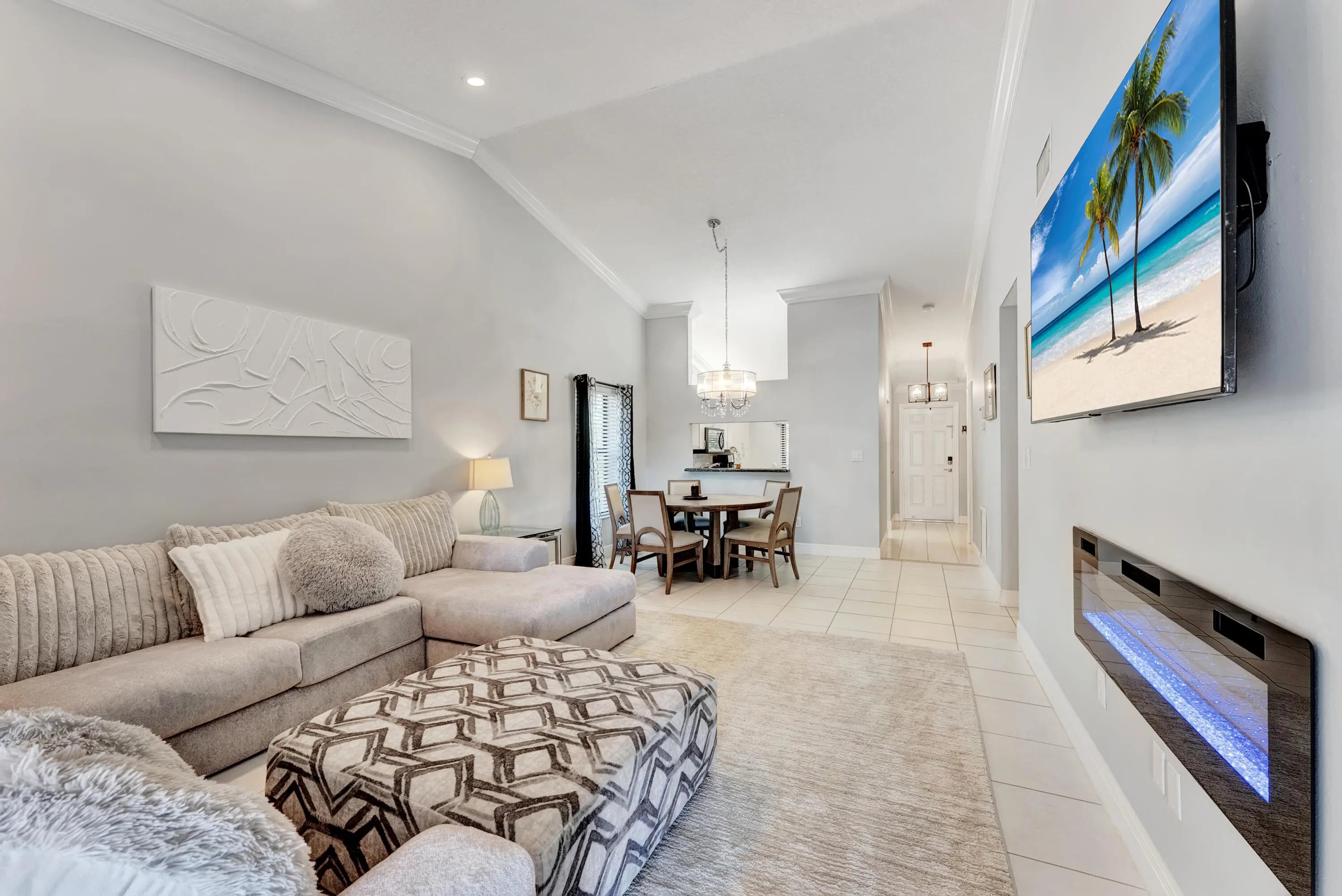 Welcome to 8379 Boca Glades Boulevard, a light-filled waterfront corner villa offering tranquil views, thoughtful upgrades, and an exceptional Boca Raton lifestyle. This bright, airy residence features ceramic tile throughout the entire home (including the enclosed patio), recessed lighting, and a recessed remote-control fireplace with heater for added ambiance and comfort. The gourmet kitchen is appointed with granite countertops and stainless steel appliances ideal for everyday living and entertaining. Enjoy peace of mind with impact-rated front door and windows throughout, plus accordion shutters on the enclosed patio, which is fully air-conditioned and perfect for additional living space. The spacious primary suite offers a generous walk-in closet, patio access, and well-appointed ensuite bath featuring an installed wall towel warmer. French doors open to the second bedroom, creating the perfect flex space for a den, office, or guest room. Boca Glades is a vibrant, amenity-rich community offering pickleball, tennis, clubhouse, fitness center, jacuzzi, sauna, pool, game room, and library, creating a true social lifestyle. HOA includes landscaping, roof cleaning, exterior paint, building insurance, water, cable, internet, pest control, and strong reserves (18%). Information published or otherwise provided including but not limited to prices, measurements, square footages, lot sizes, calculations and statistics are deemed reliable but are not guaranteed and are subject to errors, omissions or changes without notice. All such information should be independently verified by any prospective purchaser or seller. Parties should perform their own due diligence to verify such information prior to a sale or listing. The information herein is believed to accurate but not guaranteed and may be subject to errors, omissions and changes without notice. All measurements, dimensions, room sizes and lot sizes are approximate.