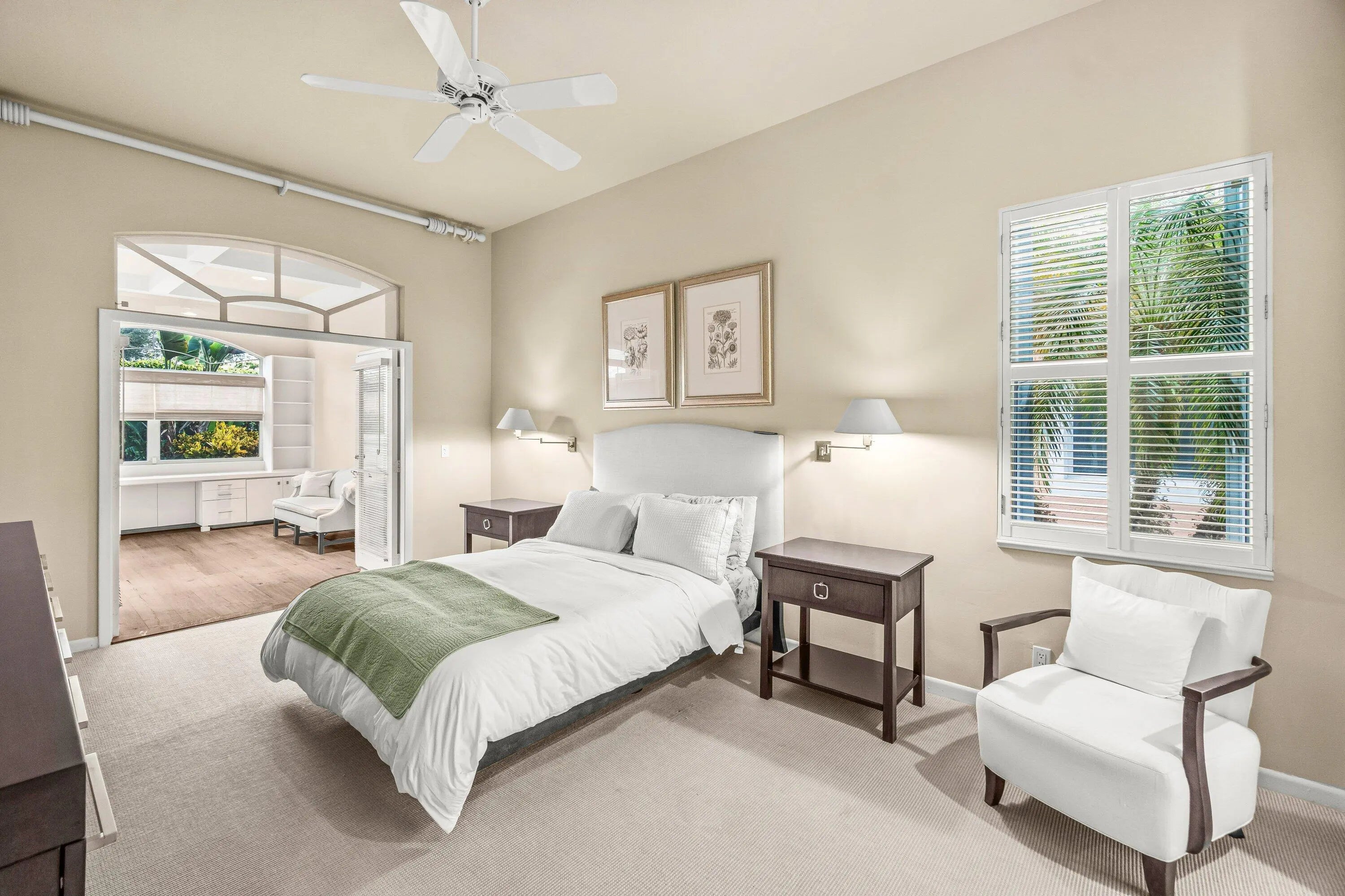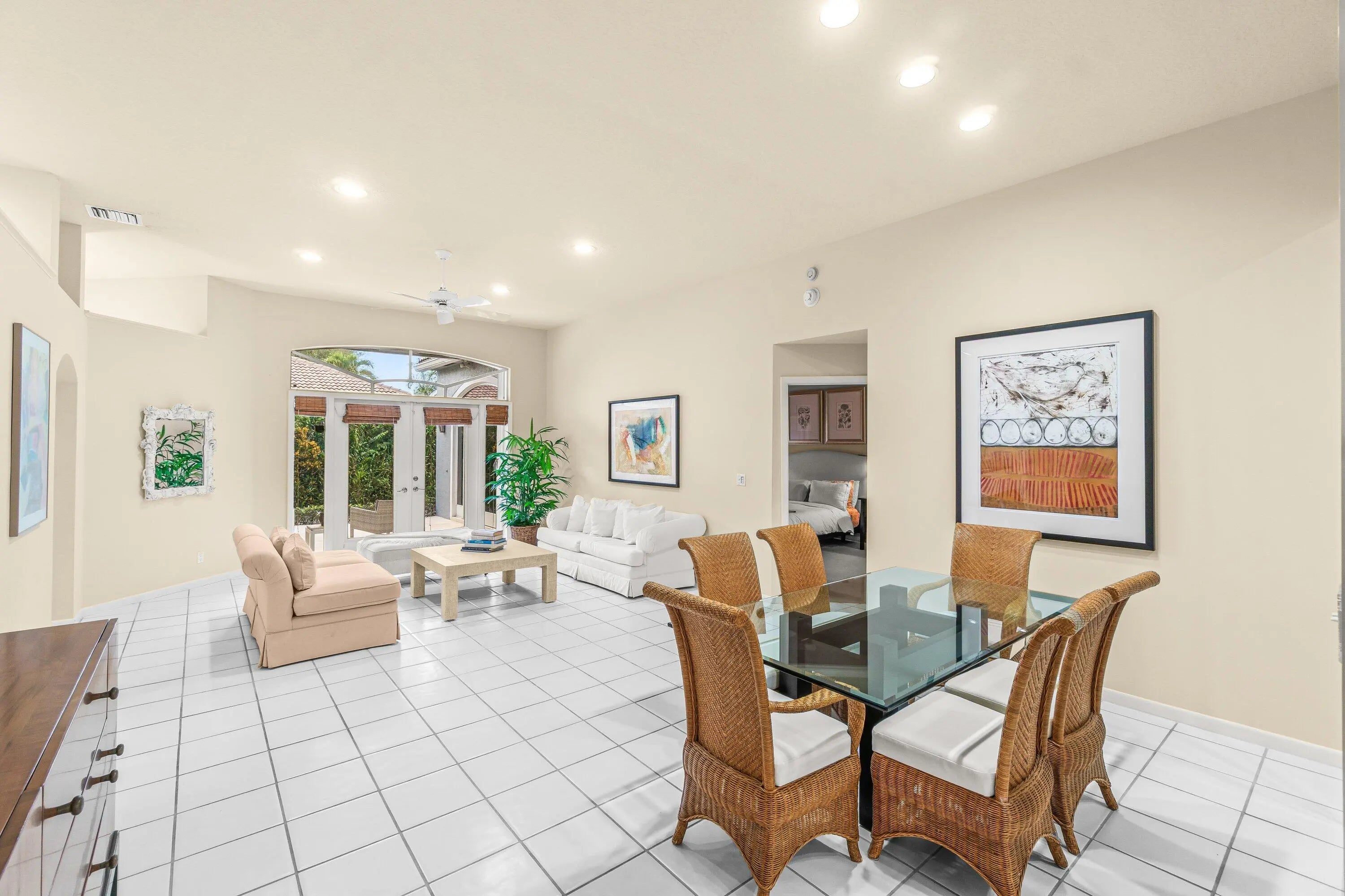 Welcome to this beautifully maintained residence in the highly sought-after, manned-gated community of Costa Del Sol at Boca Pointe. Featuring a bright open layout, soaring and tray ceilings, plantation shutters, and expansive living areas, this home blends comfort with effortless indoor-outdoor living. The spacious primary suite offers a private sitting room—ideal for an office, reading nook, fitness space, or retreat—along with generous closet space and a well-appointed bath. Step outside to a tranquil covered patio surrounded by lush tropical landscaping, creating a peaceful setting for relaxing or entertaining. Just a 2-minute stroll to the community pool. HOA includes cable, 24-hour security and common area maintenance. Minutes to beaches, Mizner, Town Center, dining, and top schools Located within the highly sought-after, manned-gated community of Costa Del Sol at Boca Pointe, residents enjoy a low-maintenance lifestyle with cable, 24-hour security, community pool, and beautifully maintained common areas included in the HOA. Optional membership at The Club at Boca Pointe offers access to an 18-hole championship golf course designed by Jack Nicklaus, world-class tennis, a state-of-the-art fitness center, resort-style amenities, fine dining, and a vibrant calendar of social events, all with no mandatory equity fees. Ideally situated in central Boca Raton, this home is just minutes from Town Center Mall, Mizner Park, Downtown Boca, pristine beaches, and top-rated Palm Beach County schools. With its prime location, open layout, and access to the best of South Florida living, this home offers an exceptional opportunity to experience the Boca Pointe lifestyle.