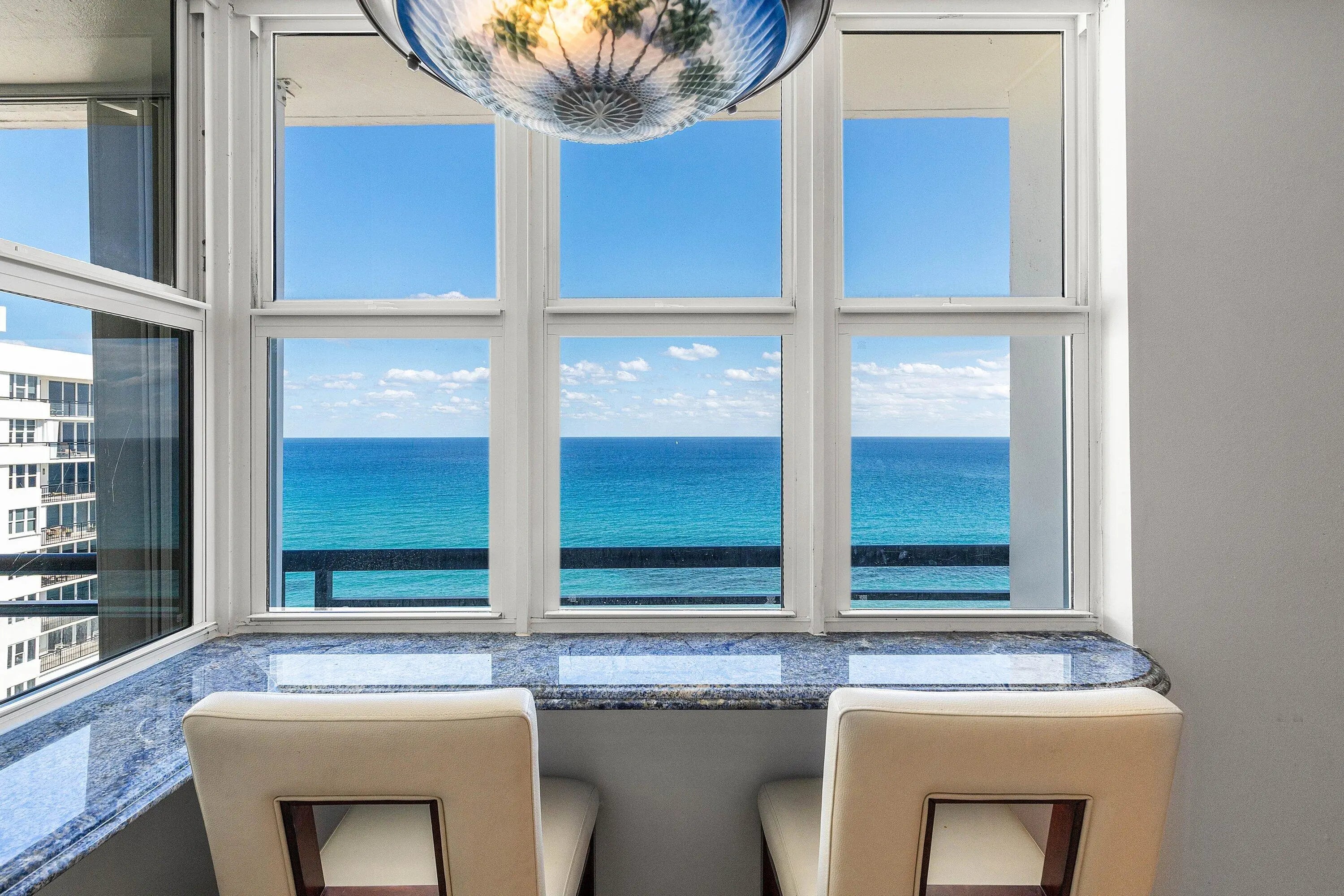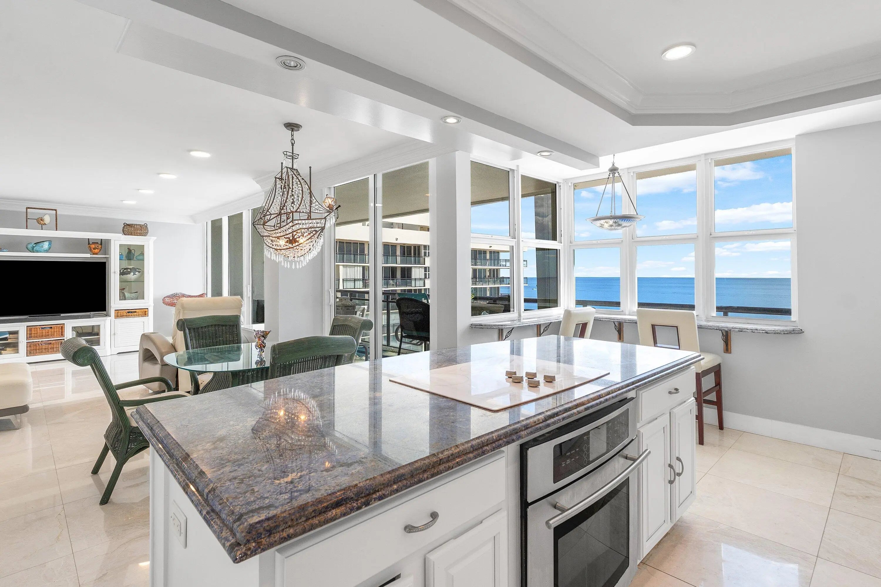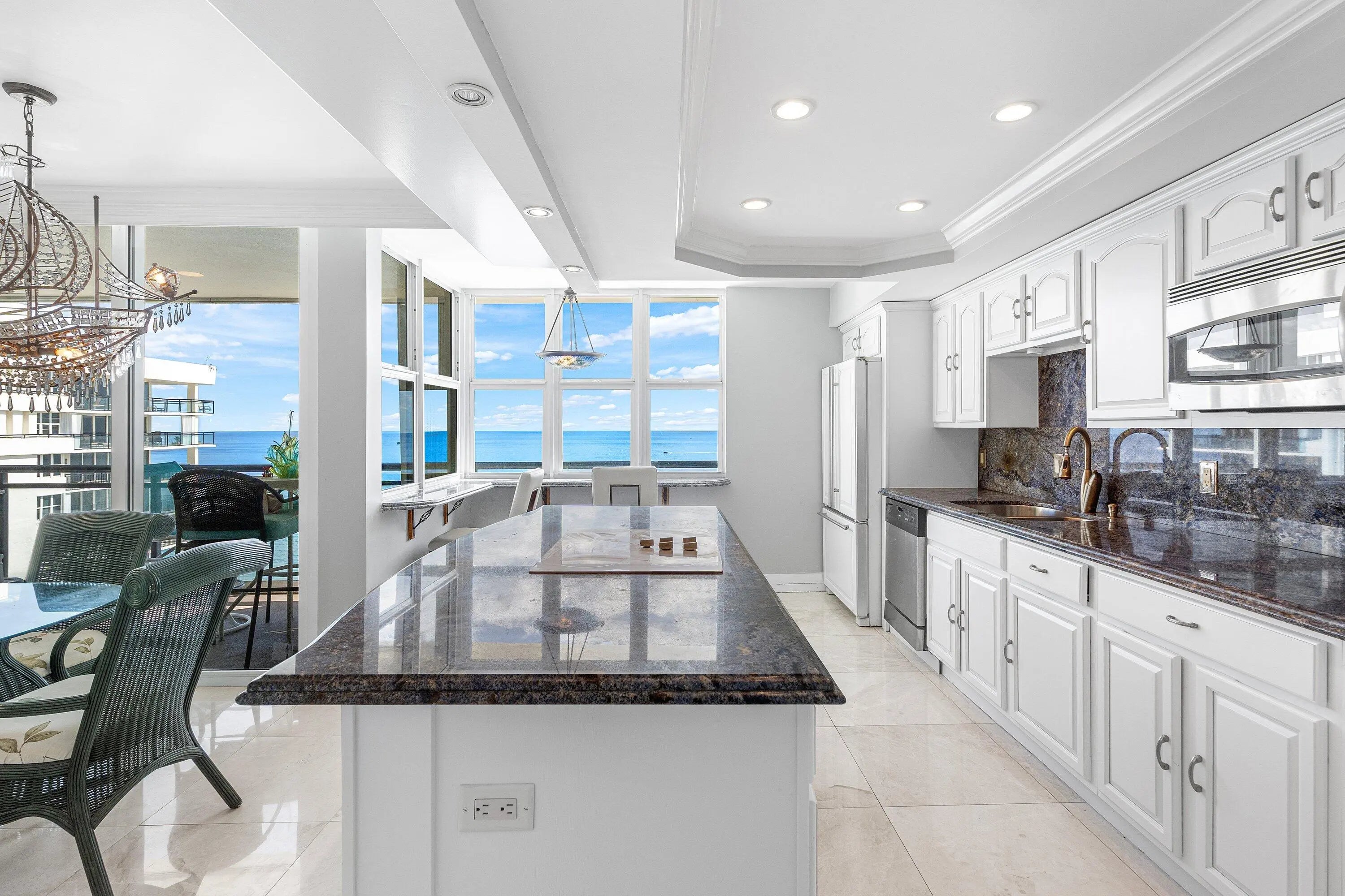 Lower Penthouse | Oceanfront Luxury at Whitehall | Boca Raton Experience oceanfront living at its finest in this spectacular lower penthouse residence at the prestigious Whitehall in Boca Raton. Offering approximately 1,400 square feet of beautifully reimagined space, this fully renovated 2-bedroom, 2-bathroom home showcases sweeping panoramic ocean views from nearly every room. Meticulously redesigned from the studs up, this residence features the highest quality finishes and craftsmanship throughout. Elegant marble flooring flows seamlessly across the entire home, extending into the spa-inspired bathrooms where marble-clad walls create a refined, resort-like ambiance. Floor-to-ceiling impact sliding glass doors frame the coastline and flood the interior with natural light, blending indoor sophistication with breathtaking seaside views. The custom gourmet kitchen is a true showpiece, appointed with rare blue granite countertops, custom cabinetry, premium appliances, and a double undermount beveled sinkperfectly designed for both everyday living and entertaining. Both bathrooms have been luxuriously updated with designer fixtures, custom wood cabinetry, and spa-quality finishes, including a relaxing Jacuzzi tub. Thoughtful details such as crown molding, refined millwork, upgraded electrical systems, modern lighting, and smooth finished ceilings further enhance the residence's polished aesthetic. Whitehall is a coveted five-star oceanfront building offering an unmatched lifestyle of comfort and convenience. Residents enjoy a state-of-the-art fitness center, sauna, resort-style pool and hot tub, expansive sundeck, beach attendants, BBQ area, 24-hour security, and on-site managementall just steps from the sand. Ideally located, you can walk to the Boca Raton Beach Club & Resort, explore the upscale dining and shopping of Mizner Park and Royal Palm Place, or enjoy the vibrant energy of Downtown Deerfield Beach. This is more than a residenceit's a serene seaside sanctuary. Your dream beach lifestyle awaits.