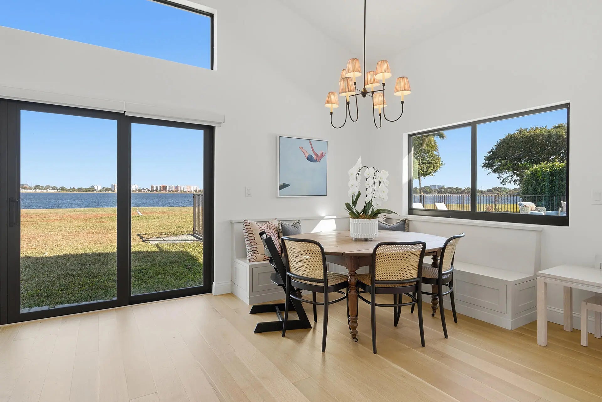 As though right out of the pages of Architecture Digest, Lakefront Luxury within a secure, 24hr gated community in the heart of West Palm Beach! Open the front door of this 4BED, 3BATH residence to a grand foyer and living room with cathedral ceilings, gorgeous hardwood floors - all flooded with natural light. The chef's kitchen features a gas range, custom cabinetry, marble counters all with a view of the pool and Lake Mangonia. Enjoy resort-style pool and 14,000+ sqft lot with designer landscaping. Bonus perks include: a fabulous pantry and Laundry room, an air conditioned 2-car+ garage with finished floors, a large mudroom and a new roof/gutters. Minutes to: Downtown West Palm Beach, Cityplace, Whole Foods, fine dining, shoppes, the beach, top-tier golf courses - Everything Palm Beach!