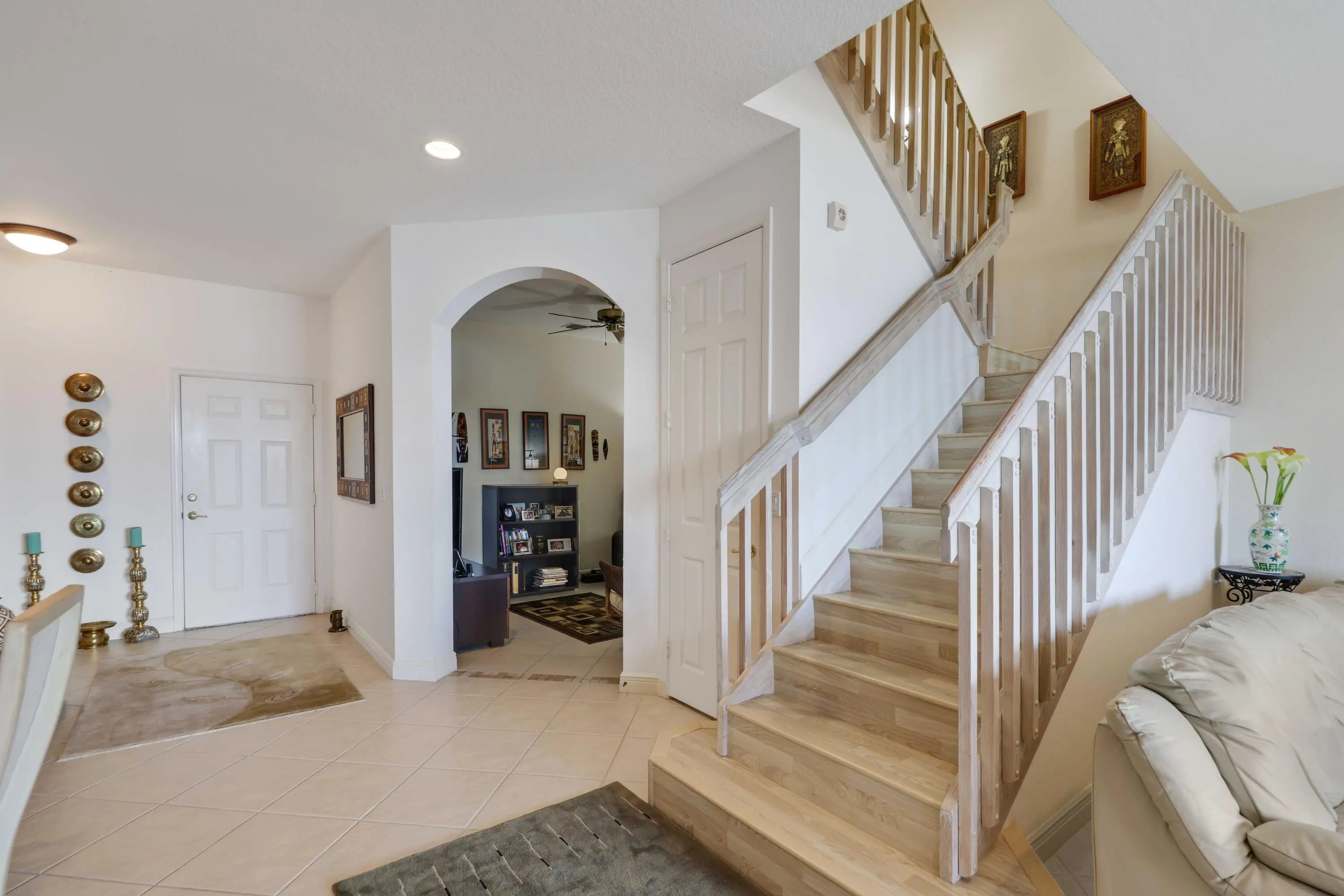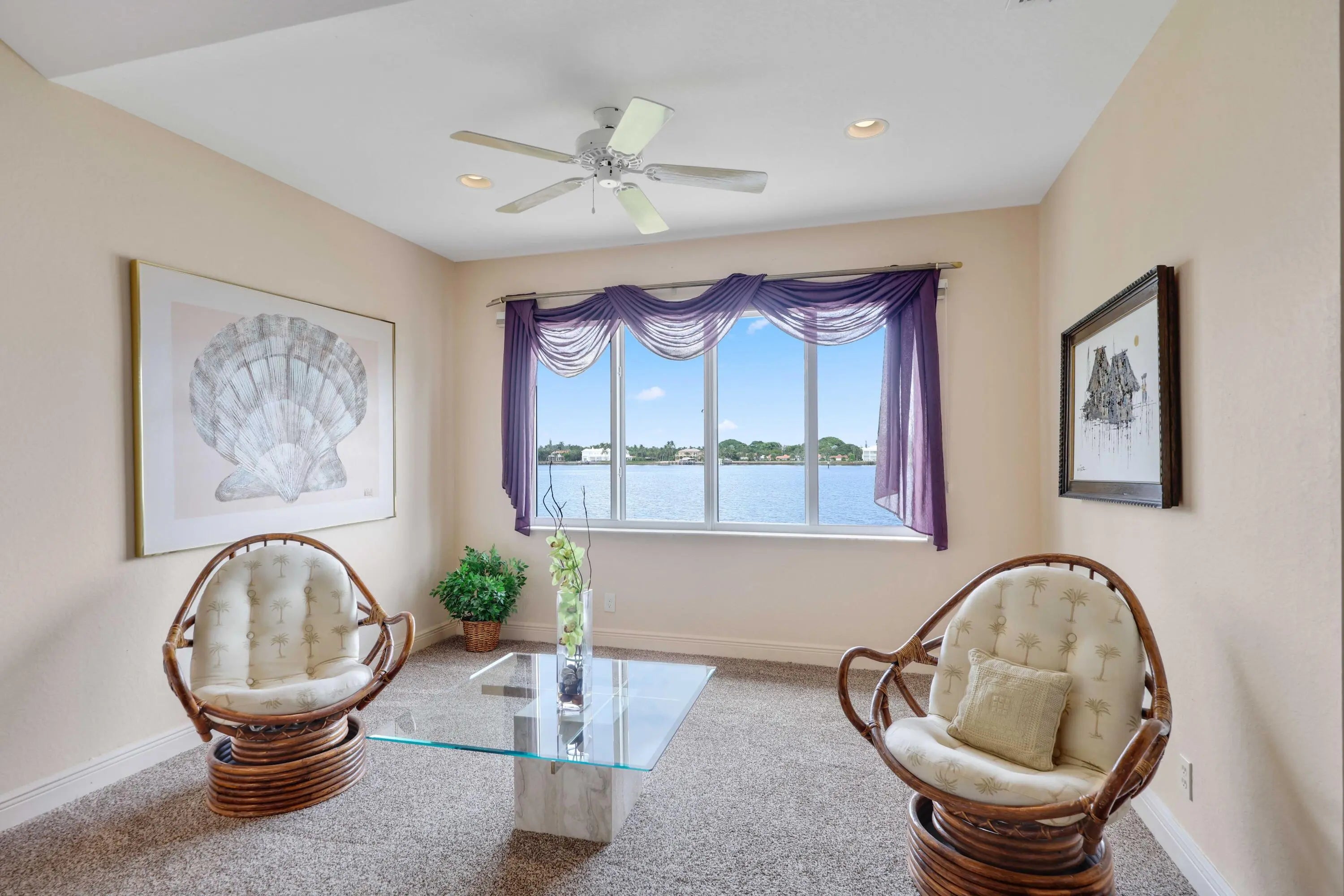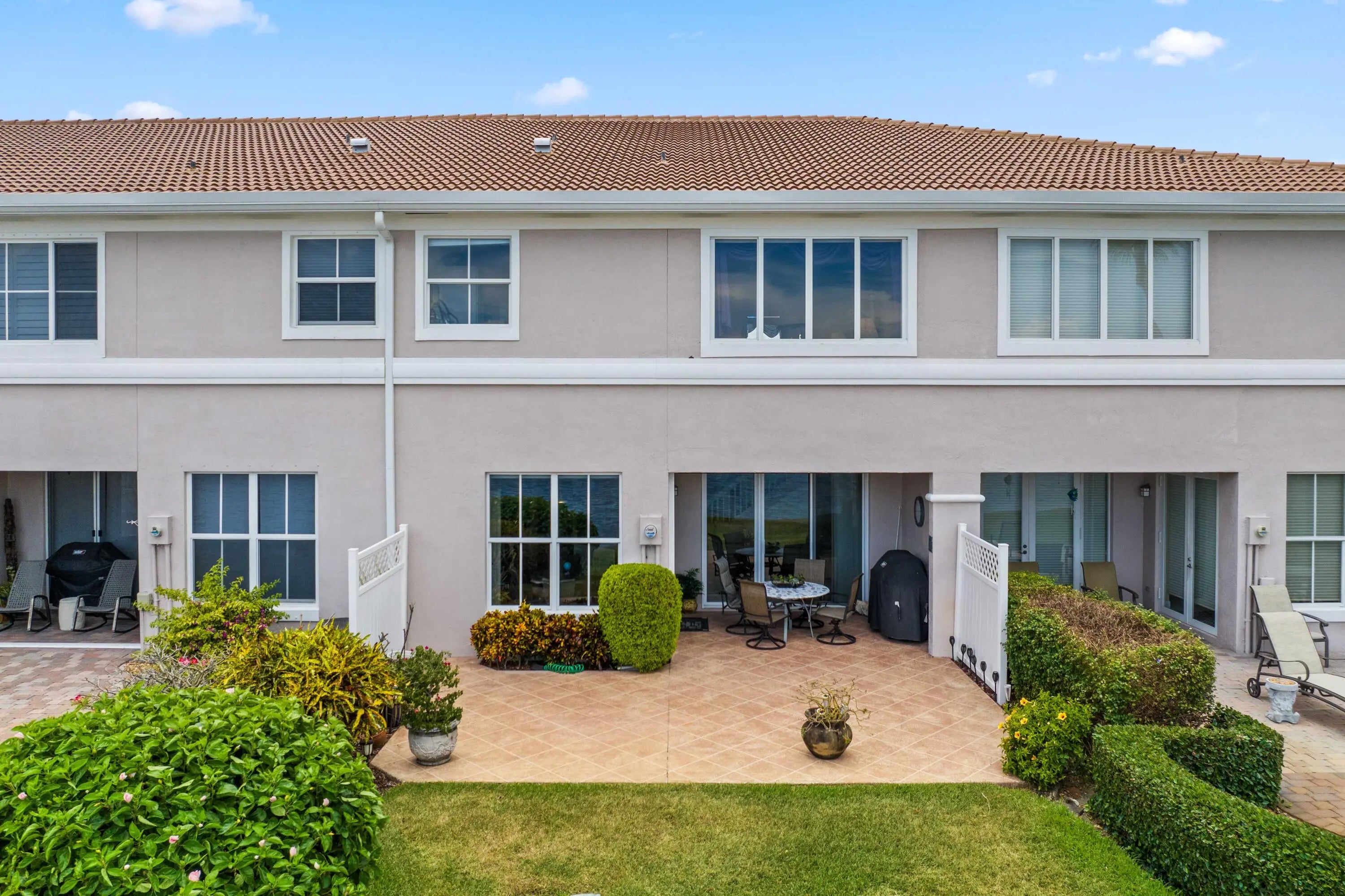 Welcome home to this RARELY AVAILABLE private beachfront townhome perched directly on the sandy shores of the Intracoastal--perfect for enjoying South Florida's indoor/outdoor lifestyle. This beautifully remodeled two story townhouse boasts three bedrooms plus large den, two and one half baths, and an oversized two car garage. As soon as you walk in the light-filled home, you are struck by the stunning Intracoastal views. The first floor's open layout includes high ceilings, a large den, powder room, dining room, open eat-in kitchen, and spacious living room. The living room and kitchen sliders open onto your backyard oasis including a covered patio with a hurricane proof, electronically retracting screen, a spacious open terrace, ample green space, and your own private Intracoastal beach. Enjoy your coffee while watching the sunrise over the water or wind down with a cocktail at the end of the day while taking in the spectacular wide water views. The gorgeous, open, eat-in kitchen boasts granite countertops, custom wood cabinetry and pantry, and stainless steel appliances including newer refrigerator and dishwasher. Whole house upgrades include a NEW ROOF, impact glass throughout, a new AC, and wood flooring on the stairs. The expansive primary suite boasts Intracoastal views, vaulted ceilings, a large sitting area, and massive walk-in closet. The primary bath has been beautifully remodeled and includes new vanities and glass shower with chic tiling. The oversized secondary bedrooms are located away from the master to provide more privacy and boast high ceilings and large closets. The laundry room is conveniently located upstairs and includes a sink. Las Brisas is a highly-coveted, pet friendly, gated Intracoastal community just minutes to Palm Beach, Downtown Delray, Boca, and the beach. Enjoy the waterfront lifestyle from the heated saltwater pool or private beach just feet from your home. Watch the boats go by or join the action with your kayak or SUP--this is Florida living at its best! Make sure to check out the video tour of the home in the listing!