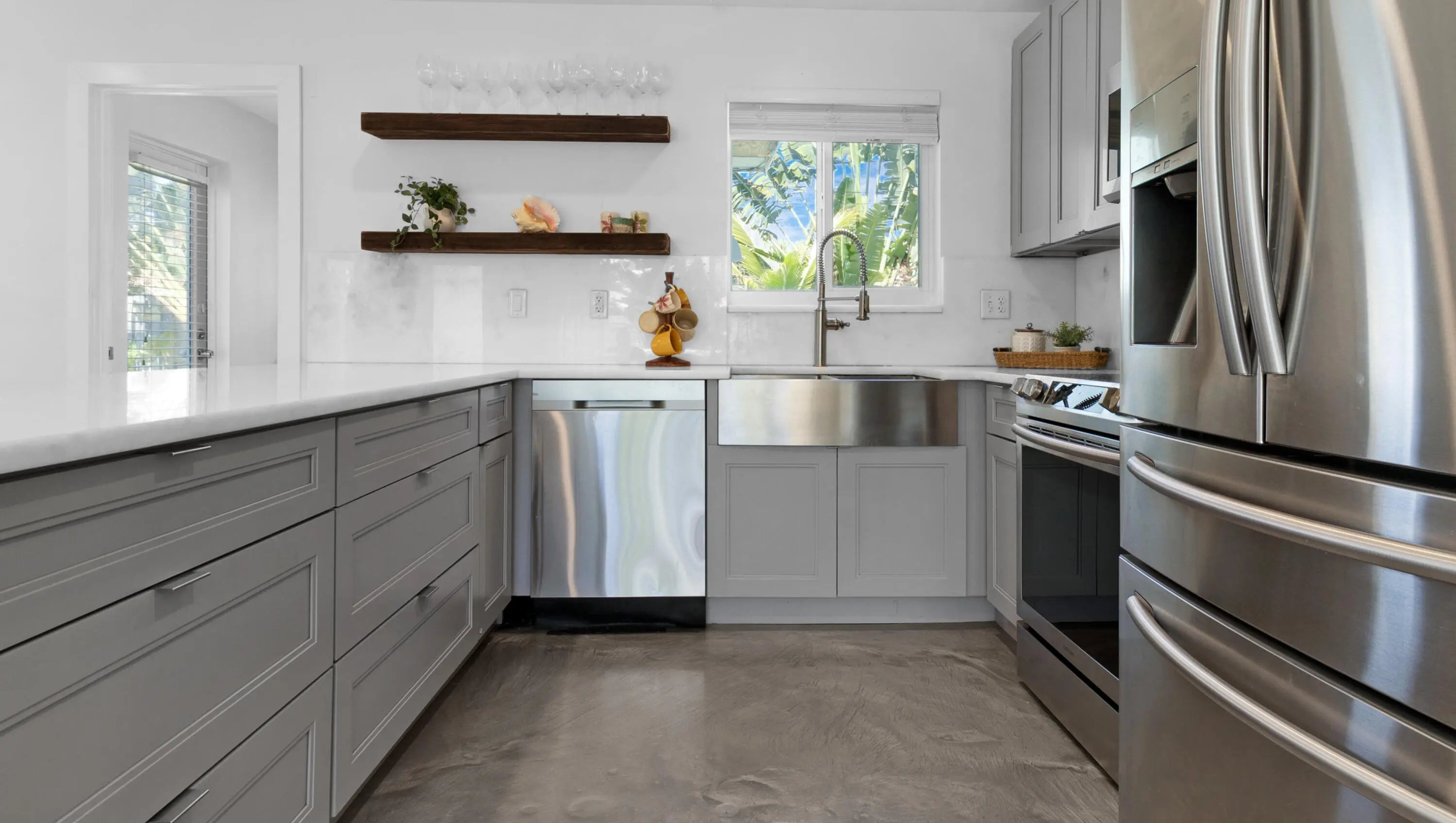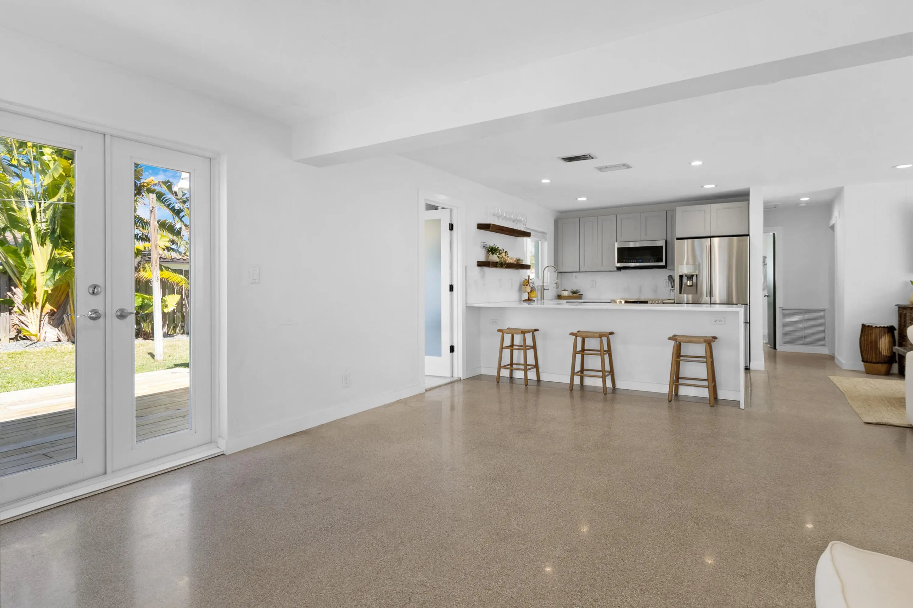 Welcome to this beautifully updated 2-bedroom, 2-bathroom home offering 1,145 square feet of bright, thoughtfully designed living space in one of Deerfield Beach's most desirable neighborhoods. Inside, you'll find a fully renovated kitchen and bathrooms with clean, modern finishes. The spacious waterfall island anchors the kitchen, complemented by a full suite of newer appliances, including oven, dishwasher, microwave, refrigerator, and garbage disposal. Large impact windows fill the home with natural light, while original terrazzo floors add timeless character. Both bedrooms feature wraparound windows, generous closets, and ample overhead storage. Impact French doors open to the tropical backyard, creating effortless indoor-outdoor living. Step outside to the newly built backyard patio deck and lush landscaping - including over 11 plumeria trees, enhanced privacy, and tropical greenery. Additional highlights include a 2020 roof, a spacious carport, and a new backyard shed for storage or gardening. Ideally located just 5 minutes from Deerfield Beach or a 15-minute bike ride away. Only 2 minutes to The Cove Shopping Center and close to Target, Starbucks, and a variety of popular dining and retail destinations. Enjoy DeGroff Park within minutes by bike or on foot, a local favorite for walking, jogging, and its own beach access. Deerfield Beach is one of South Florida's fastest-growing coastal communities, known for its award-winning beaches, walkable fishing pier, vibrant dining scene, and strong sense of community. The area offers a relaxed beach-town atmosphere supported by amenities that appeal to both full-time residents and seasonal visitors with convenient access to major highways, airports, parks, top-rated schools, golf courses, and premier pickleball facilities. For travelers and commuters, you'll have easy access to US-1, I-95, and the Sawgrass Expressway/Turnpike on ramp via SW 10th St. FLL Int'l Airport is about 25 minutes away, Miami Int'l Airport is 40 minutes away, and Palm Beach Int'l Airport is about 30 minutes away. Whether used as a primary residence, vacation retreat, or long-term investment, the area continues to attract buyers seeking coastal living with everyday functionality.