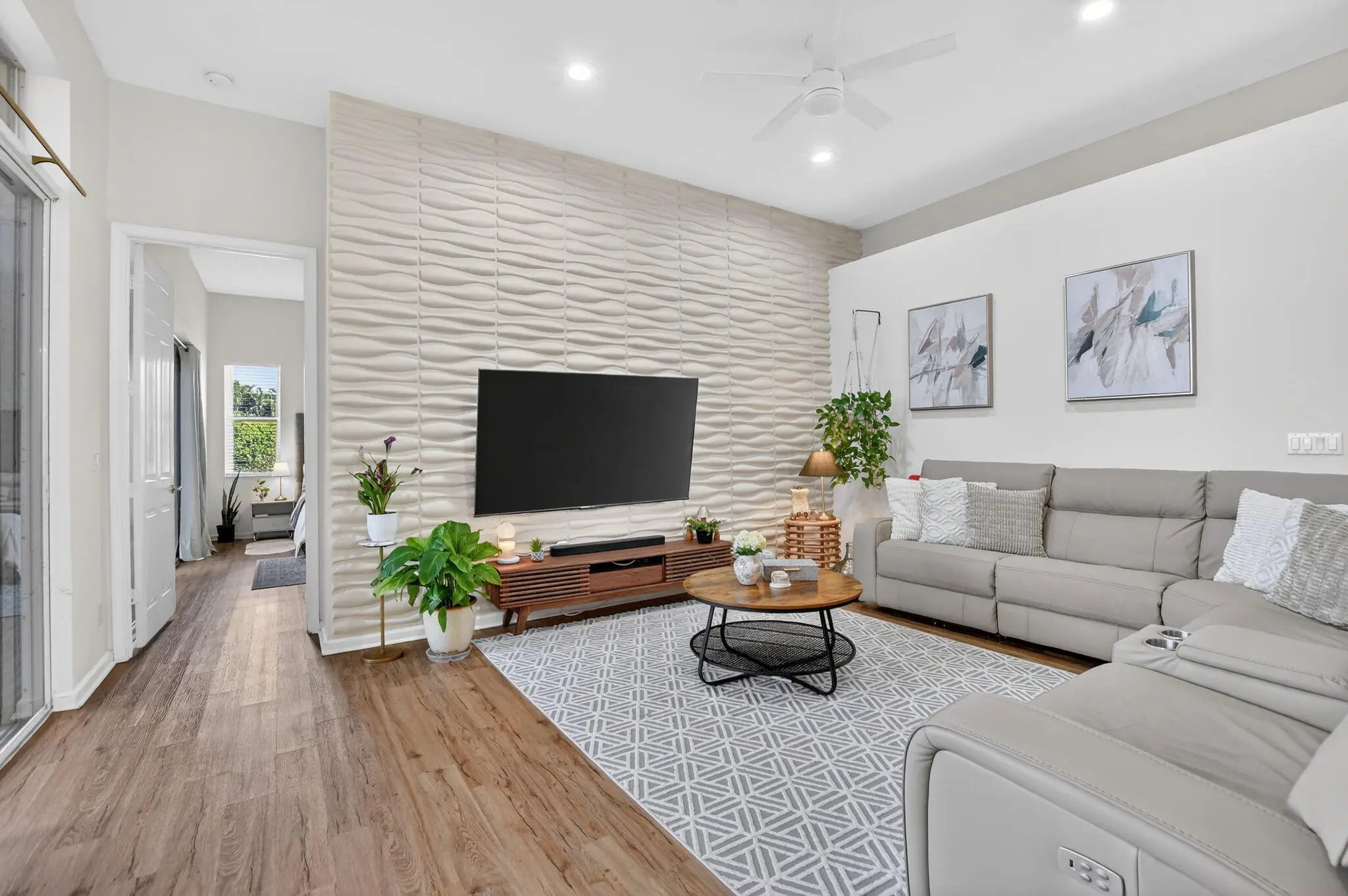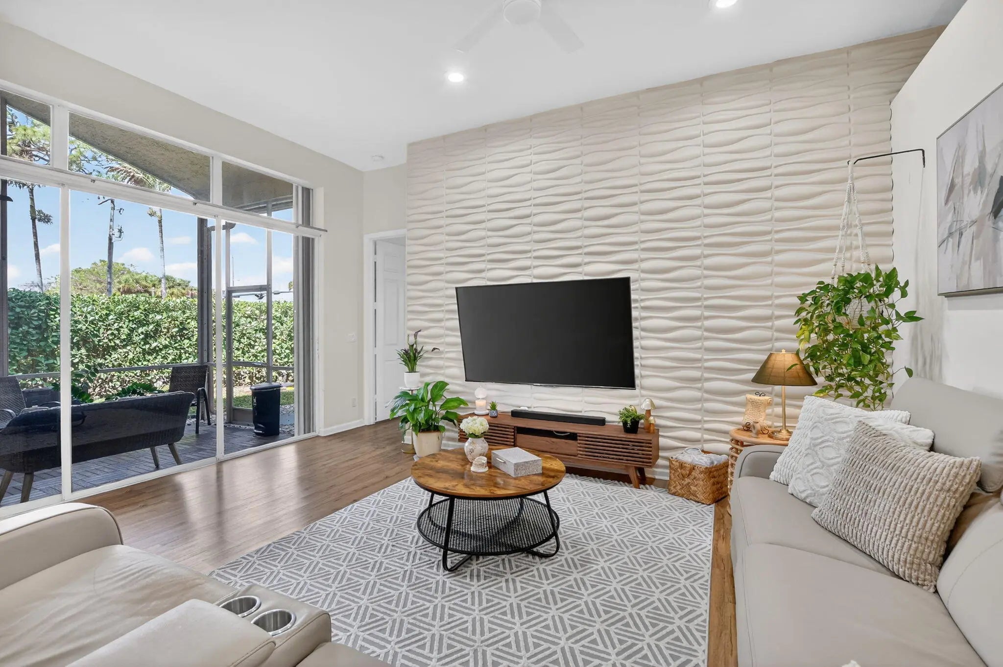 EXCEPTIONALLY RENOVATED one-story corner villa in Boca Raton's sought-after Waterside community. Bright open layout with high ceilings & abundant natural light. Stunning kitchen with island seating, stainless appliances, smart refrigerator & wine chiller open to living/dining areas. Private office overlooks garden. Covered, screened patio for outdoor dining. Flexible 3rd bedroom for den/media/office. Elegant primary bath boasts freestanding tub, walk-in shower & dual vanities. Luxury vinyl floors, 2 car garage, interior laundry w/sink. Enjoy Florida living in this magnificent gated, pet-friendly community with manned guardhouse, tennis, pool, spa, sauna & boat ramp with ocean access. Minutes to downtown Boca, dining, shopping & beaches. Top-rated schools. Amazing home - DON'T MISS IT!