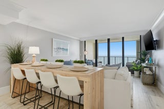 Ocean Trail -- The One You've Been Waiting For. Perched on the 8th floor of Jupiter's most coveted oceanfront address, this fully renovated 2-bedroom, 2-bathroom end unit at Ocean Trail delivers exactly what serious beach buyers have been searching for: unobstructed Atlantic views, a freshly completed resort pool deck, and a lifestyle that begins the moment you step off the elevator. This is move-in ready in the truest sense. Bring your swimsuit, your tennis racket, and nothing else. The unit is fully furnished with thoughtfully curated, modern interiors -- bright, coastal, and effortlessly livable. The updated kitchen features sleek countertops and stainless steel appliances that flow into open dining and living spaces, all framed by sweeping ocean views. Wake up to golden sunrises from your private balcony. Fall asleep to the sound of waves. The primary suite offers a generous walk-in closet and en-suite bath, while the second bedroom works equally well as a guest room or home office. Every detail has been attended to: all restoration work and assessments are paid and fully up to date. This building is done -- renovated and ready -- while others in the area are still working through theirs. Step outside your gated community and the lifestyle only expands. Take the elevator directly down to the beach or to the tennis and pickleball courts. Walk the manicured paths along the dunes, or follow the trail toward Dubois Park and the Jupiter Inlet. Jupiter Dunes Golf Course sits just next door. Guanabanas, Schooners, and Love Street are a short golf cart ride away. The Jupiter Lighthouse marks the horizon from your balcony. Ocean in front. Tennis and golf behind. A newly renovated resort pool deck below. World-class dining, dog-friendly beach, and one of Florida's most beautiful inlets within walking distance. This is the one.