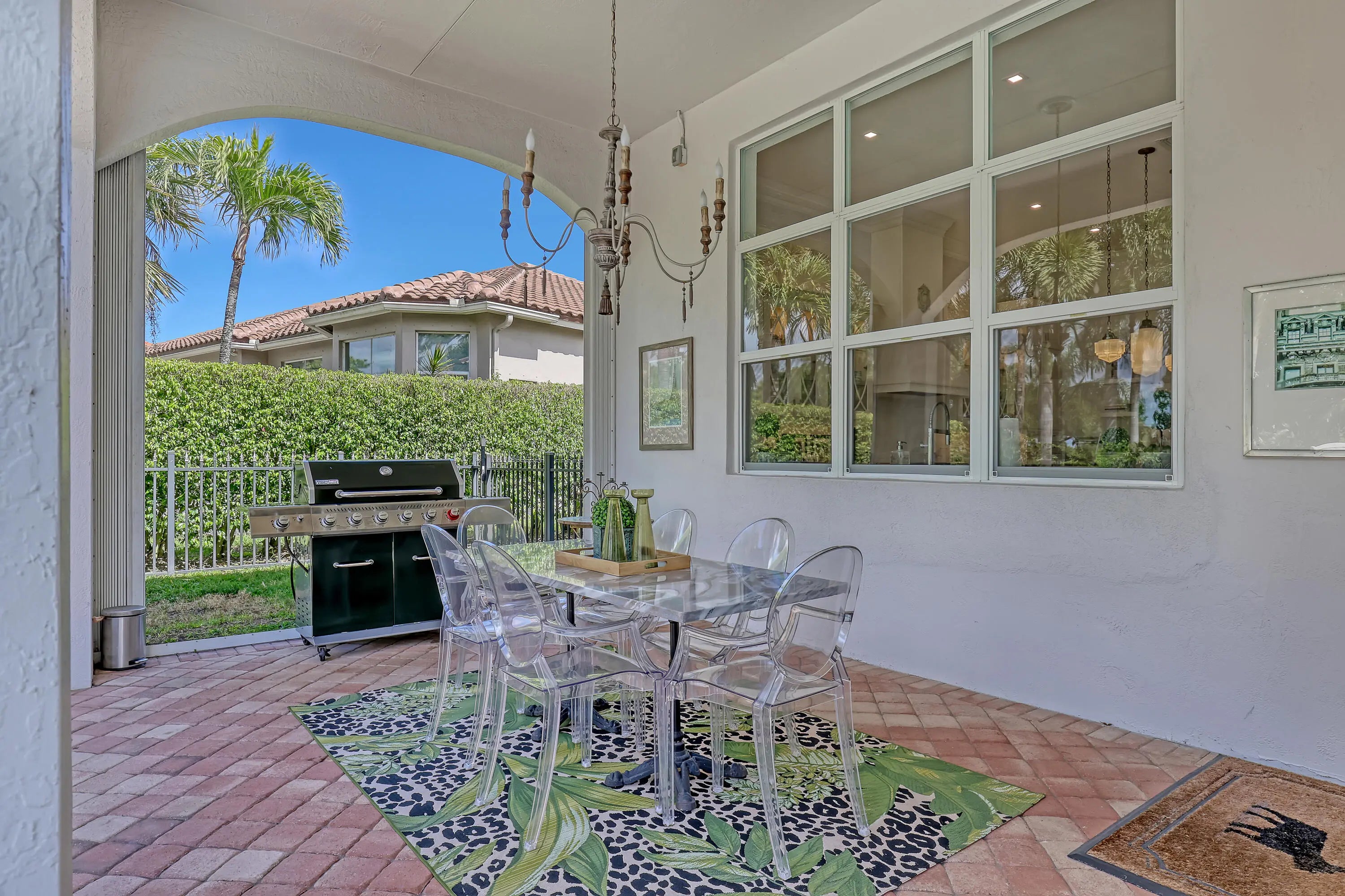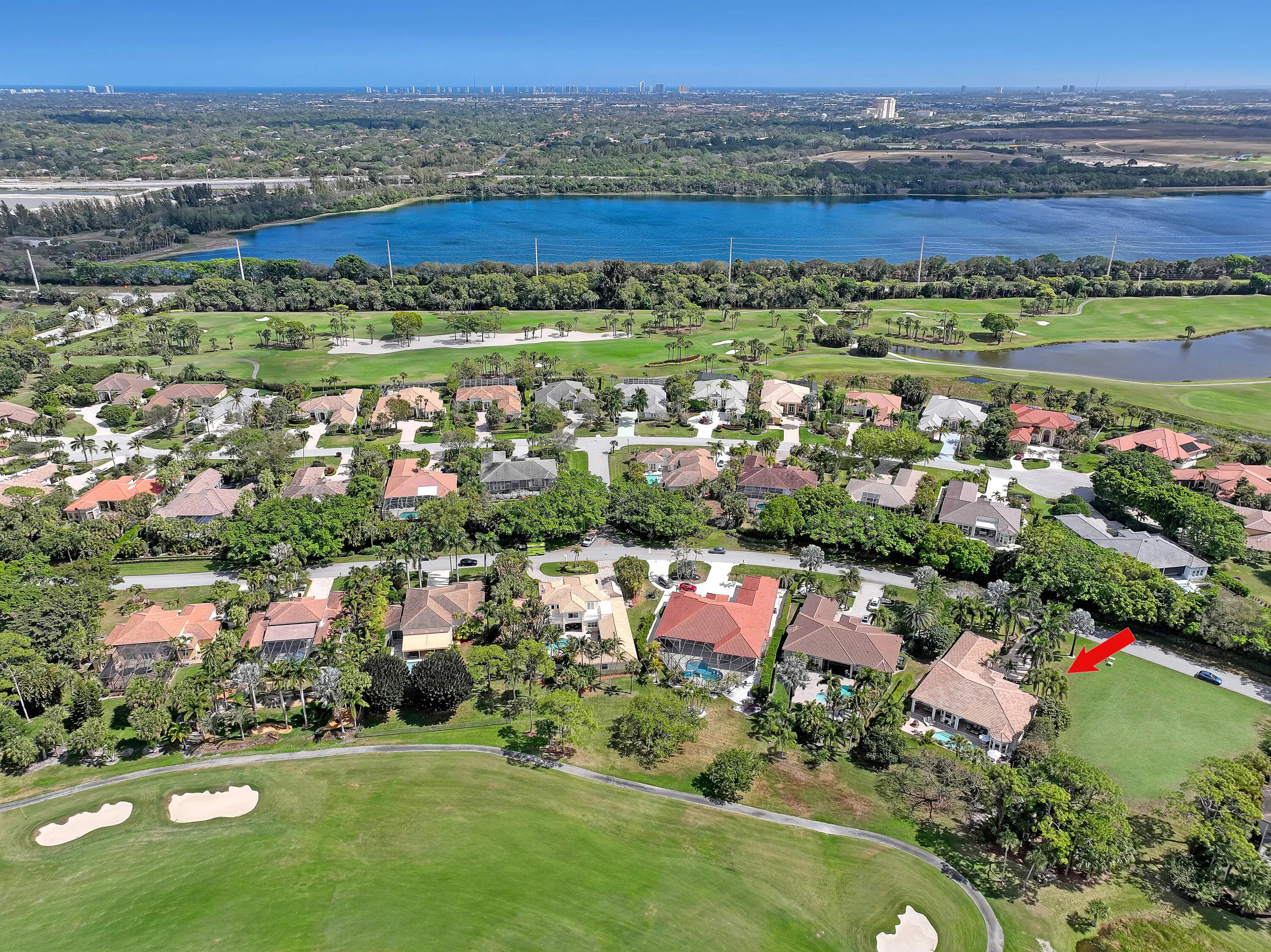 Rarely available, this beautifully renovated 5 bedroom estate in Ironhorse is set on nearly ½ acre and uniquely positioned with no neighbors in front or behind, offering exceptional privacy and sweeping golf course views. Located in a prestigious 24/7 guard-gated, non-mandatory golf community with low POA fees of just $310/month, and ideally situated close to shopping, dining, the Turnpike, I-95, and Palm Beach International Airport. Designed for both everyday living and entertaining, the home features a spectacular 1,050-square-foot great room centered around a custom kitchen showcasing a La Cornue gas range, quartz countertops, elegant cabinetry with glass accents, designer hardware, 35 soft-close drawers, and an impressive 11'2" x 5'5" island with breathtaking views.... (see supplement) of the pool, garden, and golf course. The open layout flows seamlessly into a spacious dining area, a charming breakfast nook in a bay window, and an expansive living room with 12 foot ceilings, 10'6" sliding glass doors, and transom windows, filling the home with natural light. The primary suite is a true retreat, offering a generous sitting area overlooking the pool and golf course. The spa-inspired primary bathroom features a walk-in shower with multiple shower heads, handhelds, rain head, and body sprays, along with custom vanities and a freestanding soaking tub. All secondary bathrooms have been fully renovated, and porcelain tile flooring runs throughout the home. Outdoor living is equally impressive, with two covered loggias measuring 22' x 12' and 16' x 12', perfect for entertaining while enjoying the pool, lush landscaping, golf views, and stunning sunsets.