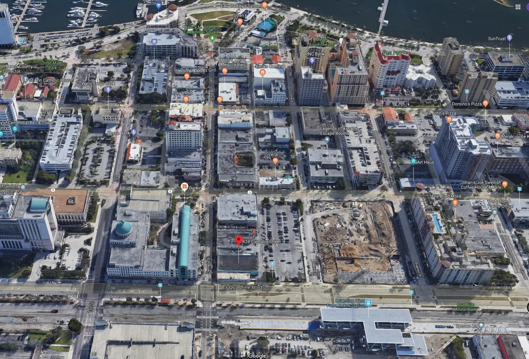 Perfect 1200 Sq/ft unit for Local or National Retail, Restaurant, Sidewalk Cafe, Specialty Shop, Design Store, or Office. Centrally located in the 400 block of Clematis and the corner of US-1 in the heart of West Palm Beach on the main strip of world class dining, shopping, and entertainment. Unit to be conveyed Whitewall with generic bathroom. Owner willing to help with tenant improvement for the right tenant. Lease is $50/Sqft Triple Net with Cam Expenses presently at $5/Sqft. Plumbing and Gas lines to be installed for possible kitchen. No rear exit. Located just 250 ft form the Brightline passenger fast train, 800 ft from Clematis Parking Garage, (1/4 mile from the Clematis fountains, Flagler waterfront,Located just 250 ft form the Brightline passenger fast train, 800 ft from Clematis P