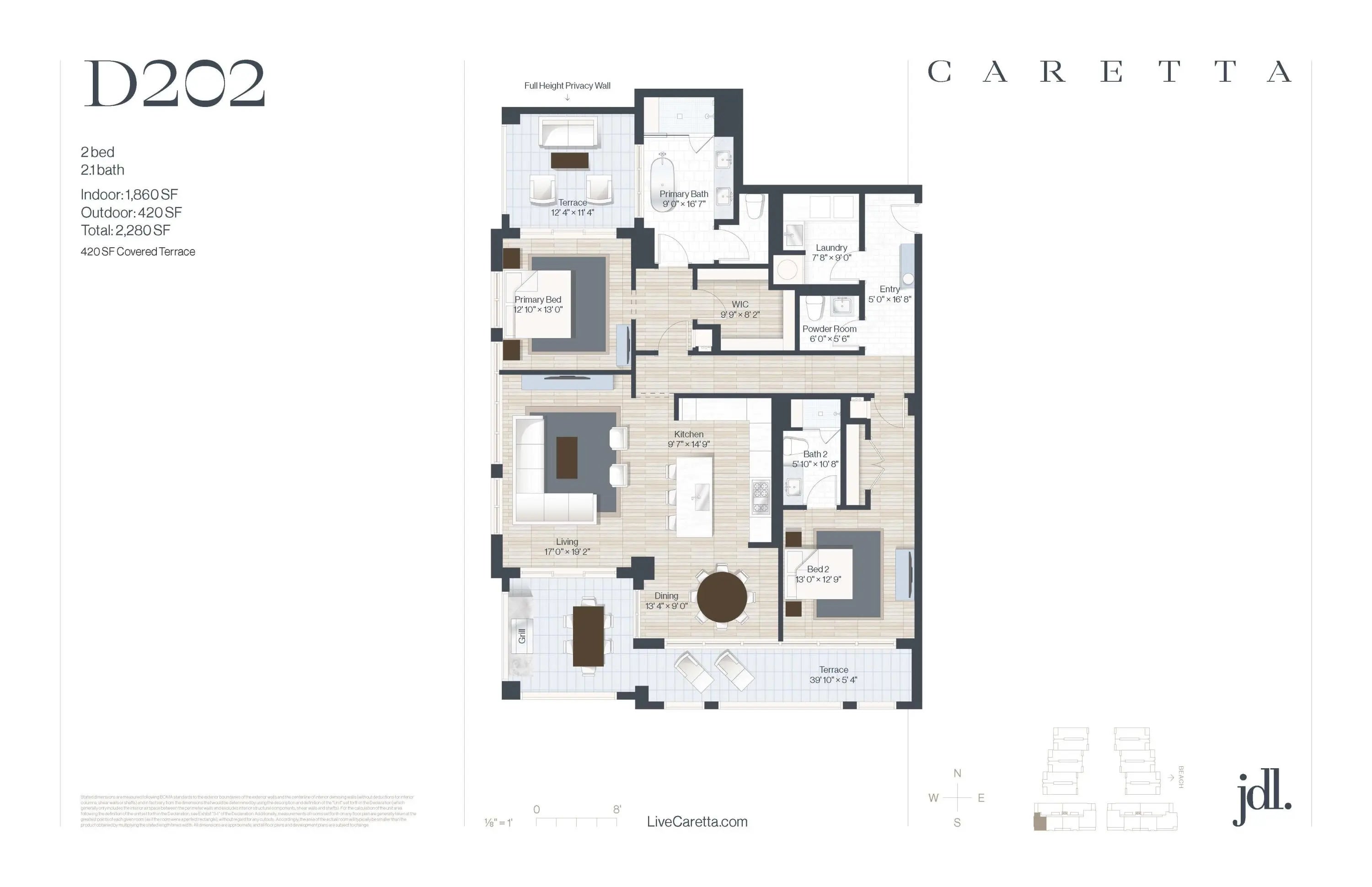 Juno Beach's newest seaside urban community, Caretta! Sales center now open. This corner unit offers all the modern luxuries including a chef's kitchen featuring wolf stove, sub-zero refrigeration and a spacious island with waterfall countertops, elegant features, and 10' ceilings. Enjoy Florida living with two outdoor terraces and a covered outdoor kitchen with a built-in gas grill. Caretta is Juno's newest luxury development with amenities including rooftop pool, sauna, dog park, fitness center, golf simulator, and restaurant. Just 400 yards to the beach. Since 1993, JDL Development has earned a reputation for developing luxury developments that exceed expectations, resulting in some of Chicago's most significant developments like One Chicago and No.9 Walton.