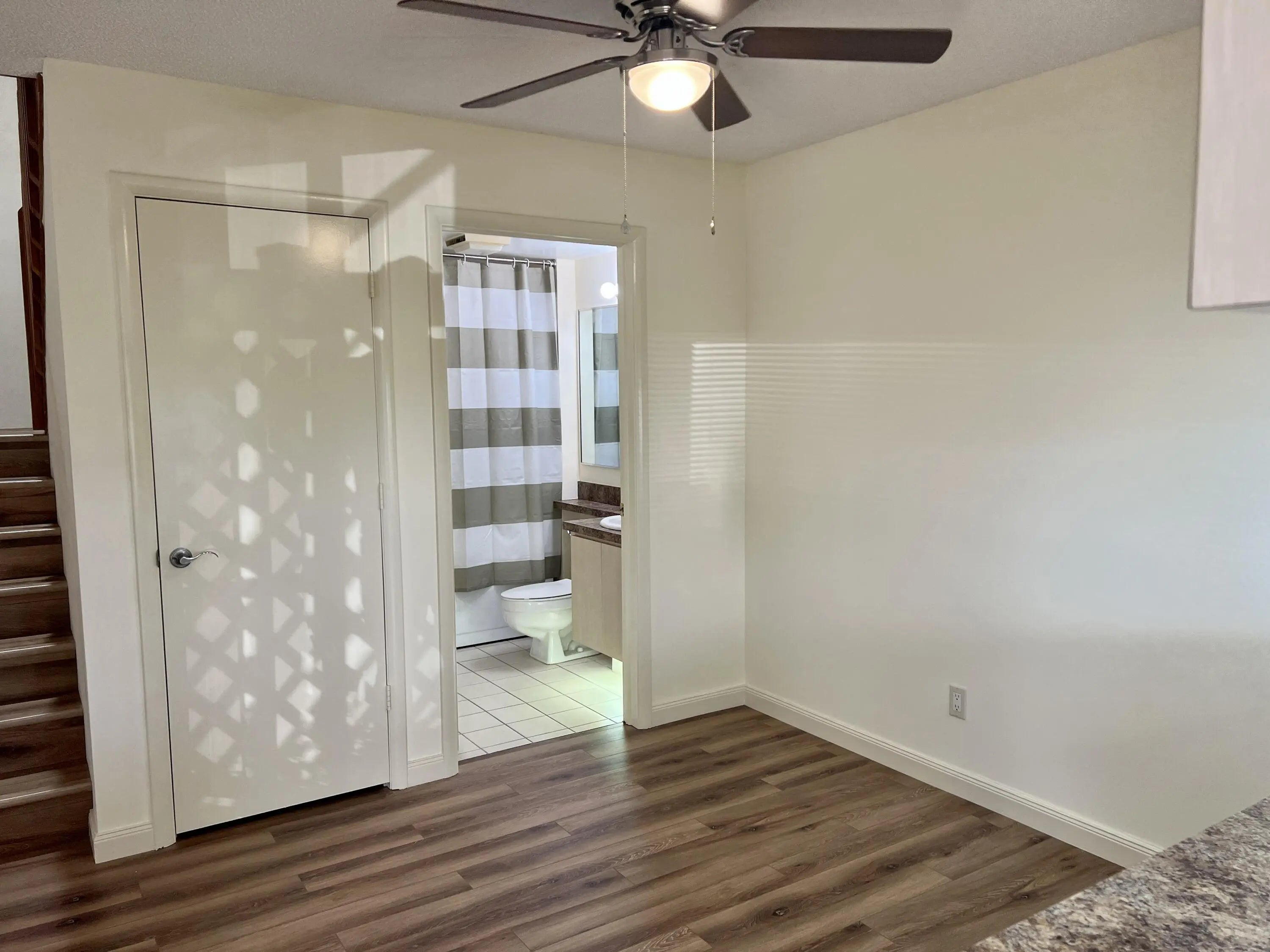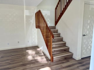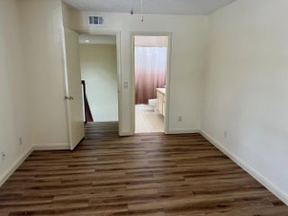 Stamford in the Villages is a private community surrounded by lakes and lush landscaping. This 2 story unit boasts 2 large bedrooms both with en-suite baths. You enter the property through a large screened in patio that has both a front door and sliders with access to the kitchen. There is a half bath with a washer and dryer on the main floor. New lovely laminate floors throughout with tile in all bathrooms and kitchen. The unit has been updated with brand new appliances, bathroom fixtures, fresh paint, new fans and lighting. The community has access to 2 pools, tennis courts and an exercise trail steps away from your door. Huge banyan trees line the lake with fountains in a park like setting. Super clean and ready for new occupants to enjoy a lovely lifestyle close to everything!