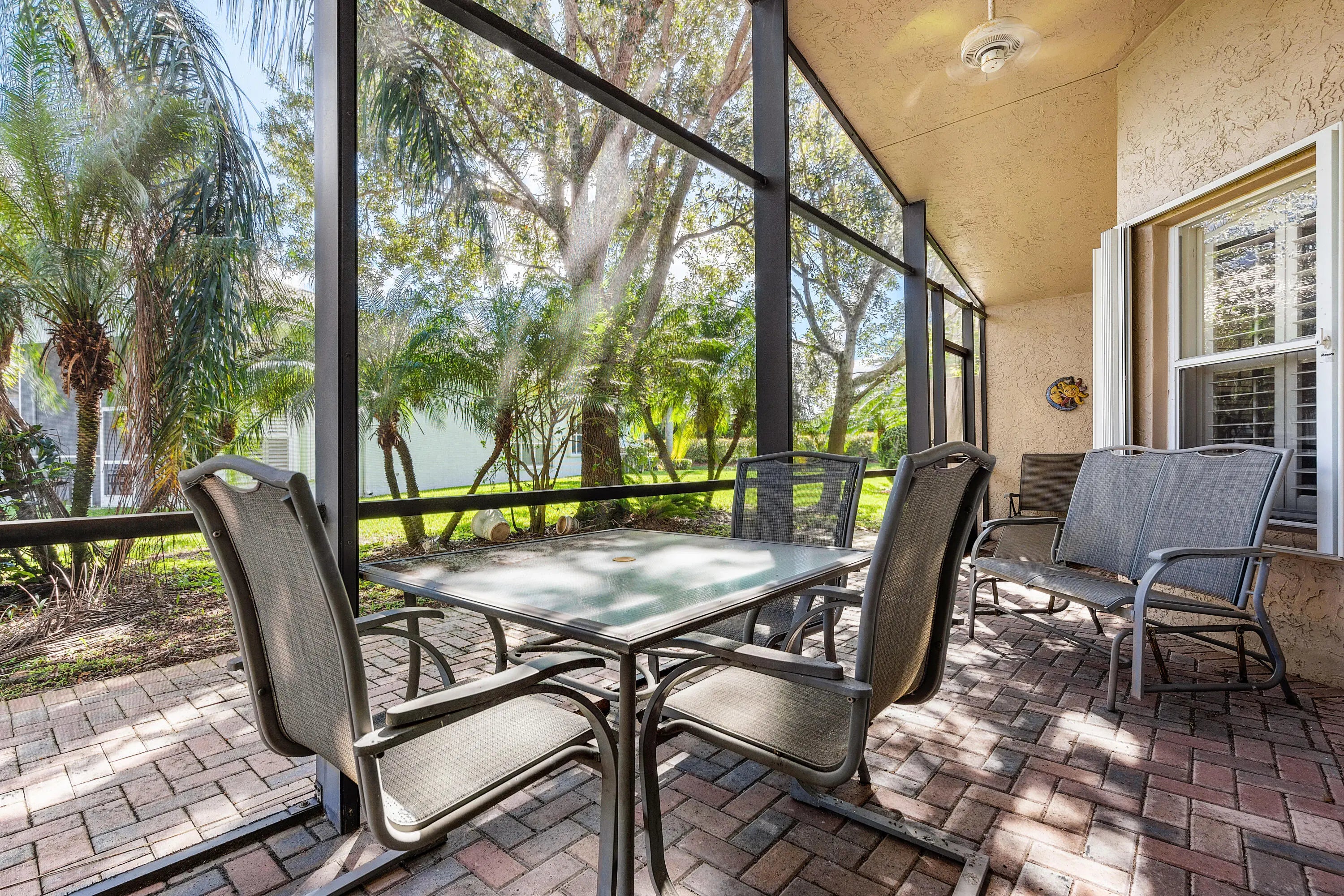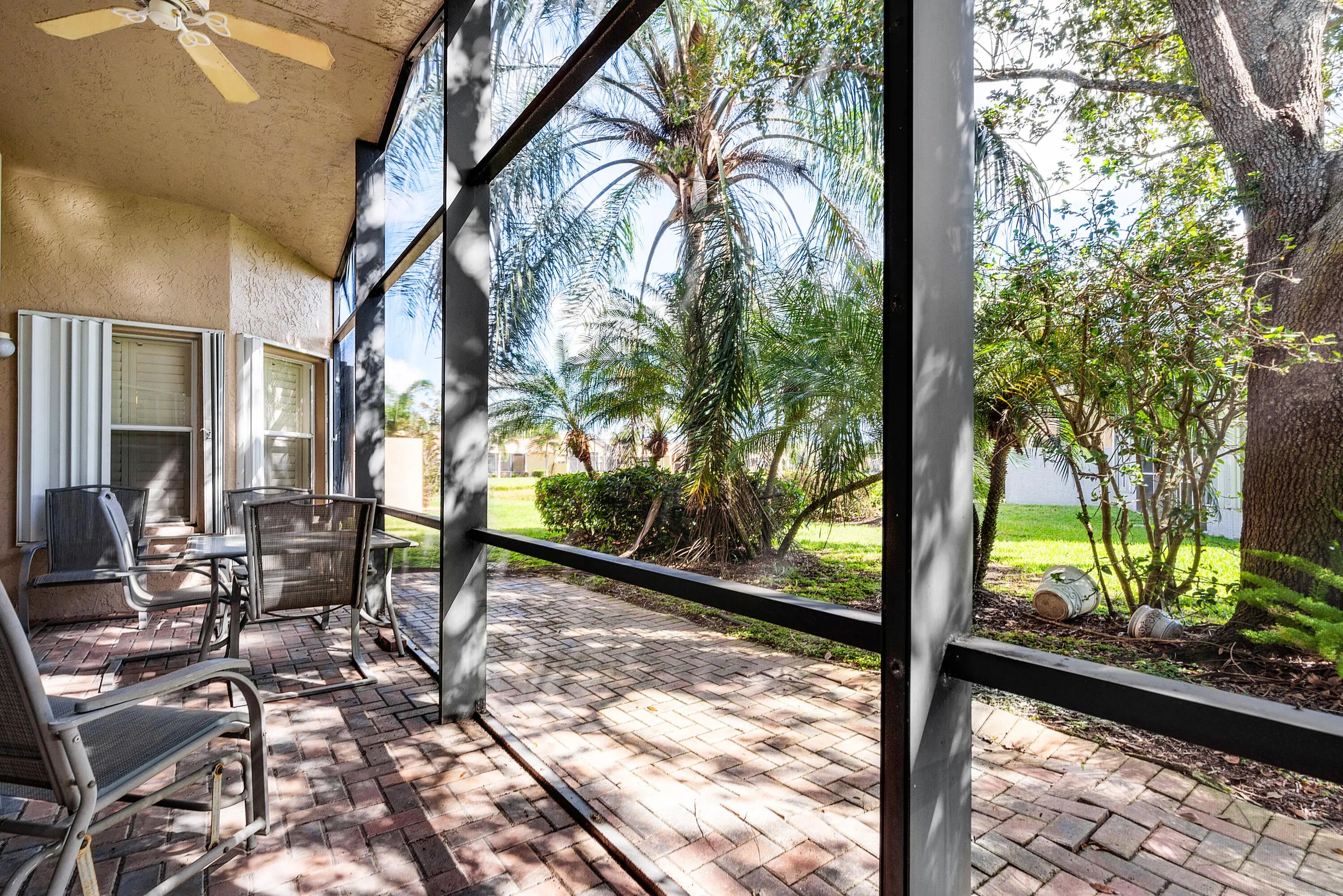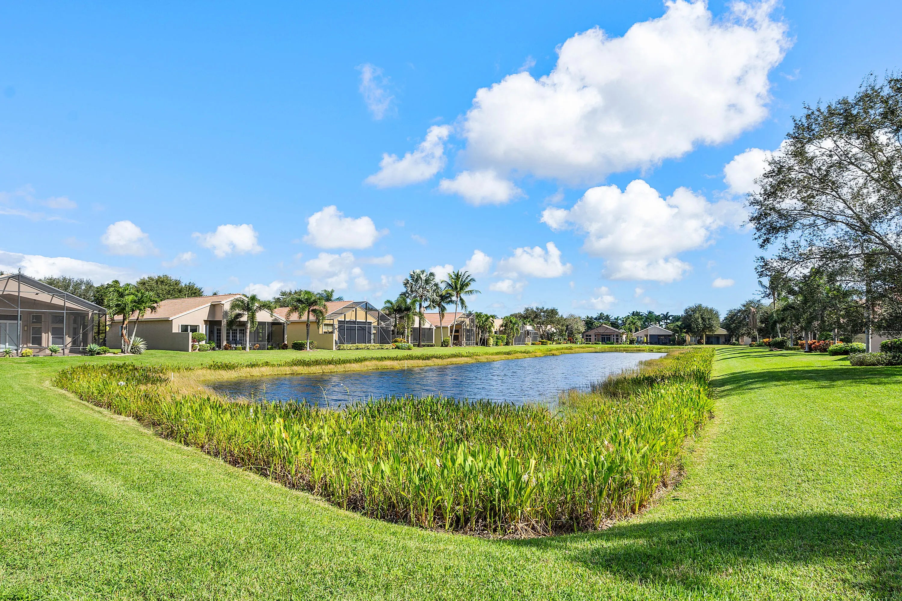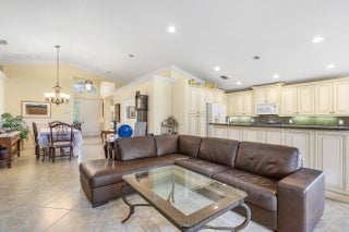 Don't miss out on this beautiful 3 bedroom, 2 bath home in Valencia Pointe. The open floor plan is perfect for entertaining and boasts vaulted ceilings, crown molding throughout, and a french door to the screened and covered patio. The kitchen is designed for beauty AND function, with 42'' raised panel white cabinets, granite countertops and backsplash, a snack bar, a pantry with pull out drawers, a built-in desk, and a dining area. The primary suite features a bay window that allows great natural light, his and her closets, a dual sink vanity, a tub and a walk-in shower. The 2 secondary bedrooms are spacious and airy. Valencia Pointe's world class amenities begin with a 35,000 sq ft clubhouse that features a state of the art fitness center, a grand social hall and dance floor and more!