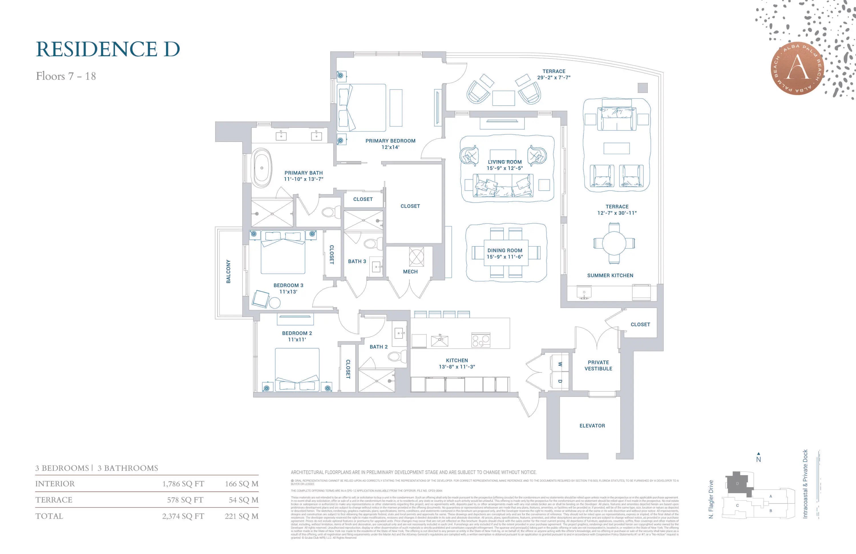 Introducing ALBA, an exquisite collection of 55 luxury residences, ranging from 2 - 4 bedrooms, within a 22-story boutique direct waterfront building. Crafted by Spina O'Rourke + Partners, this is the only new construction building in West Palm Beach situated directly on the intracoastal. Residence 1704 is a gracious 1,786 square foot 3 Bedroom, 3 Bath home with an oversized glass-framed terrace spanning 578 feet featuring a summer kitchen and panoramic views of the intracoastal. The great room, dining area and primary suite are surrounded by floor-to-ceiling hurricane impact windows showcasing stunning views of the PB Inlet. Alba residents will enjoy a private gated entry, dock with boat slip access, and an elevated full-floor amenity level with both a sunrise and sunset pool, and more..
