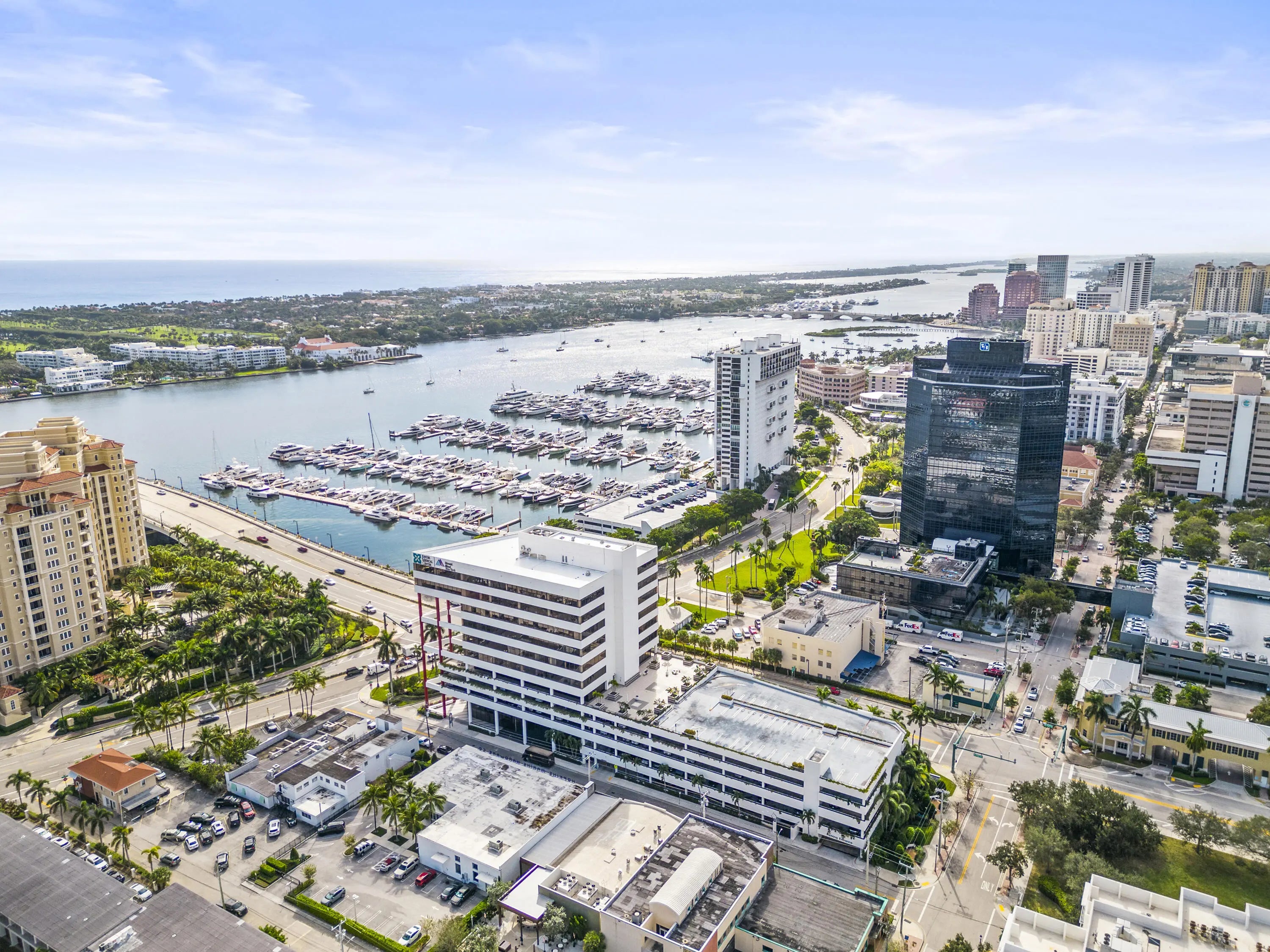 Several office suites are available for lease at 625 North Flagler Street. 625NF is situated at the base of the north bridge in West Palm Beach, providing central access to restaurants & offices in Palm Beach, downtown West Palm Beach, City Place, the new NORA district, and I-95. This 11-story tower offers breathtaking panoramic views of the intracoastal and Palm Beach.