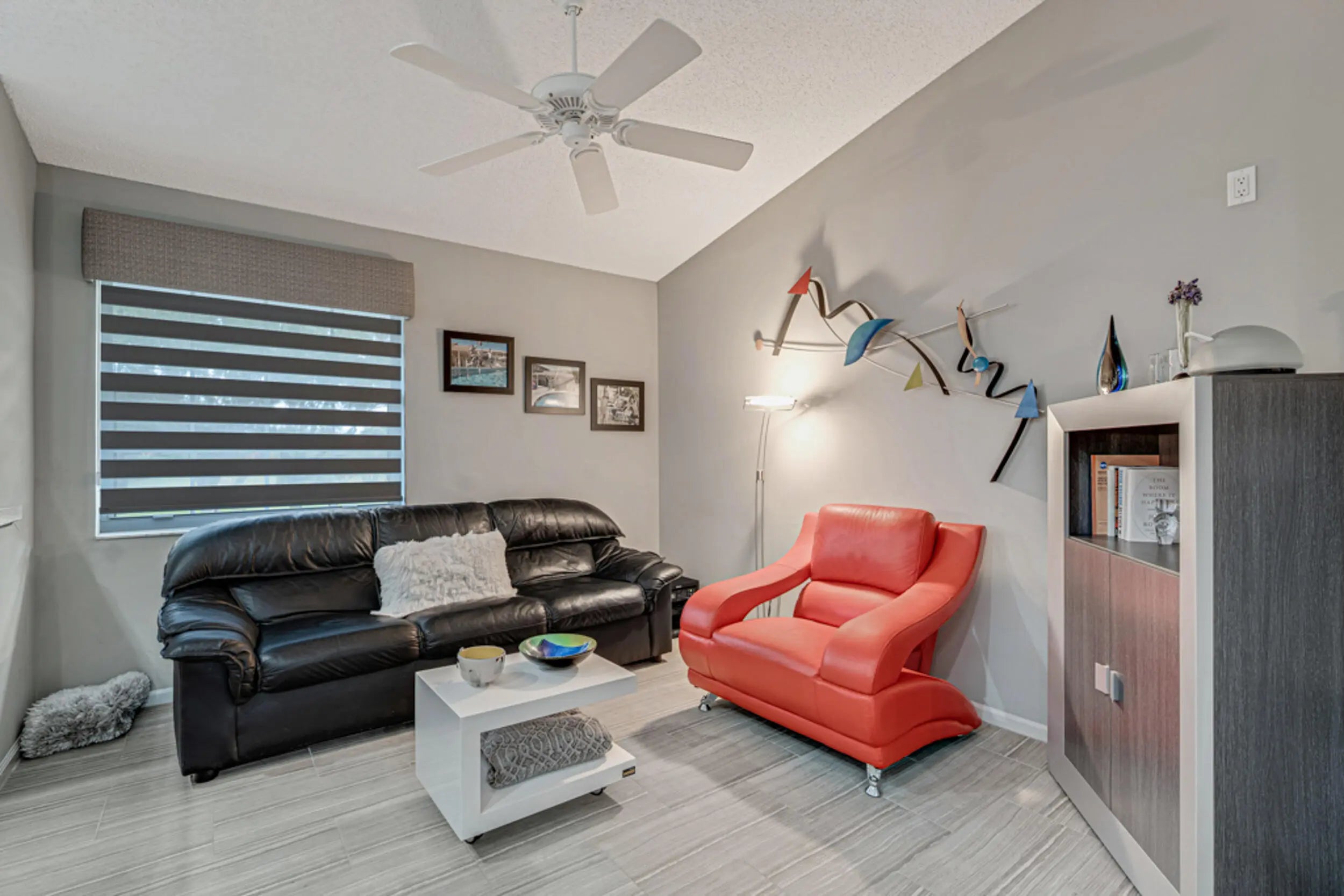 This modern, bright & clean condo offers comfortable living and a lovely lake view. The home is filled with natural light, creating a warm atmosphere. The kitchen features sleek stainless steel appliances & updated counters, and ceramic tile & high-hat LED lights throughout the living areas. An enclosed patio provides a space to relax and enjoy nature. Additional conveniences include an inside laundry room and covered carport parking. Located in the active 55+ community of Palm Isles, this home is minutes away from new shopping centers, offering dining, retail, & entertainment options for your convenience and enjoyment. Be sure to check out the 3D walkthrough tour for an ''in-person'' view of the entire condo. Multi-million Dollar Renovated Clubhouse reopens very soon!