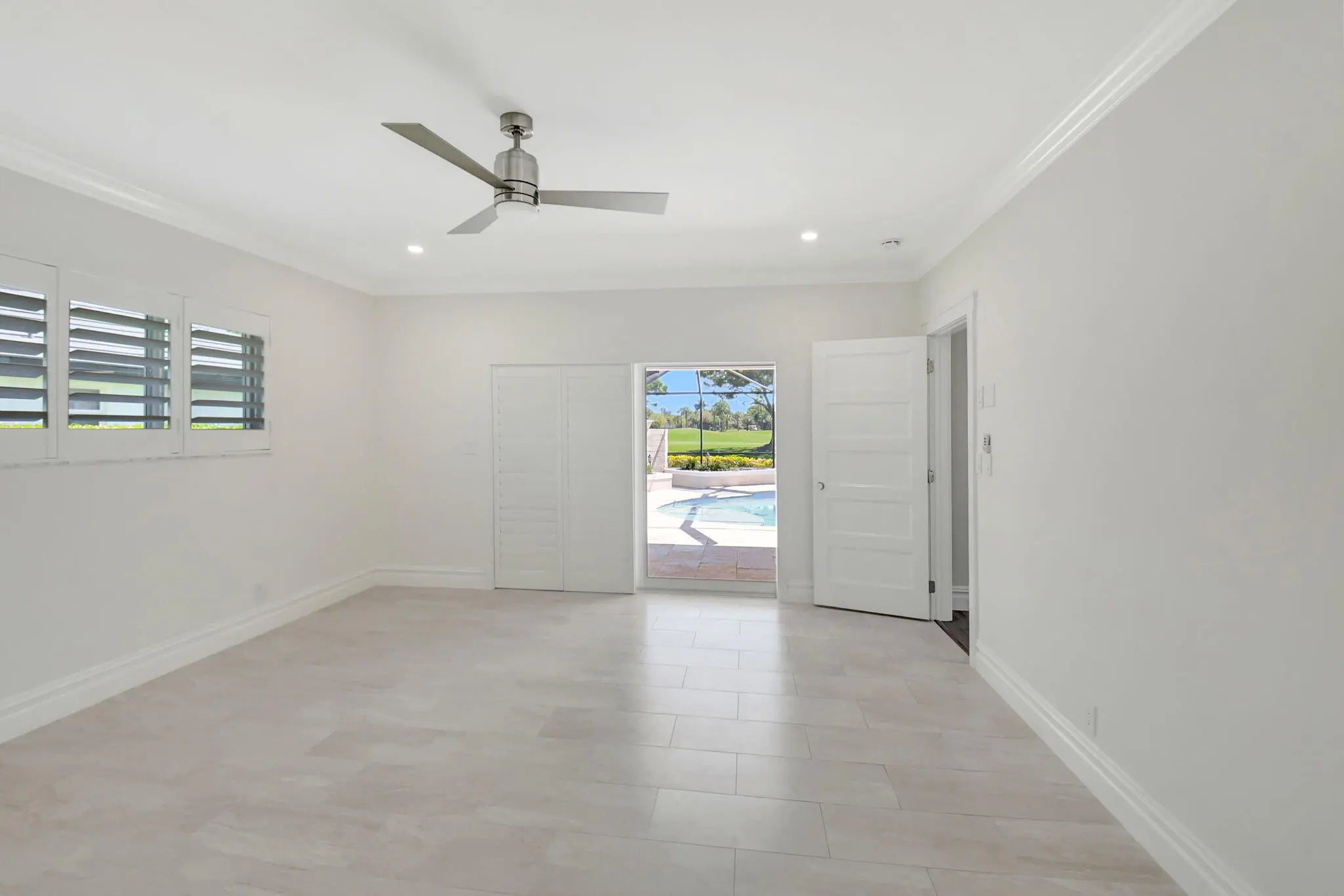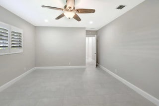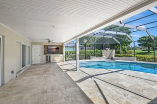 A rare opportunity is now available on one of the most exquisite golf course lots in Delray Dunes. You are greeted with expansive course views of 8th & 10th greens and 9th tee and a resort style heated pool area all from the large glass openings in almost all of the rooms. This beautiful 3BR/3BA pool home has a new roof in 2023, impact windows & a full home generator . The large 2 car garage also has a golf cart parking area.From the moment you enter the handcrafted double-door you will be impressed with the size of the rooms, the split bedrooms (all with ensuite baths and walk-in closets), a custom kitchen with custom wood cabinets, granite, Bosch and Thermador appliances plus a large pantry. All of this located in Delray Dunes Golf and Country Club.