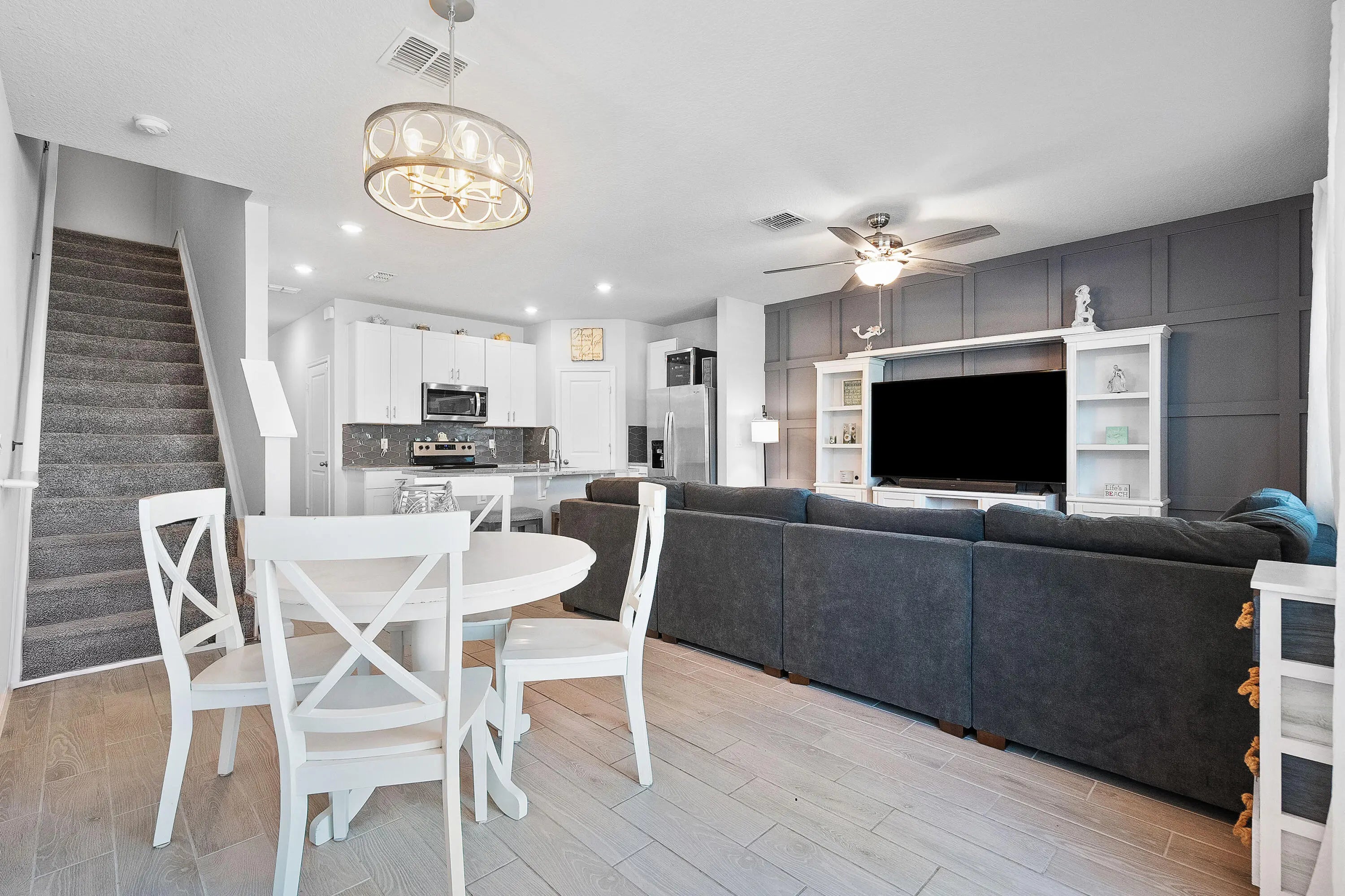 Great opportunity for the right buyer! Short sale in progress - offer acceptance will be subject to lender approval. The seller has already retained an attorney to streamline the process. Don't miss the chance to make this your own with just a little patience. Discover serenity in this charming 3-bedroom, 2.5-bath, two-story townhome in the delightful Seaside community! Built in 2021, this thoughtfully designed floor plan draws your eye to the private patio, filling the living space with natural light. The open-concept first floor features a stunning accent wall, 42'' white shaker cabinets, granite countertops, a custom backsplash, and gleaming stainless-steel appliances in the kitchen.