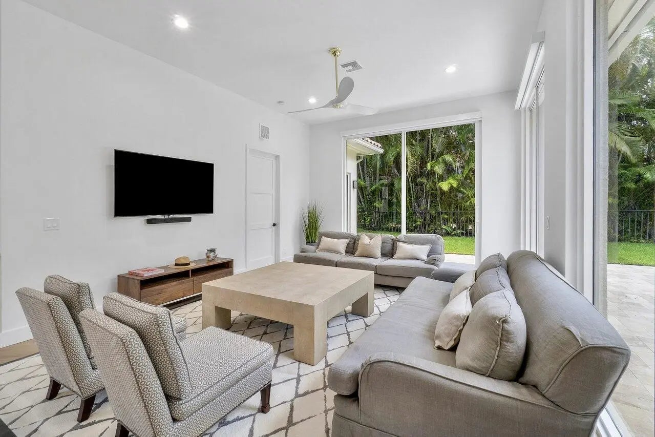 A perfect seasonal rental nestled in the exclusive gated community of Regents Place. This fully furnished, completely renovated Single Family Pool Home features an open light and bright floor plan with 3Bd, 2.5 Bh and 2 car Garage boasting 2072 SF of Living Space. The Chef's kitchen is equipped with top of the line LG appliances, 5-burner cooktop, quartz countertops, oversized island and custom cabinetry -- perfect for entertaining! Grand Master Suite with elegant marble tile in bathroom that extends into the over sized frameless glass shower, dual sinks and separate tub with freestanding tub faucet.Built in closets in every bedroom and all new impact windows and floor to ceiling sliders. This desirable neighborhood is minutes from Bear Lakes Country Club and main highways.