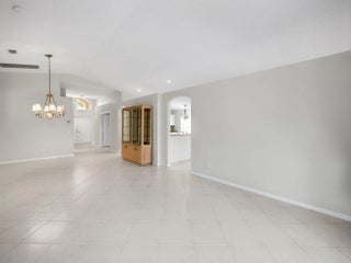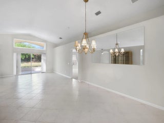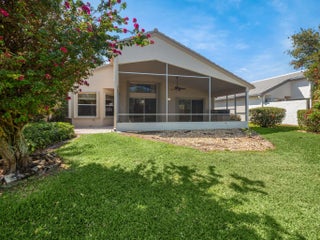 Coral model home in the highly sought-after 55+ community of Valencia Lakes, offering an unparalleled resort-style lifestyle. This spacious 3-bedroom home features a new roof (2023) and a desirable split-bedroom floor plan, with the third bedroom including a custom Murphy bed, providing versatility for guests or a home office. Nestled on a private lot with no rear neighbors, this waterfront home boasts breathtaking views and lush tropical landscaping. The open-concept eat-in kitchen is designed for both style and functionality, featuring granite countertops, upgraded cabinetry with plenty of storage, full backsplash, stainless steel appliances, & a family room just off the kitchen. The great room seamlessly connects the dining & living areas, creating an inviting space for entertainment