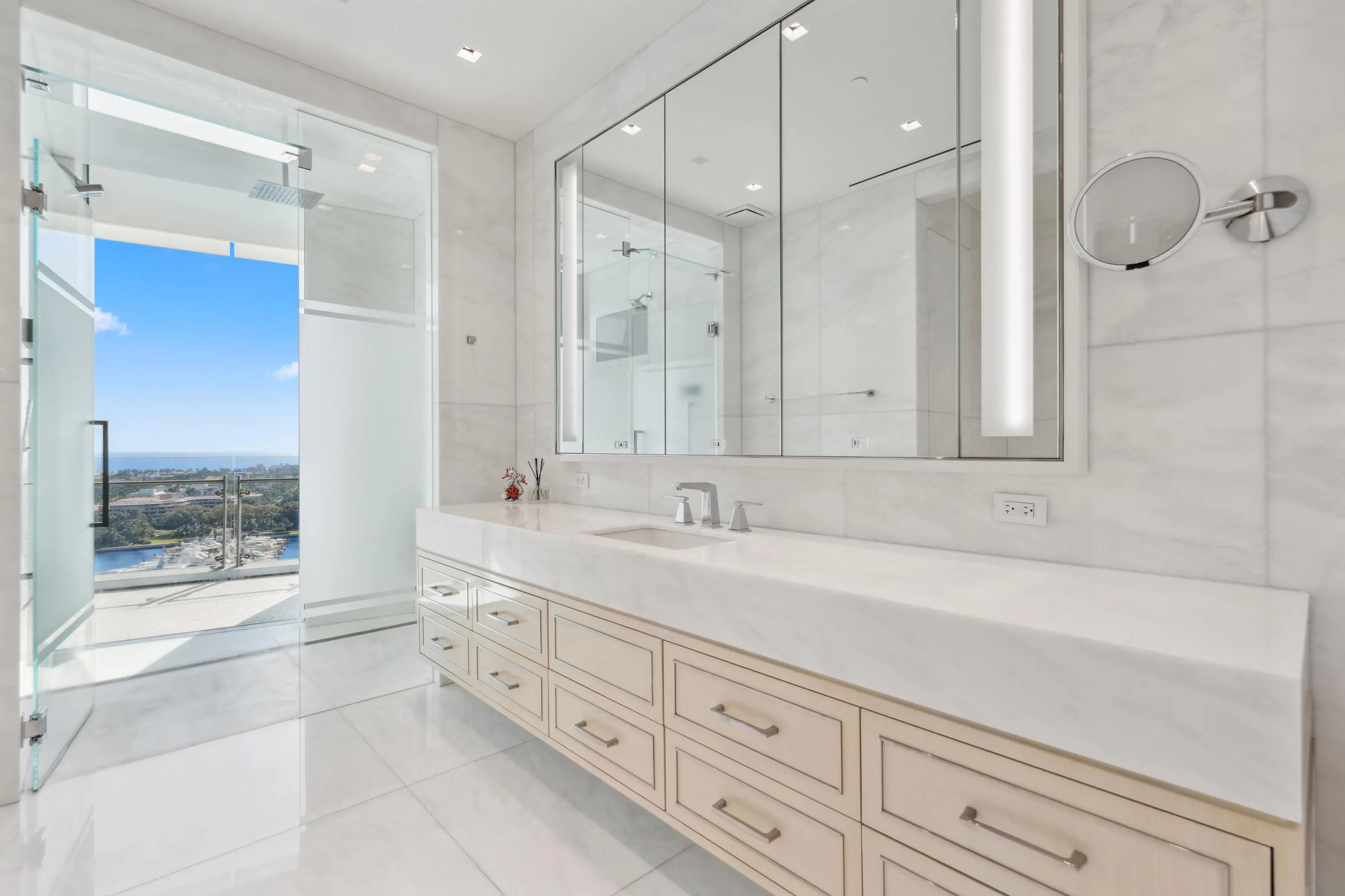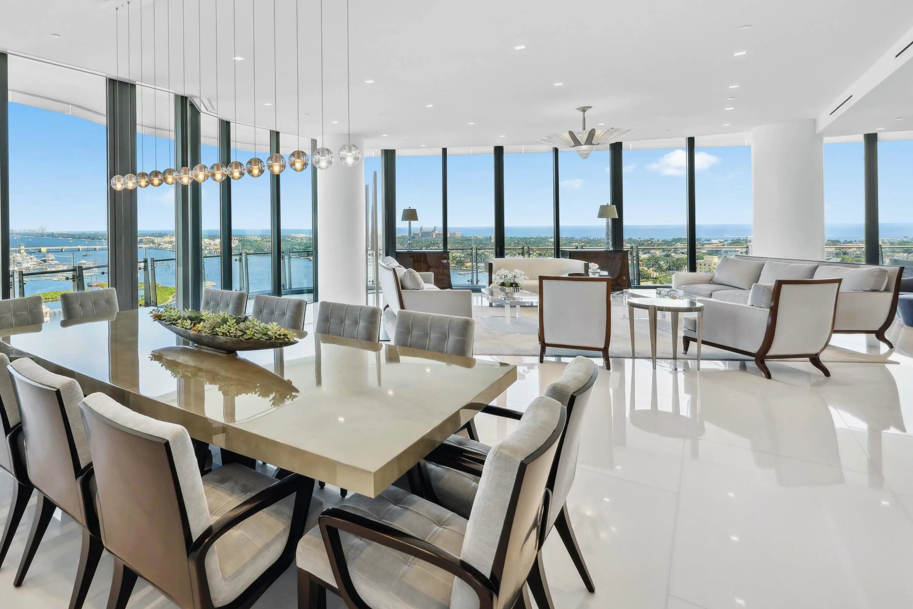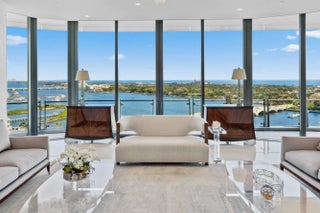 THE ONE YOU'VE BEEN WAITING FOR!! An extraordinary completely custom one-of-kind residence including a rare private garage designed for 3 vehicles. An elevated architectural masterpiece designed for those who demand the finest. This contemporary 4-bedroom, custom built by Shapiro Pertnoy, includes a substantial waterfront office and an abundance of light-filled entertaining areas that span an impressive 5,544 interior sq ft. Experience the grandeur and comfort of your own private estate within the most exclusive ultra-luxury building in Palm Beach County. An exquisite primary suite features unrivaled ocean & Intracoastal views which can also be admired from each of the two bathrooms surrounded by marble ceilings, walls, & floors. The dual oversized & elegantly appointed dressing room