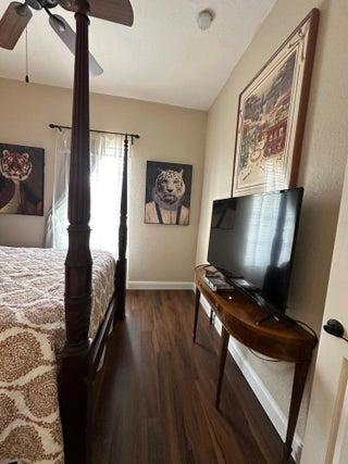 Welcome to this charming residence located at 3112 Bollard Rd in West Palm Beach, FL. This beautifully maintained model home offers spacious living areas, a modern kitchen, and a serene backyard appropriate for relaxation. Tiki Hut with brick paver patio, Lake and water fountain for outdoor relaxtion at its finiest. Open floor plan with 12' coffered ceilings with crown molding throughout. Gourmet kitchen with 42'' cabinets. Oversize master bedroom with 2 huge walk in closets. Master bath beautifully designed with rimless glass shower, soaking tub and private toliet area.Guest baths have been completely updated. Enjoy the convenience of nearby amenities and the vibrant lifestyle that West Palm Beach has to accord. Don't miss the opportunity to make this wonderful property your new home.