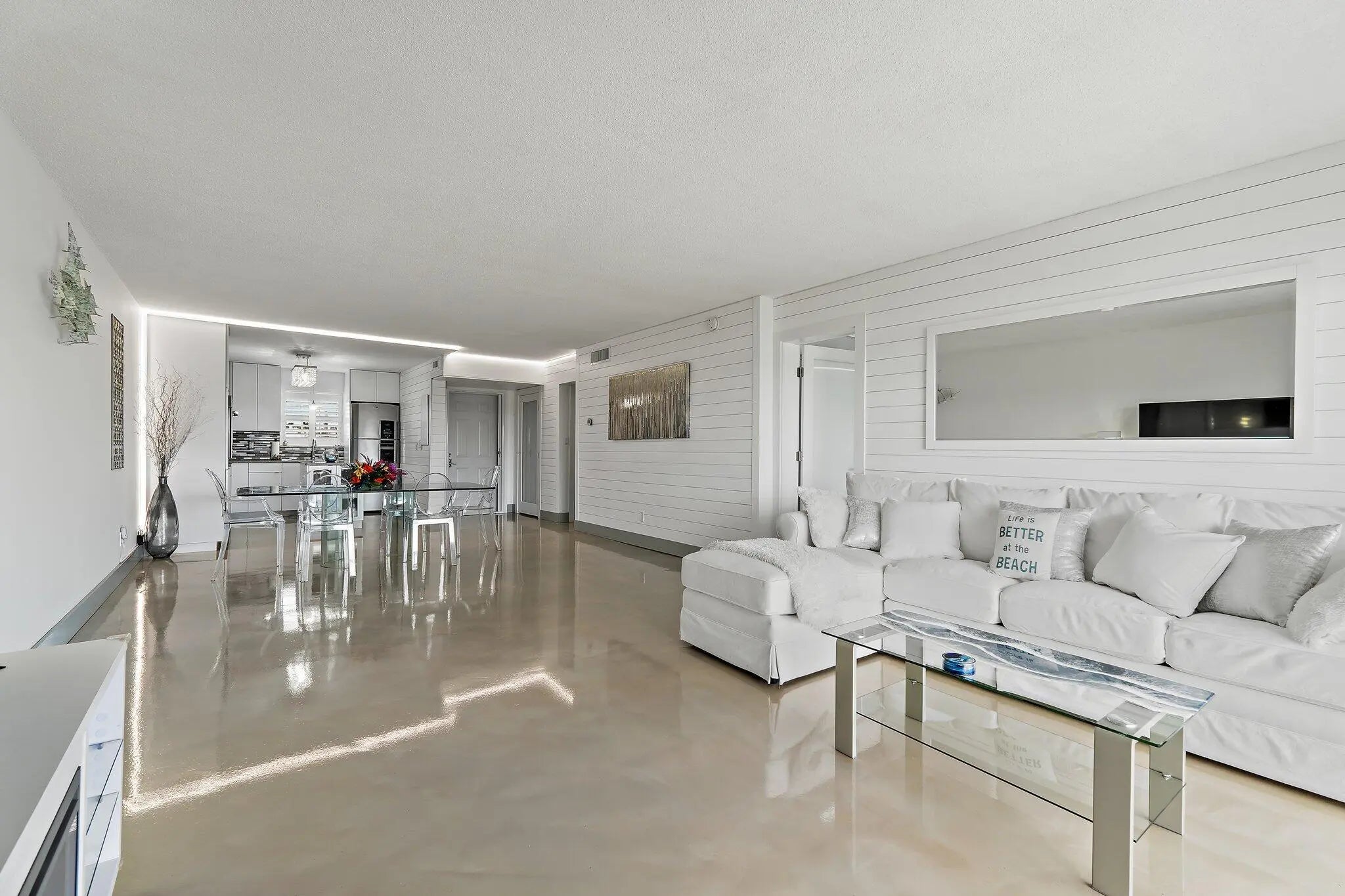 Unobstructed water views from the living room and primary bedroom set the tone for this beautifully turnkey 2-bedroom, 2-bath condo at Waterway Beach. Nestled on 6 lush acres along the Intracoastal, this 1,189 sq ft residence features impact windows and doors, sleek epoxy floors, custom cabinetry, Silestone countertops, a granite sink, and LED lighting. The guest bath offers a touch-illuminated vanity and frameless shower. Enjoy an oversized screened balcony overlooking sea turtles, manatees, and a natural sandbar at low tide. Pet-friendly with pool, clubhouse, and kayak/paddleboard storage--minutes to beaches, dining, and shopping.