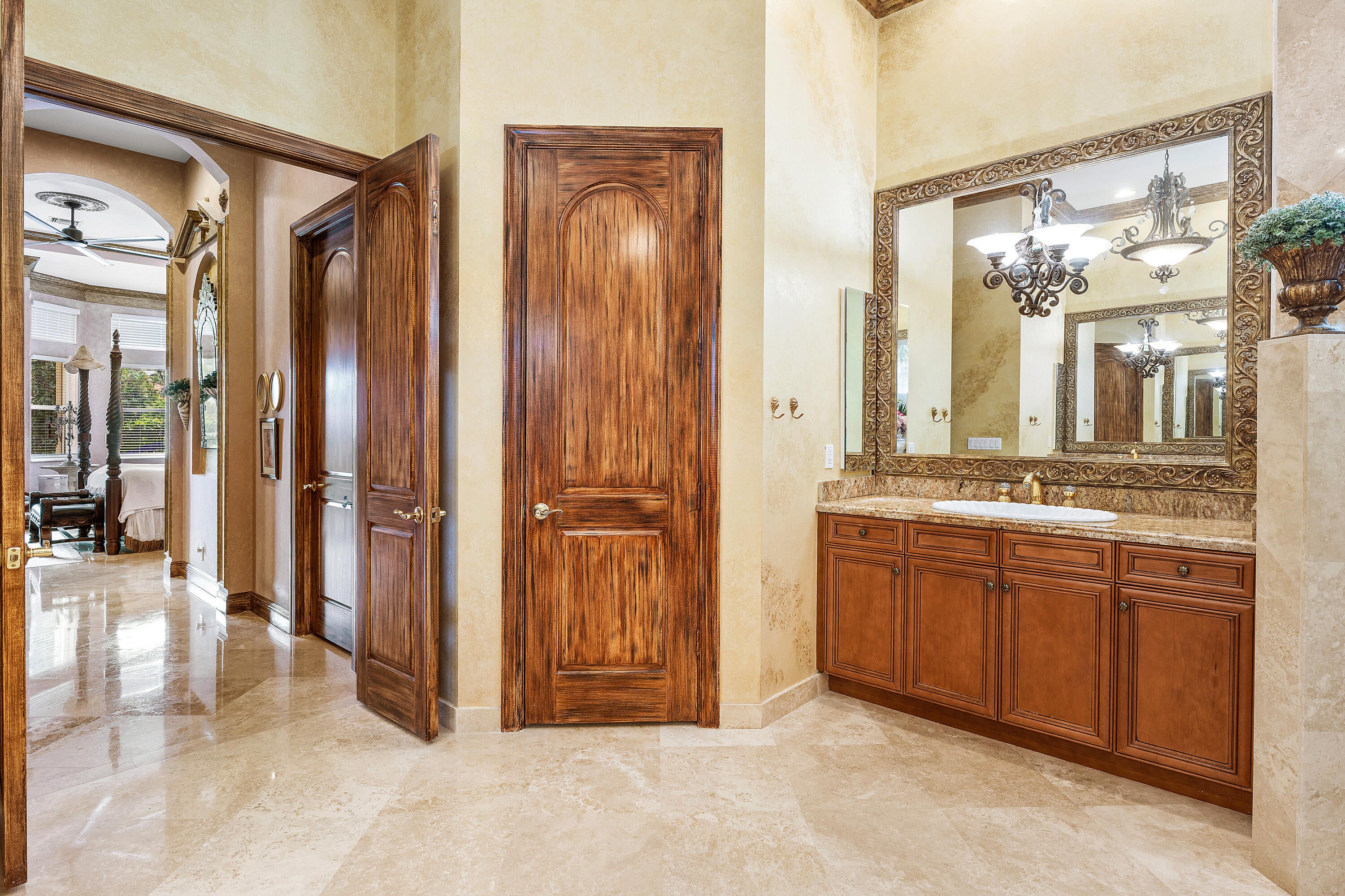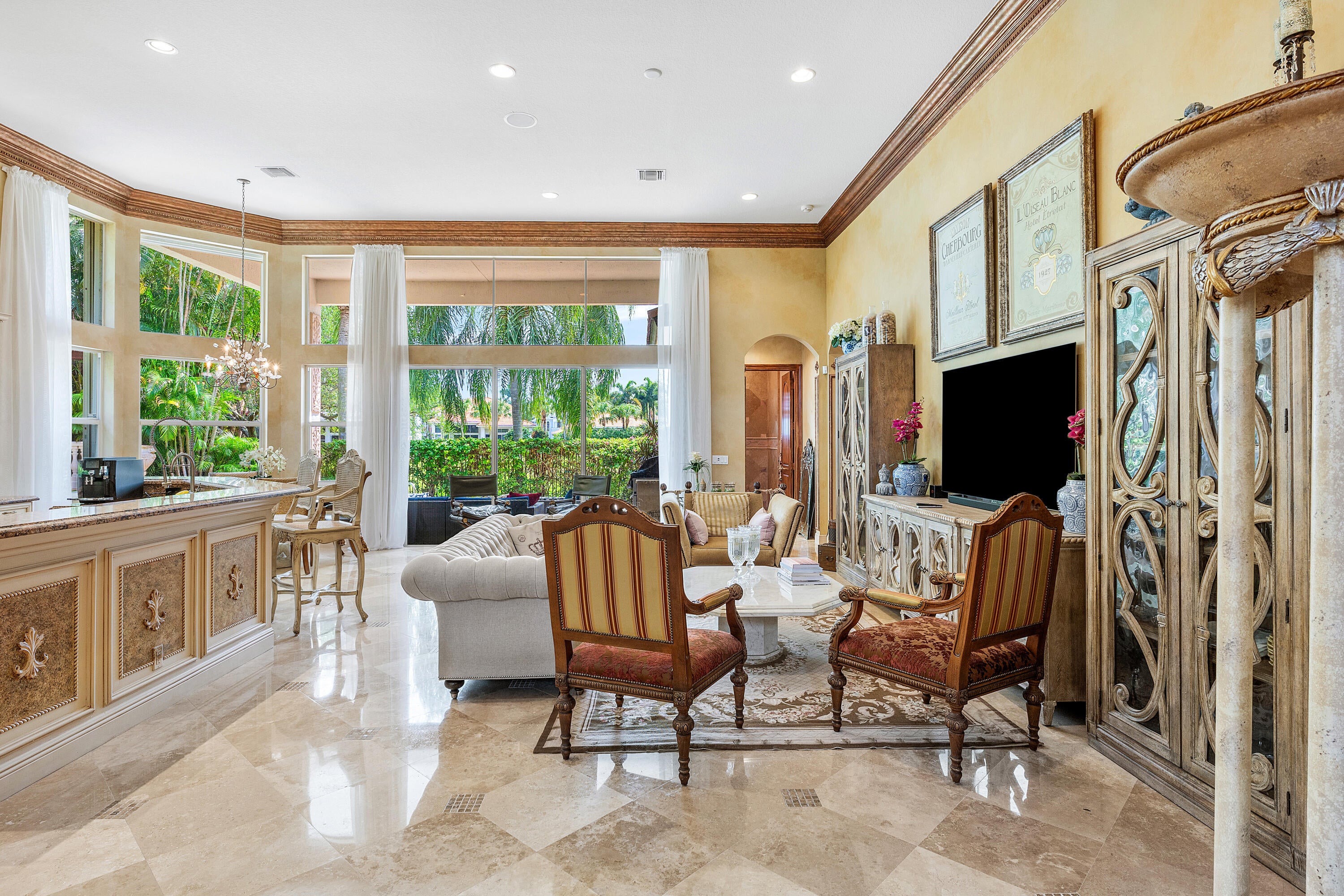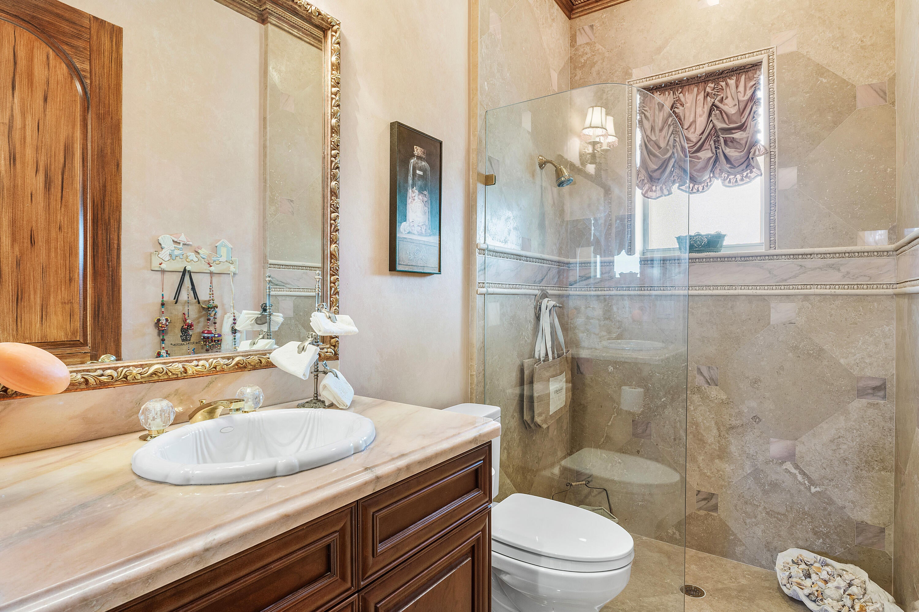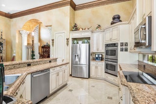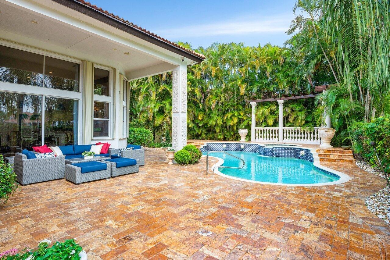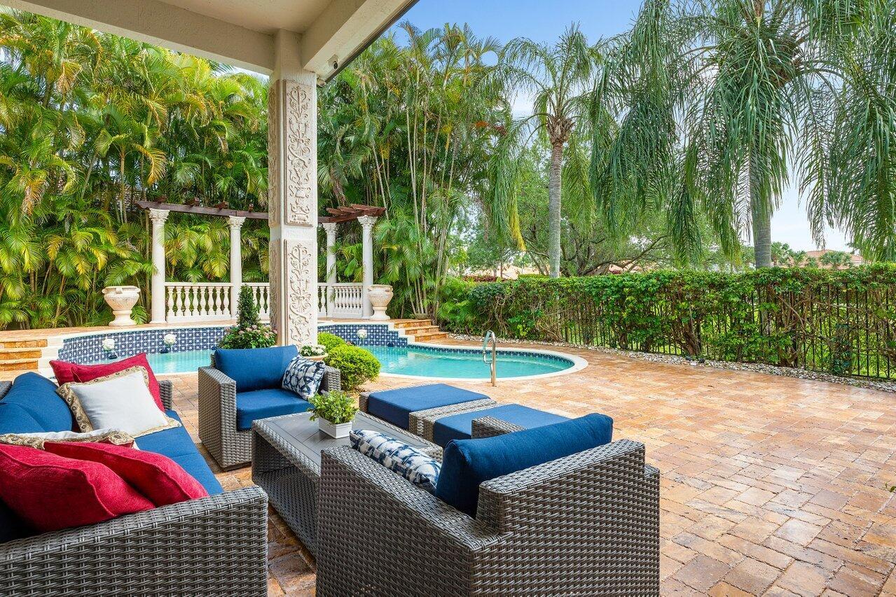 This exceptional 4 Bedroom, 4.1 Bath Home in Mizner Country Club has immediate Golf Equity Available! This beautifully maintained 4-bedroom, 4.1-bath residence is perfectly situated on an expanded lot, offering both privacy & elegance. With immediate Golf Equity available for purchase, this is an exceptional opportunity to step into the country club lifestyle. Enter to find gorgeous marble floors throughout, creating a seamless flow. The home features impact glass windows at the front & accordion hurricane shutters in the rear, & a whole-house 48K generator. This home also features an expanded driveway for added convenience, newer A/C units (none older than 4 years), & perimeter surveillance cameras for enhanced safety. The downstairs guest suite/office includes additional windows, bringing in natural light & offers an inviting space for visitors. Enjoy upgraded finishes throughout, including all new commodes & a well-appointed layout that balances open-concept entertaining spaces with private retreats. Mizner Country Club offers resort-style living w/an 18-hole golf course, tennis & pickleball courts, a fitness center, pilates, spa, resort style pool, kids splash area, & dining venues. Active social calendar w/events for all ages. There is 24/7 security, beautifully landscaped grounds, and family friendly amenities.