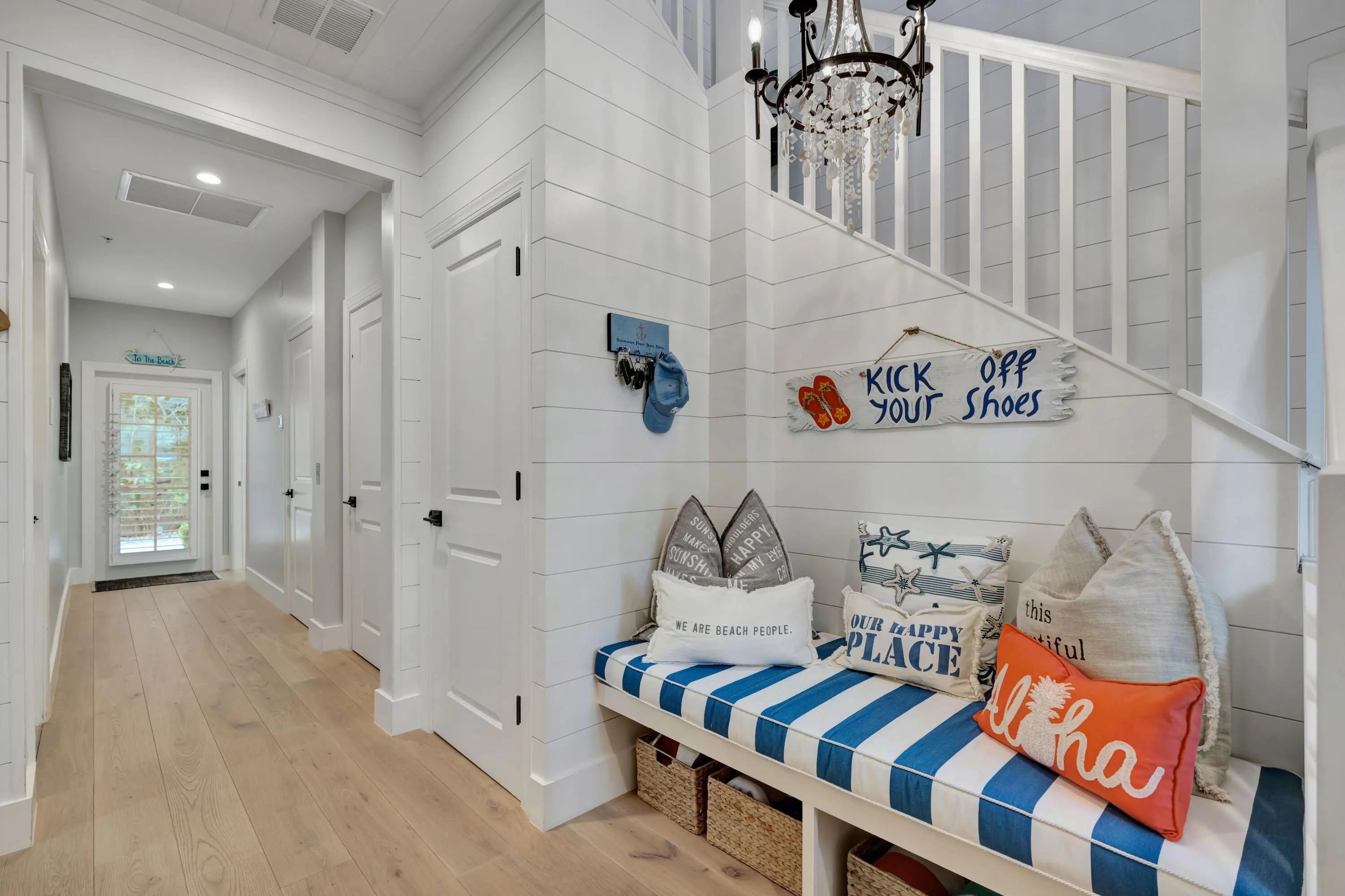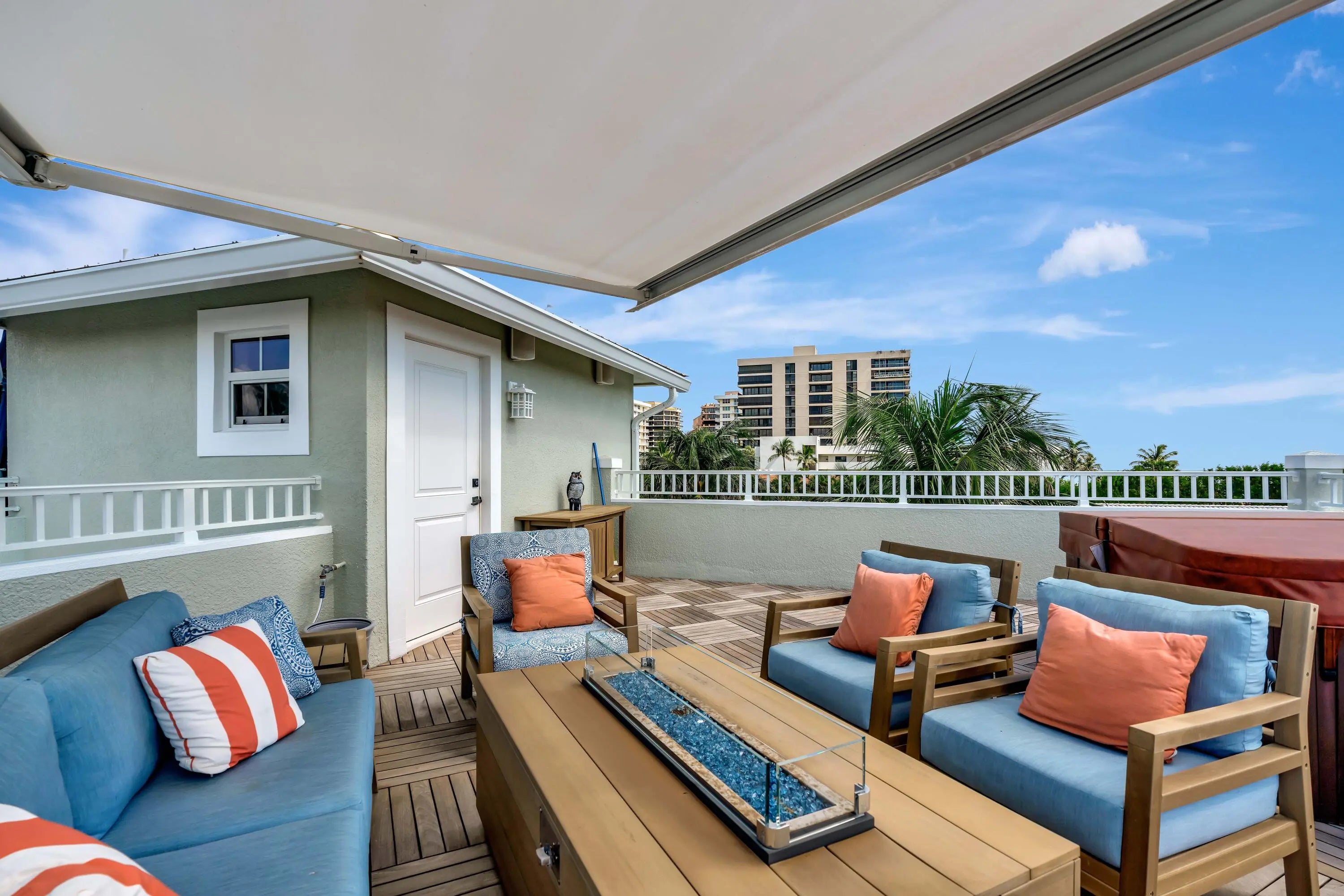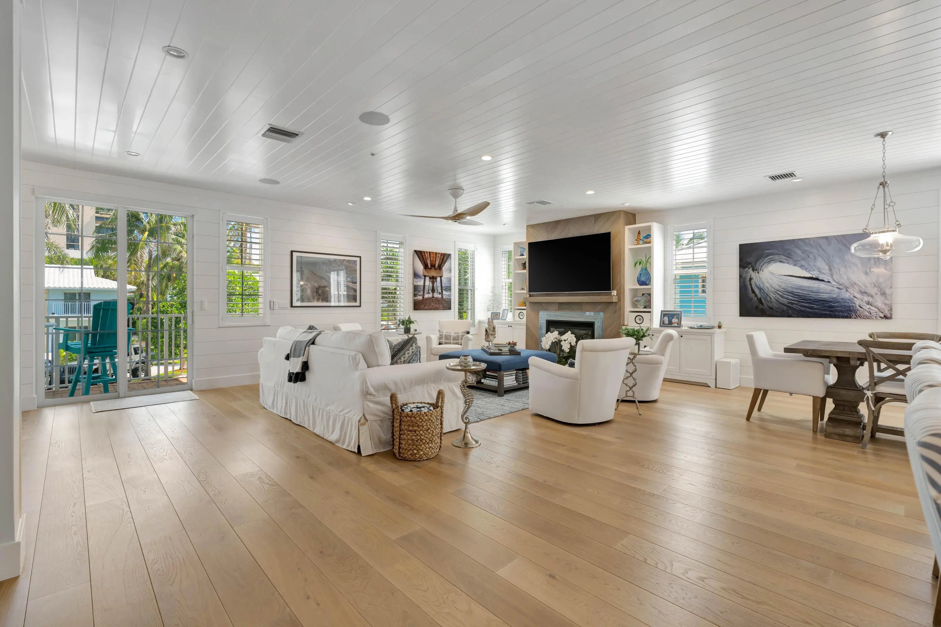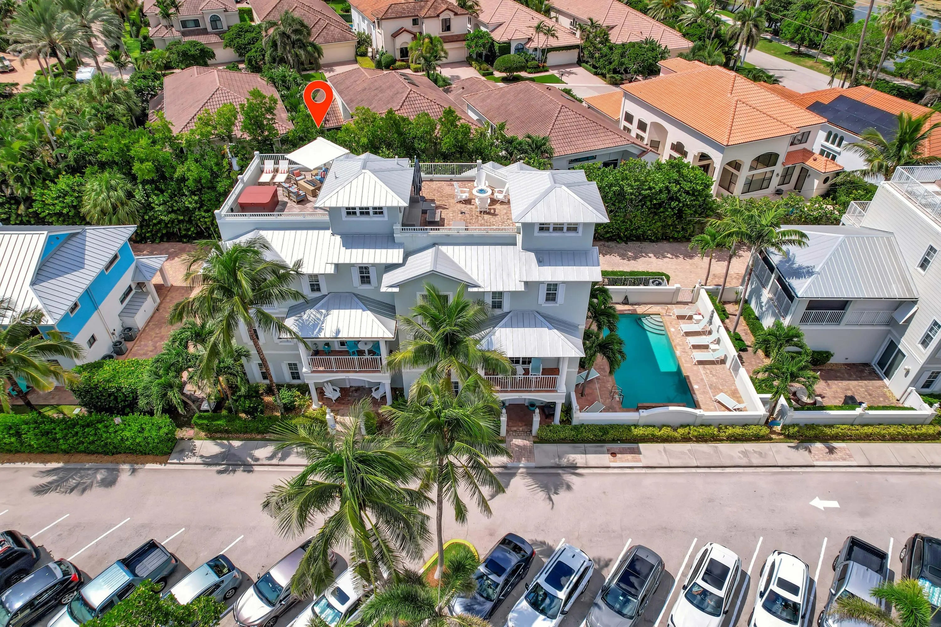 Experience luxury coastal living in this stunning four-story townhome located in the highly sought-after Seaside community of Juno Beach, nestled on the coveted ocean block of Mercury Circle. Spanning 4,277 square feet, this exquisite residence offers unparalleled panoramic views of the Atlantic Ocean from its expansive 507-square-foot top-level deck. Imagine unwinding in the hot tub while sipping on your favorite wine or cocktail, taking in the breathtaking surroundings. This home is a masterpiece of craftsmanship, boasting incredible custom millwork, including shiplap details that add to its coastal charm. The open-concept Chef's kitchen featuring a gas stove opens up to the family room, complete with a cozy fireplace, create an