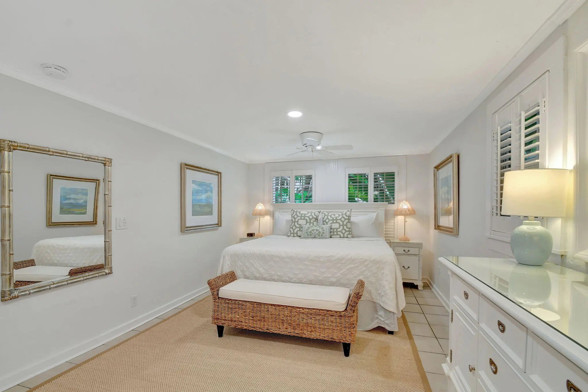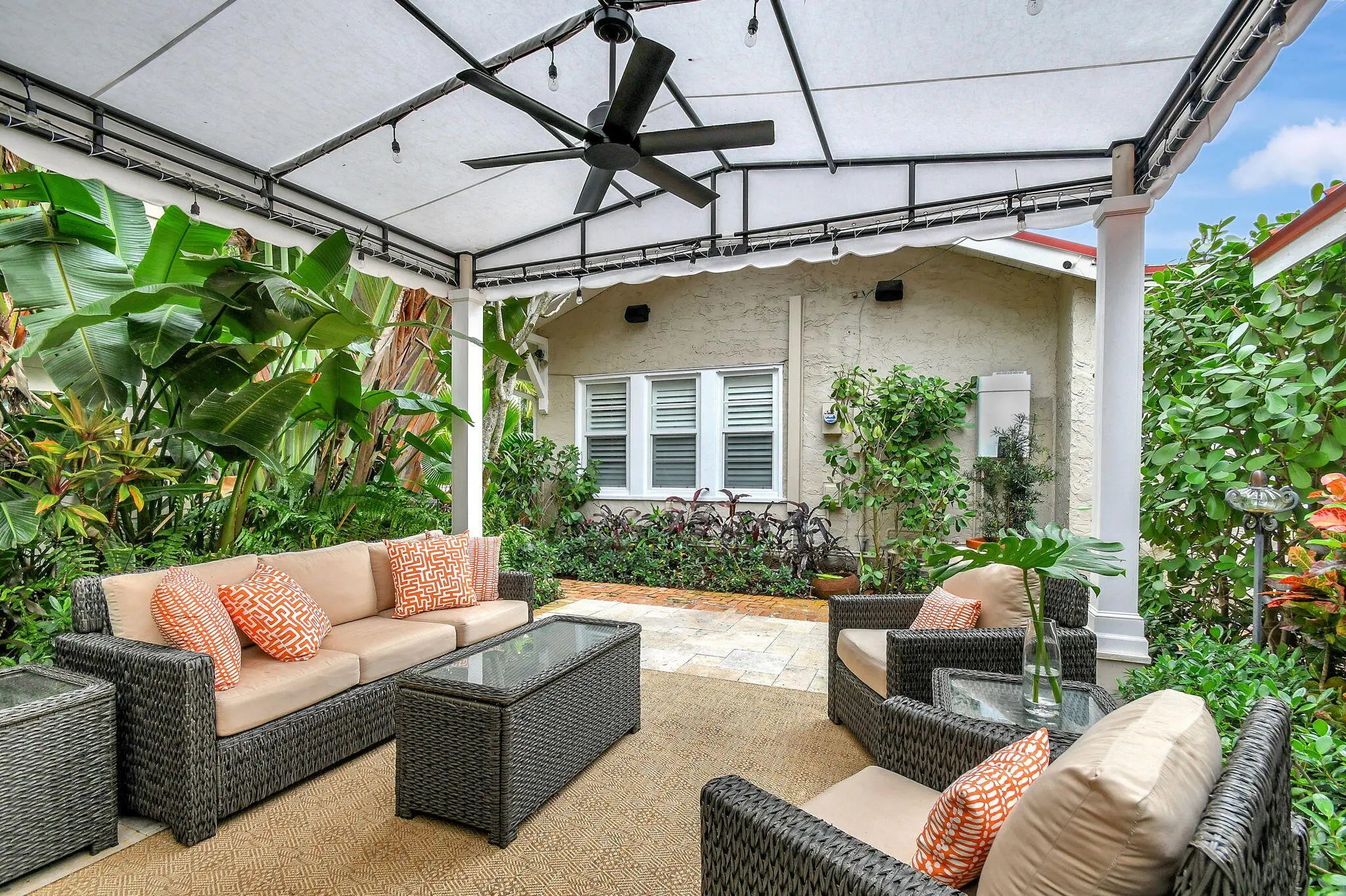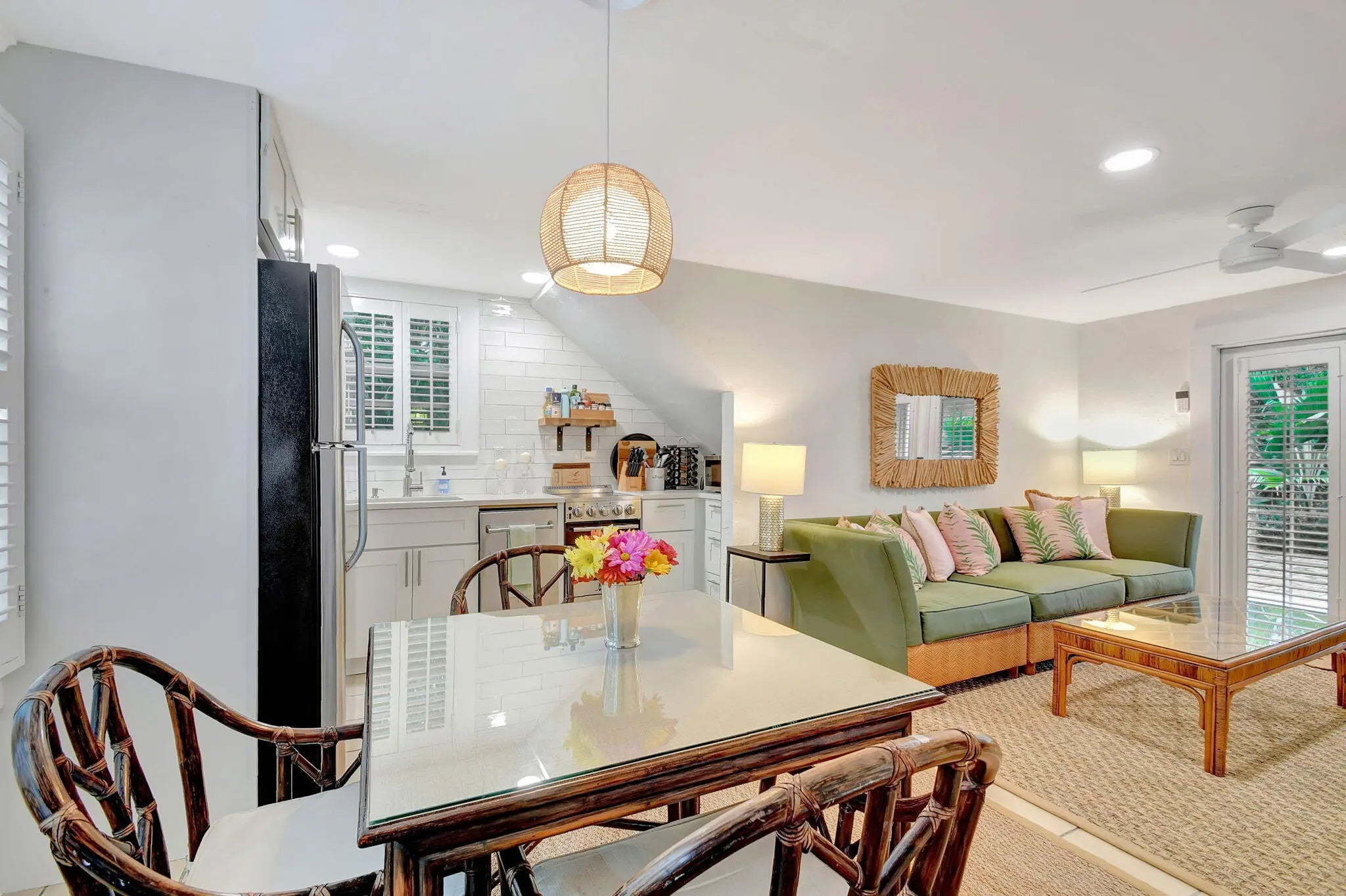 Villa Bamboo Terrace Apartment Historic El Cid One Bedroom with Lush Courtyard, Pool, Grill & Alfresco Dining Experience quiet relaxation at this newly renovated one bedroom on the terrace level of a 1925 converted Carriage House, set in the historic El Cid neighborhood of West Palm Beach. Surrounded by lush tropical gardens and a gorgeous, courtyard, you'll enjoy a shared sparkling heated pool, grill area, ample outdoor seating, and alfresco dining in this mini resort compound. Beautifully decorated, your rental pairs modern updates with original architectural woodwork and details. A stylish open floor plan offers ample natural light. In a coveted locale just up the street from the Intercoastal, you'll have quick access to art galleries, restaurants, shopping and local attraction