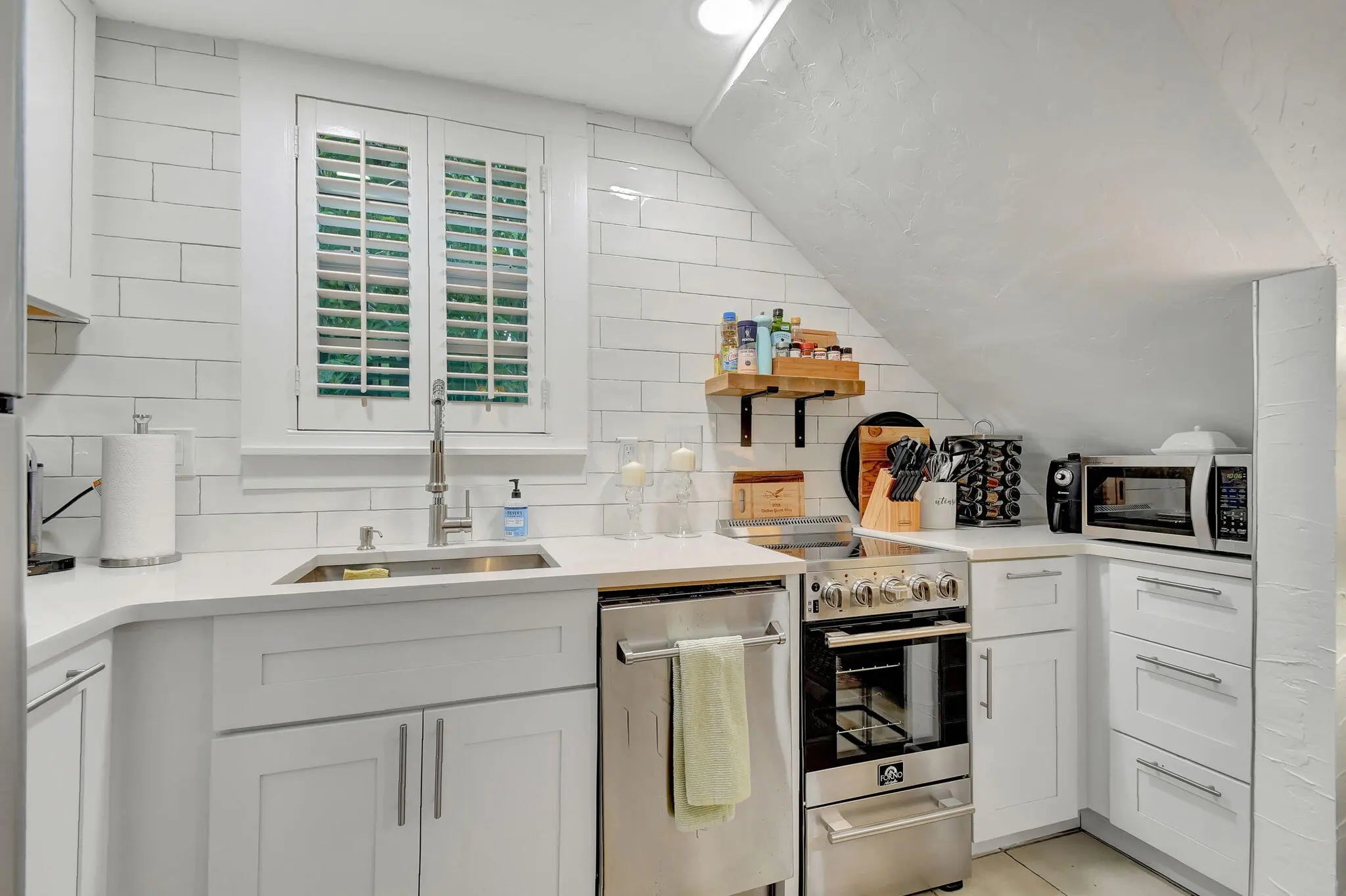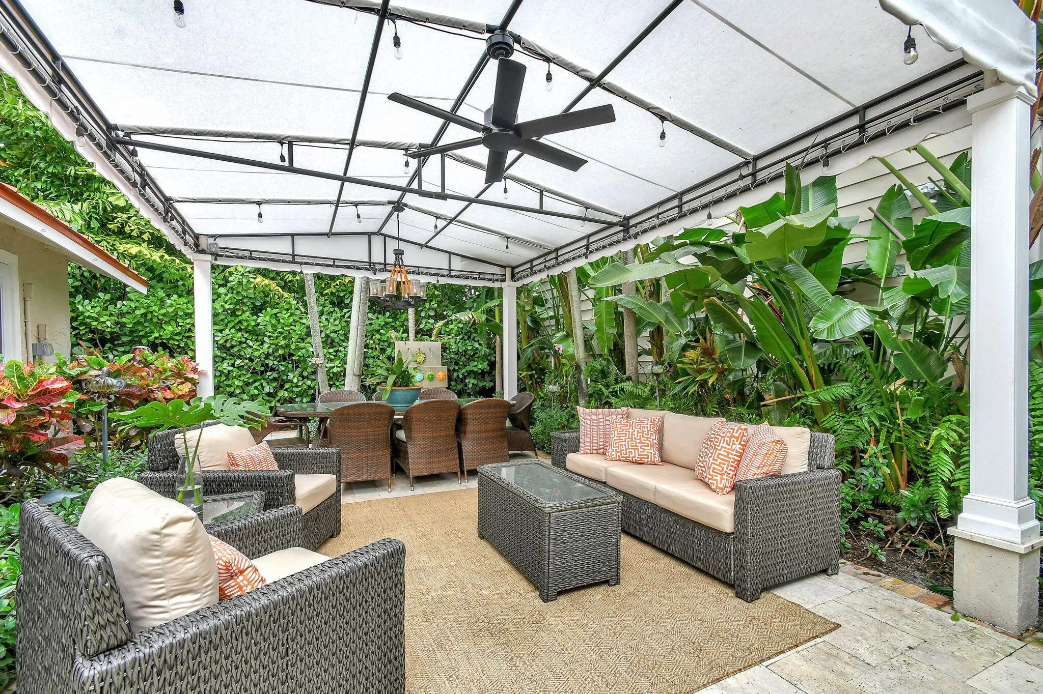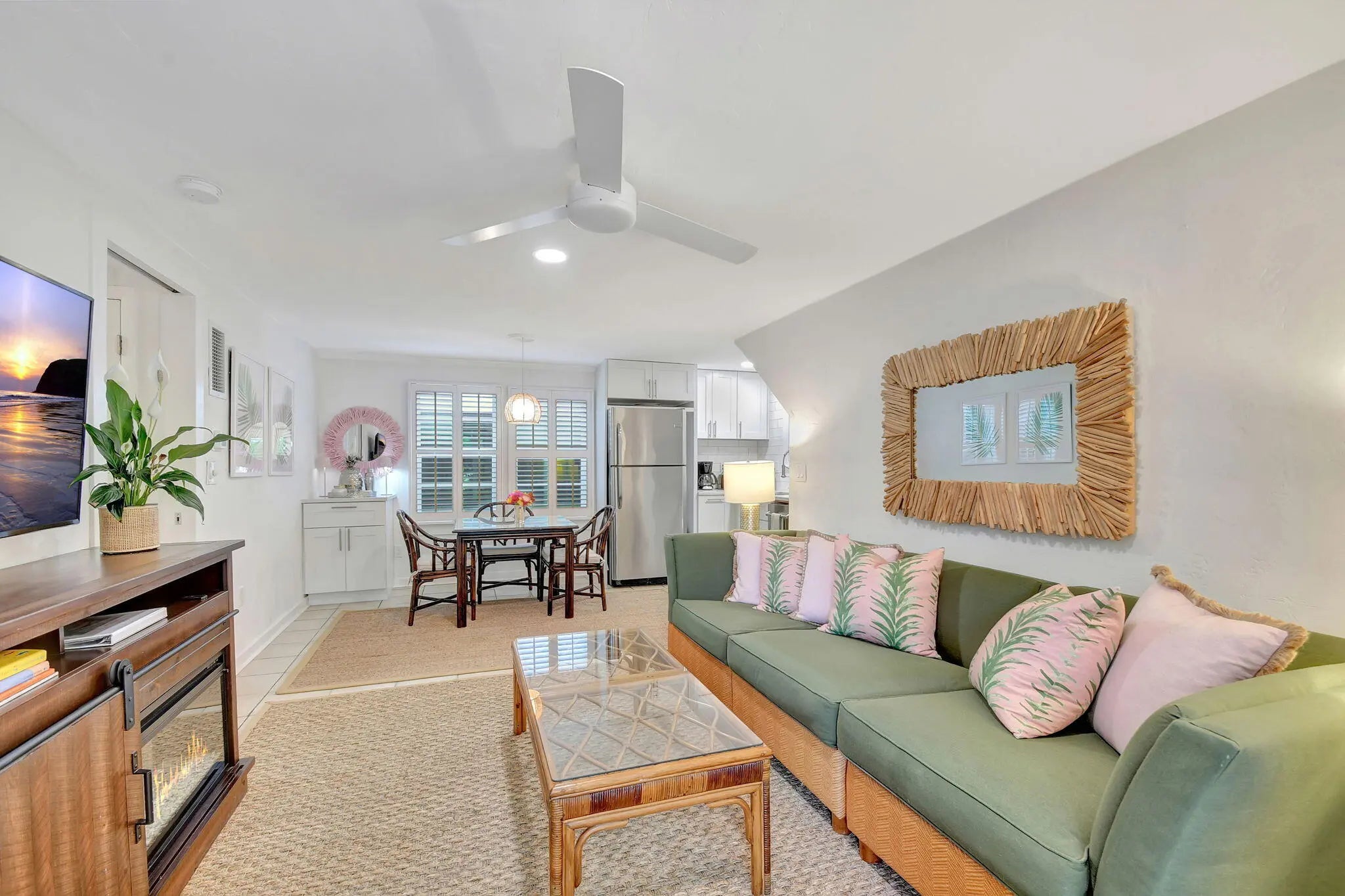 Villa Bamboo Terrace Apartment Historic El Cid One Bedroom with Lush Courtyard, Pool, Grill & Alfresco Dining Experience quiet relaxation at this newly renovated one bedroom on the terrace level of a 1925 converted Carriage House, set in the historic El Cid neighborhood of West Palm Beach. Surrounded by lush tropical gardens and a gorgeous, courtyard, you'll enjoy a shared sparkling heated pool, grill area, ample outdoor seating, and alfresco dining in this mini resort compound. Beautifully decorated, your rental pairs modern updates with original architectural woodwork and details. A stylish open floor plan offers ample natural light. In a coveted locale just up the street from the Intercoastal, you'll have quick access to art galleries, restaurants, shopping and local attraction