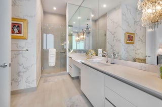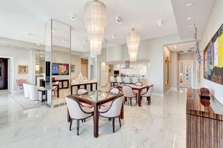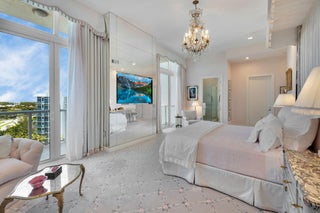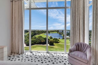 STUNNING CUSTOM AKOYA PENTHOUSE DESIGNED BY MICHAEL SIMON INTERIORS, OFFERED WITH EXQUISITE FURNISHINGS & CUSTOM ELEMENTS THROUGHOUT! BREATHTAKING SUNRISE & SUNSETS! 3,891SF OF PURE LUXURY WITH 12' SOARING CEILINGS AND ENDLESS PANORAMIC GOLF & LAKE VIEWS! ELEGANCE FROM THE MOMENT YOU ENTER! THIS 3/4.5 SMART HOME WITH LUXURIOUS PRIMARY SUITE BOASTS HIS & HER BATHS, CUSTOM CLOSETS, ELECTRIC DRAPES & SHADES, GOURMET KITCHEN WITH 2 DISHWASHERS, 3 ELEVATORS WITH PRIVATE FOYER ENTRY, 3 GARAGE SPACES WITH ELECTRIC & 2 AIR CONDITIONED STORAGE UNITS! AKOYA OFFERS VALET PARKING, 24 HOUR FRONT DESK ATTENDANT, RESORT STYLE POOL, FITNESS CENTER, SOCIAL PARTY ROOM, CARD ROOM & MORE! ALL WITHIN THE GATES OF THE #1 PRIVATE RESIDENTIAL COUNTRY CLUB! CLICK TO VIEW MORE ON THE MAGNIFICENT FINISHESDesigned by Michael Simon Interiors and features many custom elements, including eglomise panels at the entrance. Eglomise is a highly specialized art that entails gilding and painted glass on the back side of the glass, reflecting light in ever-changing ways. The Powder Room walls are hung with hand-painted Gracie tea paper and the room boasts a vintage Lalique pendant fixture, along with a vintage Lalique mirror above a custom vanity with a custom basin set. The Living Room features custom upholstery with bespoke reverse-painted and bronze end tables. A custom mantel, designed by Michael Simon, is composed of molded and silver gilded glass, Bianco Sivec stone, sculpted in a modernist design, and 24k gold plated fillets, flanking the molded glass. An overmantel mirror was fashioned in fluted and plain glass. A flatscreen TV behind the overmantel mirror is only evident when the TV is on. The walls are hung in a custom-made silk wall covering in a platinum color which complements the custom carpet and sheer curtains. Separating the Living Room from the Dining Room is a rare slab of Byzantine Pink Onyx, floated between mirrored columns. One of the columns contains a mini fridge and storage for stemware, wine and alcohol. Bespoke chandeliers were commissioned to illuminate a pair of tailor-made dining tables with seating for eight. A buffet, designed by Simon, is made of polished macassar ebony with chiseled and gilded glass inset panels. Both the Living and Dining areas access a large outdoor terrace overlooking a handsome golf course with endless views. An open Kitchen is fitted with custom cabinetry, state-of-the-art Sub-Zero & Wolf appliances and a micro-mosaic backsplash. The large island accommodates barstool seating. The walls in the Study are clad in stunning reverse-painted glass with brass fillets and a private bath. An L-shaped sofa converts into a queen-size bed for guests. The Study has access to the terrace. A dedicated Guest Bedroom, with en-suite bath, also has access to the terrace. A king bed sits on a custom carpet with a design that is echoed in the Guest Bath. Silver-leafed panels commissioned for the bedroom sit atop the king headboard. The Primary Suite, with "His" and "Her" Baths, is a large and commodious space that runs the length of the apartment. The king bed has a canopy, supported by columns that are mirrored with antique glass. Hand-tufted wall-to-wall carpeting, in a trellis pattern, traverses the Primary Suite including large closets with handmade millwork for "His" and "Her" wardrobes. The Bedroom has custom curtains, antiques and plush upholstery for lounging. A private terrace completes the luxurious space. Located within the gates of the #1 Private Residential Country Club in the Nation, Boca West offers a world class spa, aquatics and fitness center, 4 Championship Golf Courses, 27 tennis courts, 14 Pickelball Courts, 10 Dining Venues, an amazing variety of activities and entertainment!
