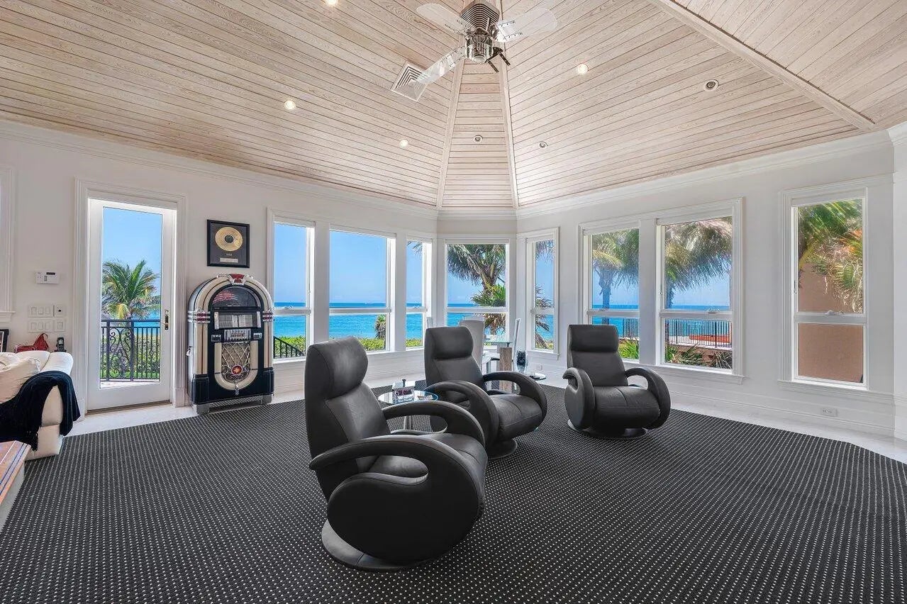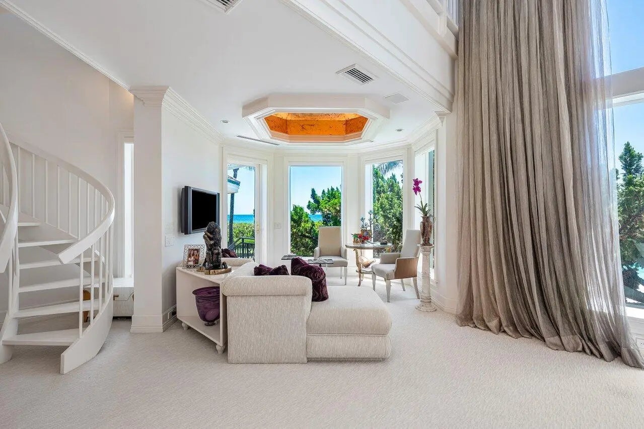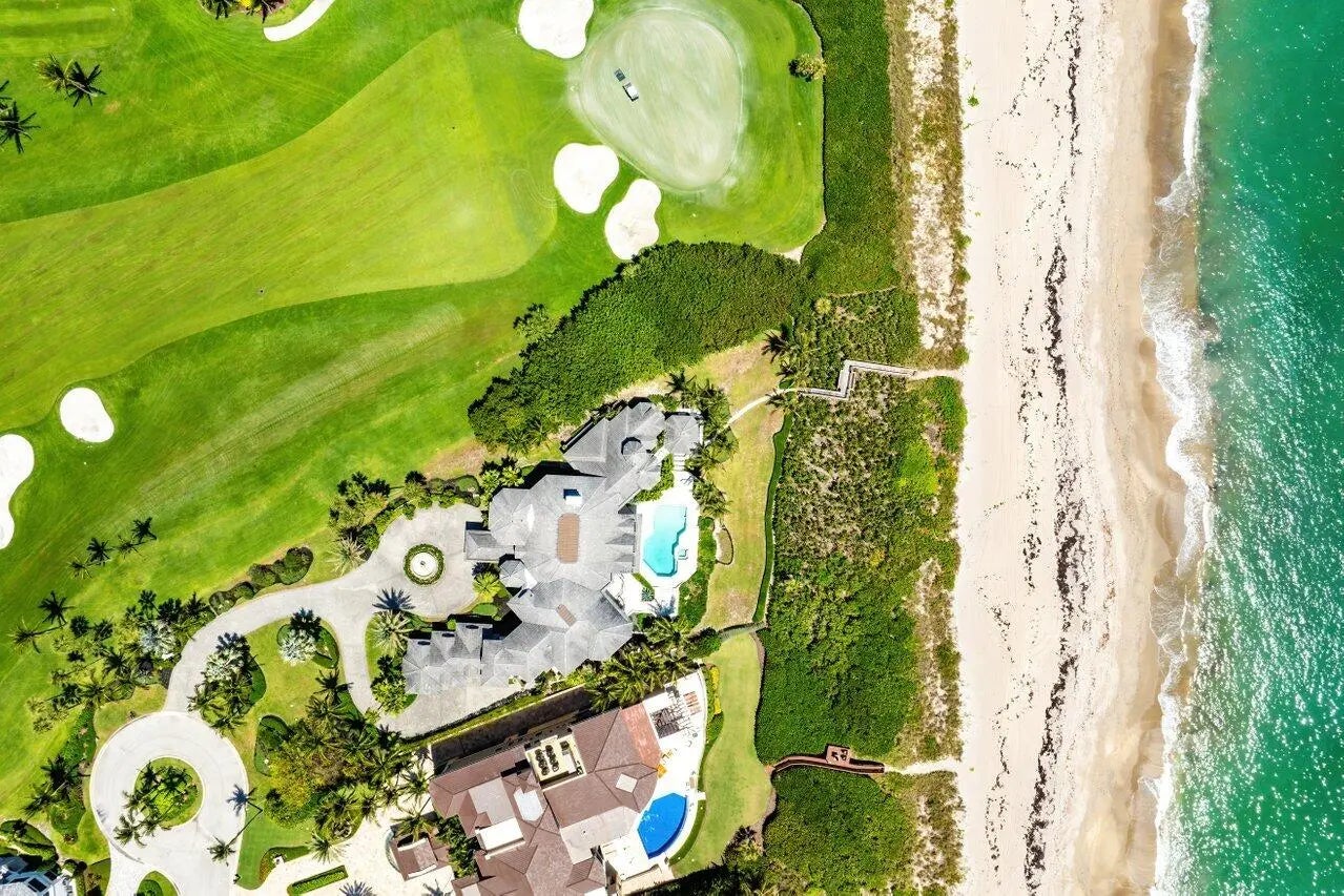 Direct oceanfront French chateau-style estate home, 3066 SE Dune Drive, sits on one of Sailfish Point's most prestigious oceanfront lots, offering 170 feet of direct beach frontage. Originally recognized with the Golden Aurora Award from the Southeast Building Conference for the ''finest one-of-a-kind, single-family home,'' this masterpiece stands as a testament to exceptional design and craftsmanship, chosen from entries spanning 12 states.Encompassing 9,962 square feet under air and 11,709 total square feet, this estate features 7 full bathrooms and 5.2 bathrooms, thoughtfully arranged to provide ultimate comfort and privacy. The primary suite is conveniently located on the main level, with additional guest suites upstairs, all accessible by a private elevator.