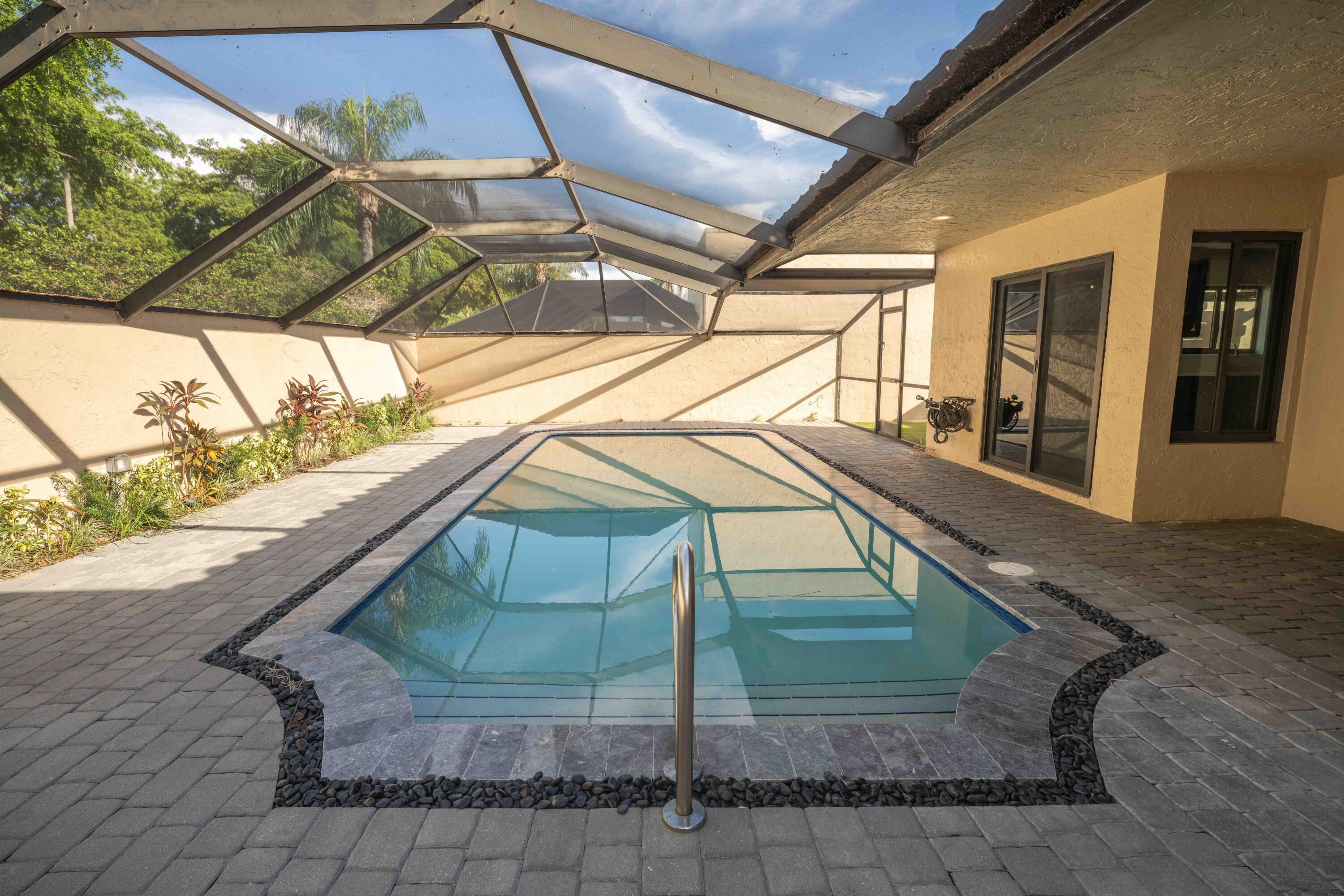 Beautifully updated 3BR/2BA pool home with den in desirable Boca Raton neighborhood. Hurricane-impact windows and doors. Smart home features include interior/garden lighting, garage door with multi-profile settings, and smart irrigation system. Kitchen boasts GE Profile dual-drawer dishwasher and double oven electric range. Enjoy a heated saltwater pool, turf grass, and dining room that opens to a pergola-covered deck--perfect for entertaining. The home also features built in speakers in the living room, den & garage! Finished garage with A/C, custom storage, expansive closets with drawers in both hallway and garage. The community is close to places of worship & includes a community pool!. The rental price includes cable, HBO, WIFI, and the front landscaping! including pool maintanence