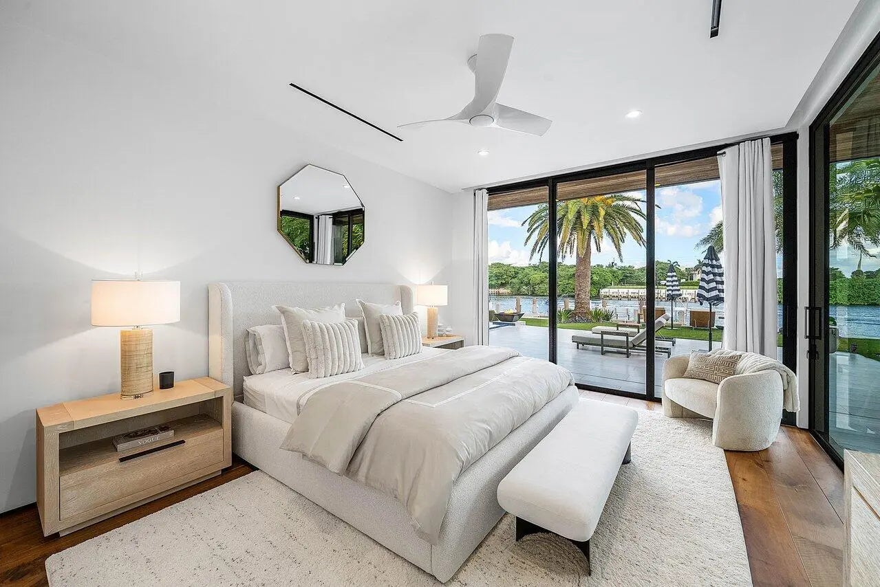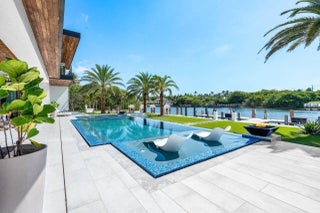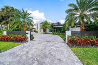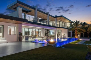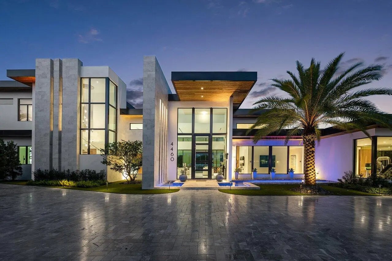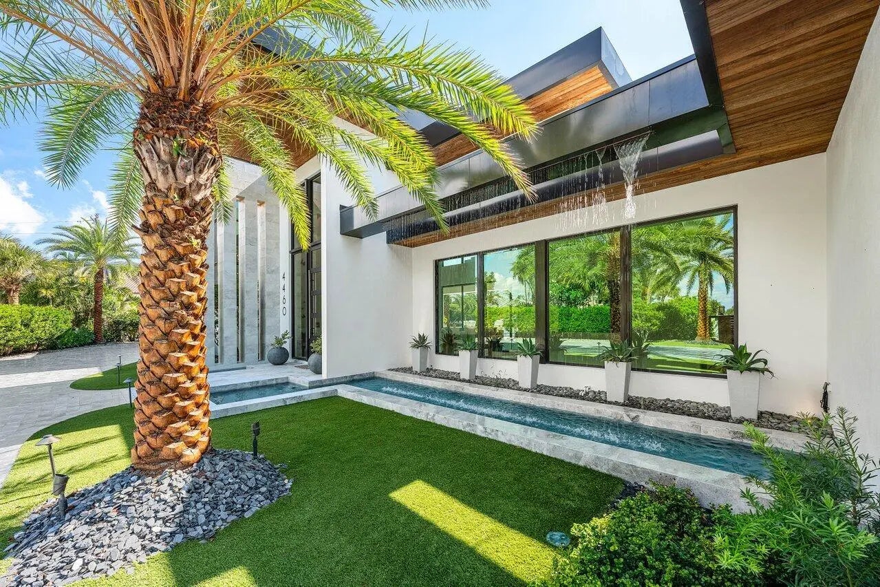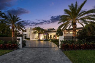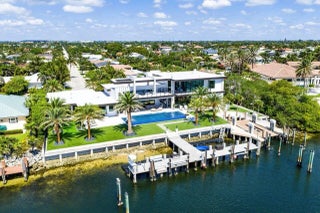 A Masterpiece of Modern Waterfront Living. Introducing a newly constructed, gated contemporary estate that redefines luxury on the Intracoastal Waterway, perfectly positioned on an expansive 161+/- feet of prime no-wake frontage directly across from the prestigious estates of Hillsboro Mile. Designed as a one-of-a-kind architectural statement, this glass-encased residence offers uninterrupted front-row views from nearly every major room, creating a seamless connection between interior elegance and the surrounding waterfront beauty. An awe-inspiring arrival begins with a cascading water wall entry that sets the tone for the exceptional design that follows. Inside, ultra-refined finishes abound--from a bespoke chef's kitchen with professional-grade appliances to imported tile, custom lighting,