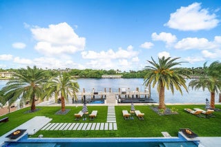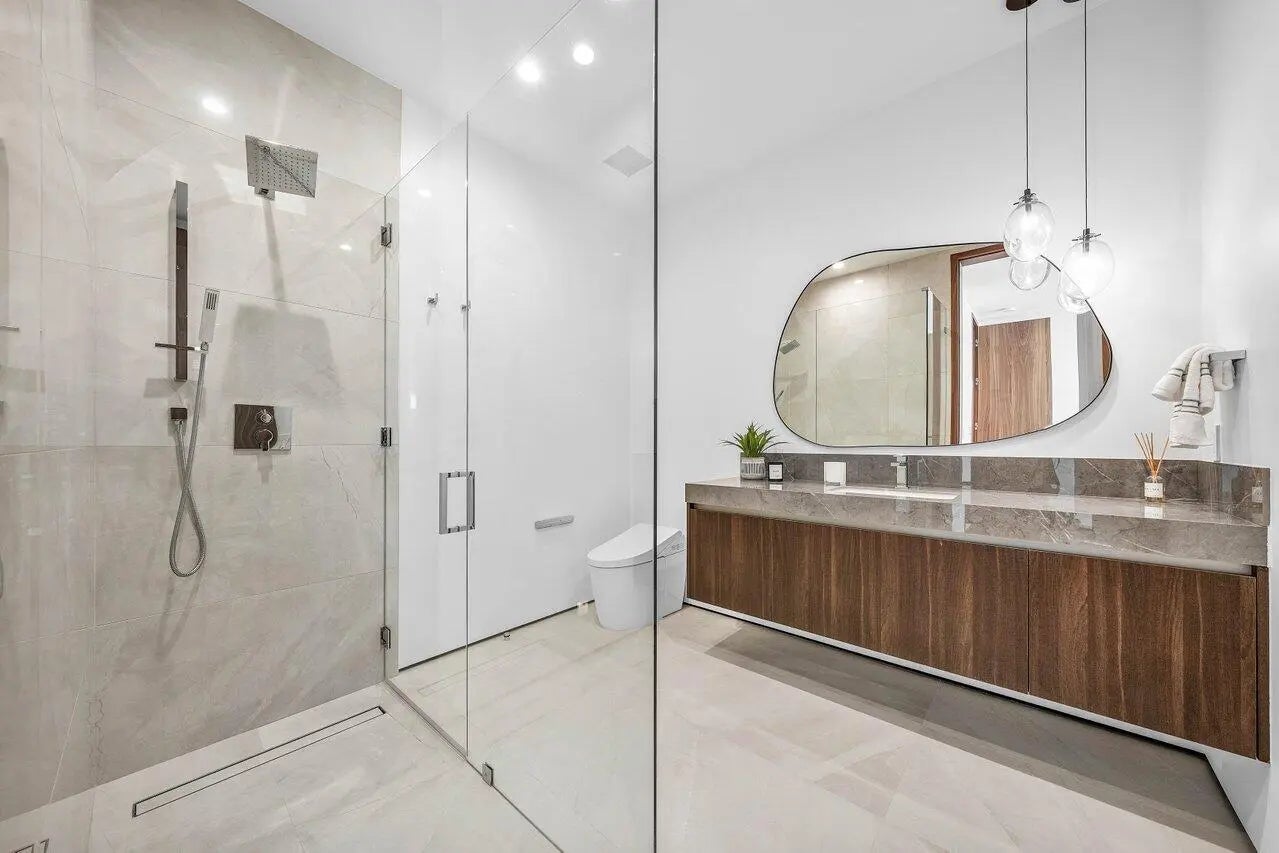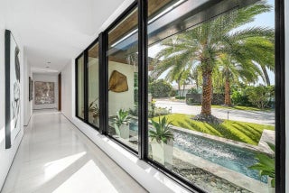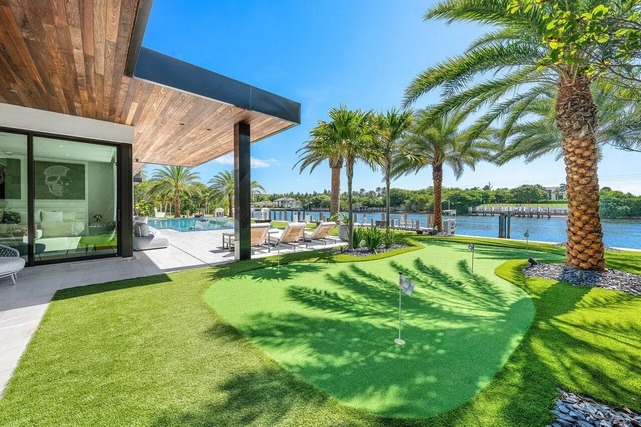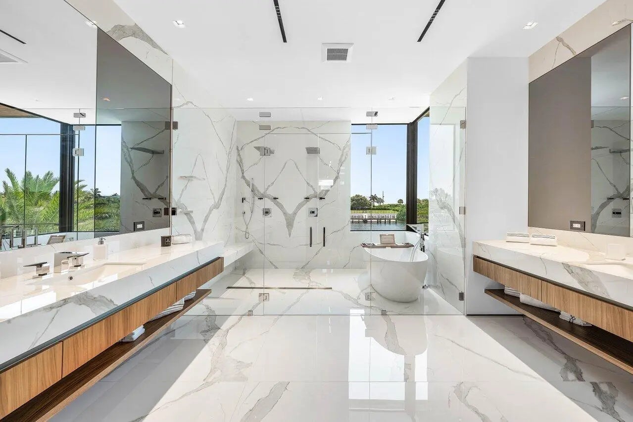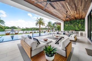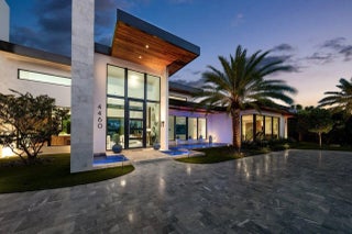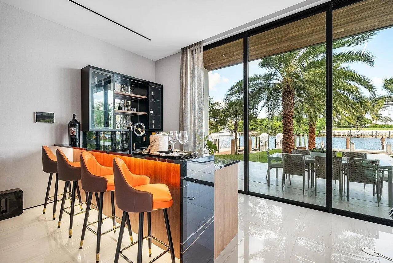 A Masterpiece of Modern Waterfront Living. Introducing a newly constructed, gated contemporary estate that redefines luxury on the Intracoastal Waterway, perfectly positioned on an expansive 161+/- feet of prime no-wake frontage directly across from the prestigious estates of Hillsboro Mile. Designed as a one-of-a-kind architectural statement, this glass-encased residence offers uninterrupted front-row views from nearly every major room, creating a seamless connection between interior elegance and the surrounding waterfront beauty. An awe-inspiring arrival begins with a cascading water wall entry that sets the tone for the exceptional design that follows. Inside, ultra-refined finishes abound--from a bespoke chef's kitchen with professional-grade appliances to imported tile, custom lighting,