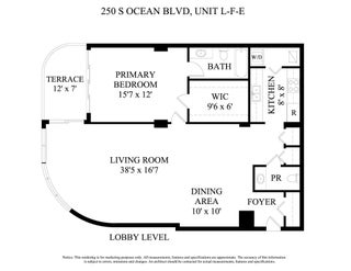 Rare opportunity at The Marbella. Lobby level one bedroom, one full and one 1/2 bathroom. Patio, Covered parking space and storage locker. Oceanfront full service building. This would be a great addition to a Marbella unit owner needing more space in the building for overflow guests, home office, gym, use of extra parking space/ storage etc. The perfect beach cabana for those who live in a house out west that want access to the beach and amenities of Marbella. This is the least expensive unit in a prime oceanfront location and building in Boca Raton. LF-E can also be the perfect vacation or full time residence. See Floor Plan. The Marbella is located on the beach in walking distance to Downtown Boca Raton. Beautifully maintained, well run, full service building. Excellent financials. Featuring 24H security, tennis, pool, hot tub, BBQ, club room, fitness center, seasonal beach chair/ umbrella service, and docks.