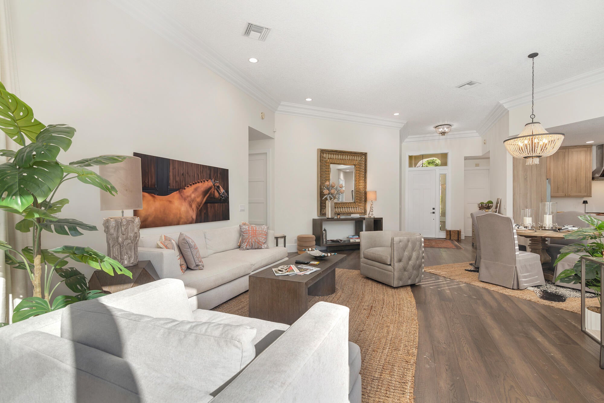 Gorgeous single family home, located in Eagles Landing part of the prestigious gated PB Polo & CC. Situated on a large private premium lot at the end of the cul-de-sac, the home has so many outstanding characteristics. New kitchen w/ top-of-the-line appliances; all new lighting; new landscaping; freshly painted inside & out; engineered hardwood floors thru-out;Plantation shutters; FULL floor to ceiling impact doors & windows. Beautiful indoor/outdoor living space & private backyard w/heated pool. This captivating 3 Bed/3.5 Bath home is nothing short of extraordinary. It features not one, but 3 bedroom suites, each complete w/en-suite bathroom.Impeccably designed with a stunning open floor plan and gourmet kitchen. Just a short distance (golf cart ride) to WEF, Global and the Polo