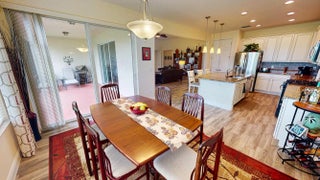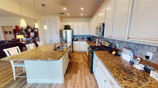 Located on a beautifully landscaped corner lot, this spacious 2-bedroom, 2.5-bath home with a versatile den offers over 2,100 square feet of elegant living in a thoughtfully designed layout. The home welcomes you with a large, open family room featuring soaring ceilings--perfect for entertaining or relaxing in style. The gourmet kitchen is equipped with upgraded 42-inch cabinets, granite countertops, a gas range, and ample storage, seamlessly connecting to the dining and living areas. The expansive master suite is a private retreat with a custom walk-in closet and a well-appointed en-suite bathroom featuring his and hers sinks and a large walk in shower. The split floor plan ensures privacy, with a generous second bedroom offering its own en-suite bath, ideal for guests.