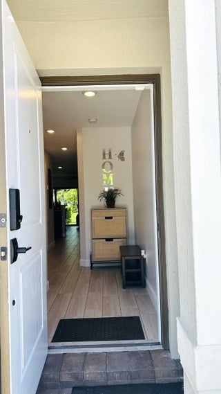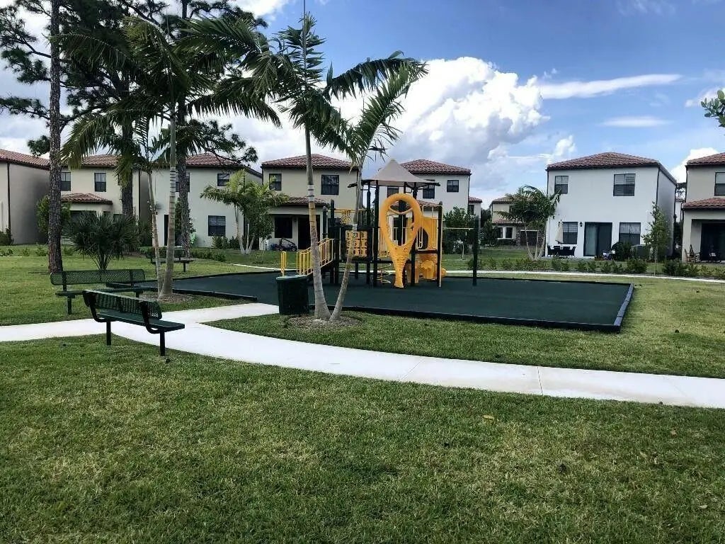 Beautiful villa located in a gated community with easy access to the Turnpike and I-95, with main entrance off Military Trail. The community offers resort-style amenities including a pool, hot tub, clubhouse, gym, playgrounds, and walking trails. Conveniently close to hospitals, fire stations, restaurants, major stores, and supermarkets. The home features a first-floor bedroom with a full bath, plus two bedrooms upstairs, each with its own bathroom, and a spacious loft for a second living area or office. Ample closets provide great storage. The property is in excellent condition and includes a whole-house water filtration system to support a healthy lifestyle. A wonderful opportunity to own a well-located, family-friendly home with space, comfort, and community amenities all in one.