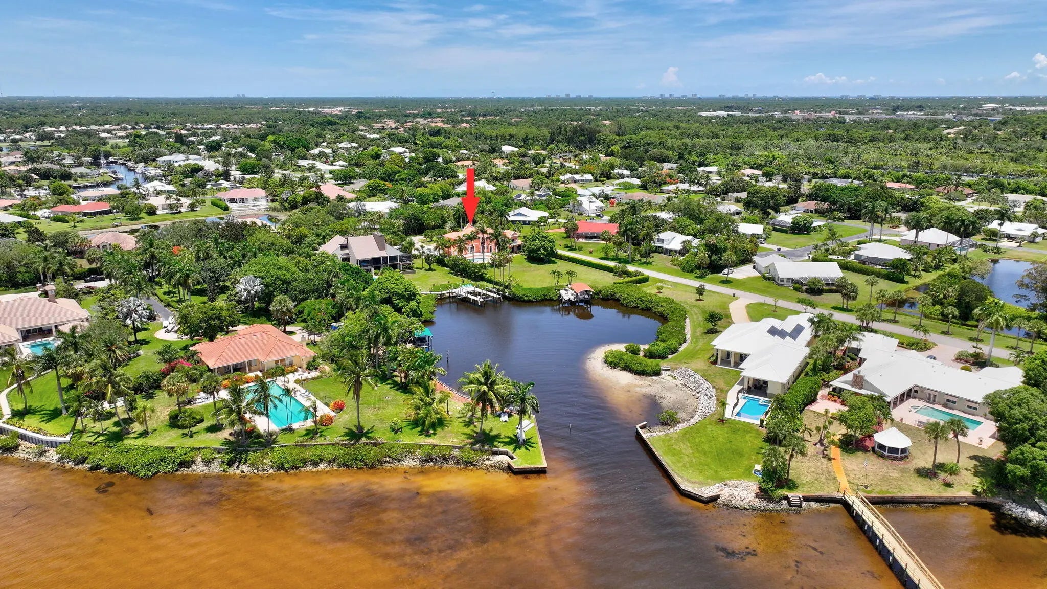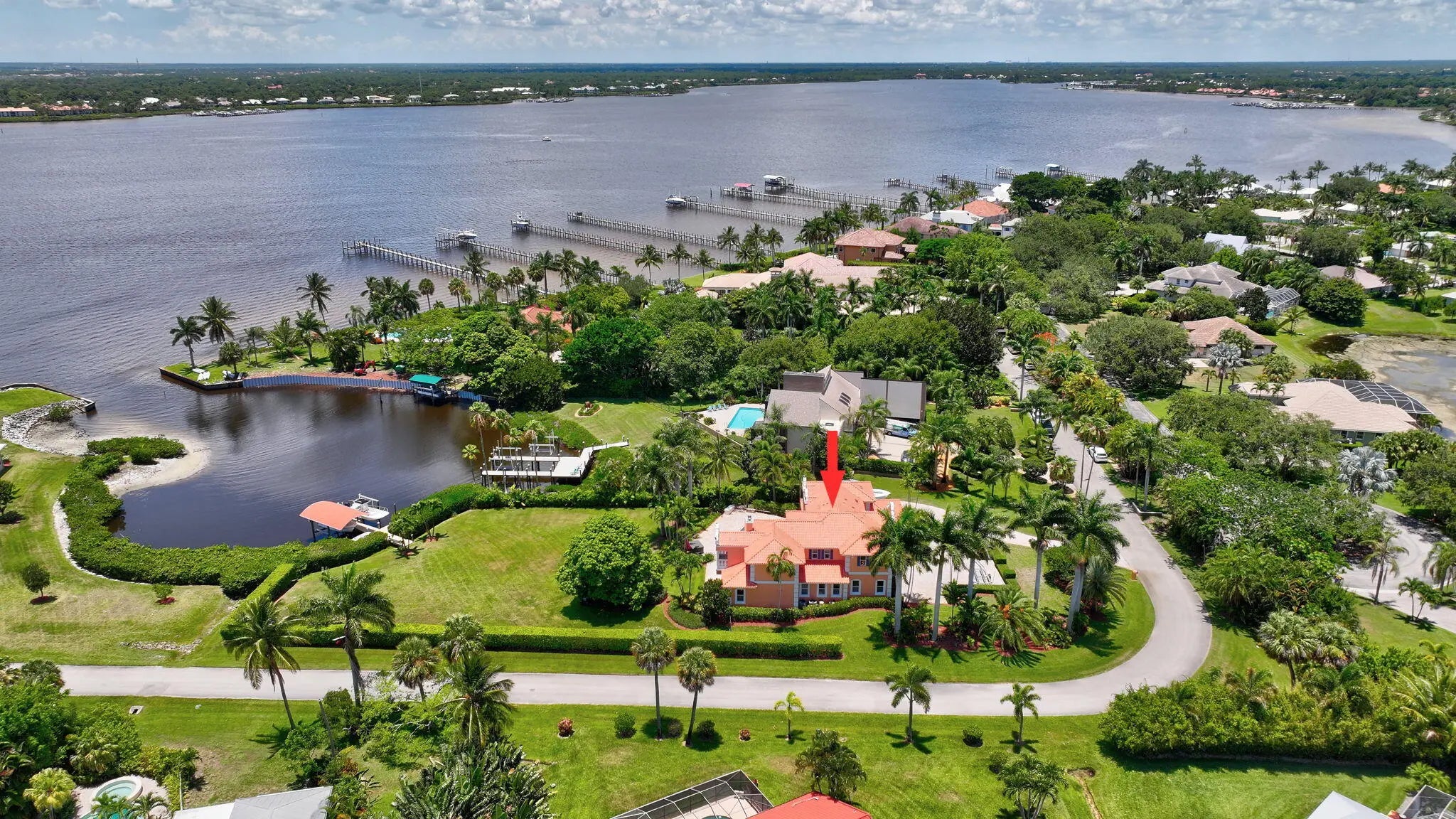 Welcome to Casa de la Cala, a stunning 5BR/3.5BA waterfront estate tucked in a peaceful cove opening to wide water views. Set on 1.66 lush acres--one of the largest parcels in the area--this elegant home features soaring ceilings, a dramatic circular staircase, spacious living areas, and breathtaking views from nearly every window. Enjoy two fireplaces, large closets with built-ins, and an extra room off the garage ideal for extra storage or hobby space. The expansive pool and patio area is a private oasis, perfect for relaxing and entertaining. While a private dock with two boat lifts offers quick access to the St. Lucie Inlet. Just minutes from downtown vibrant Stuart, Casa de la Cala is the ultimate blend of privacy, luxury, and coastal lifestyle. A detailed features list is available.