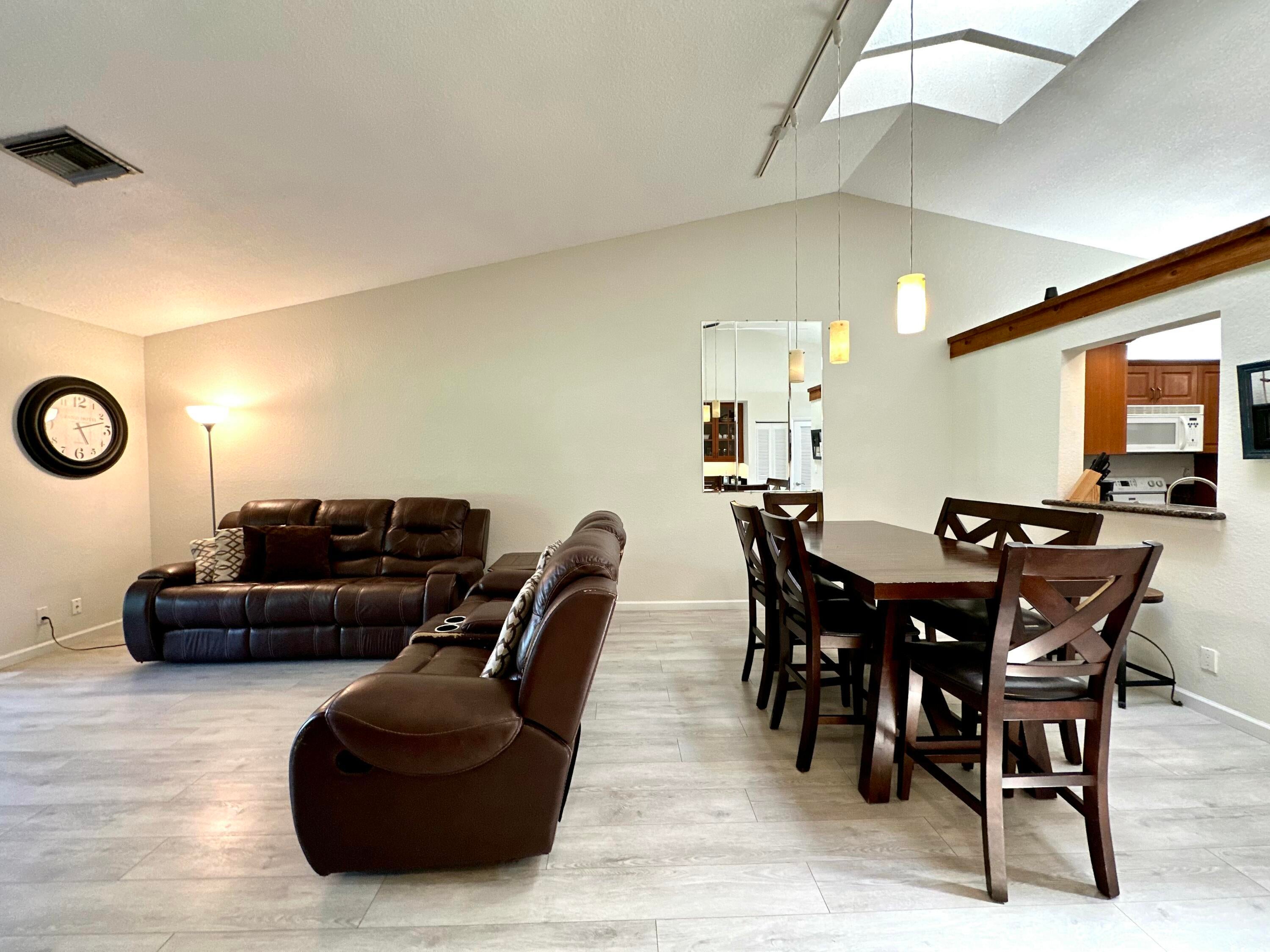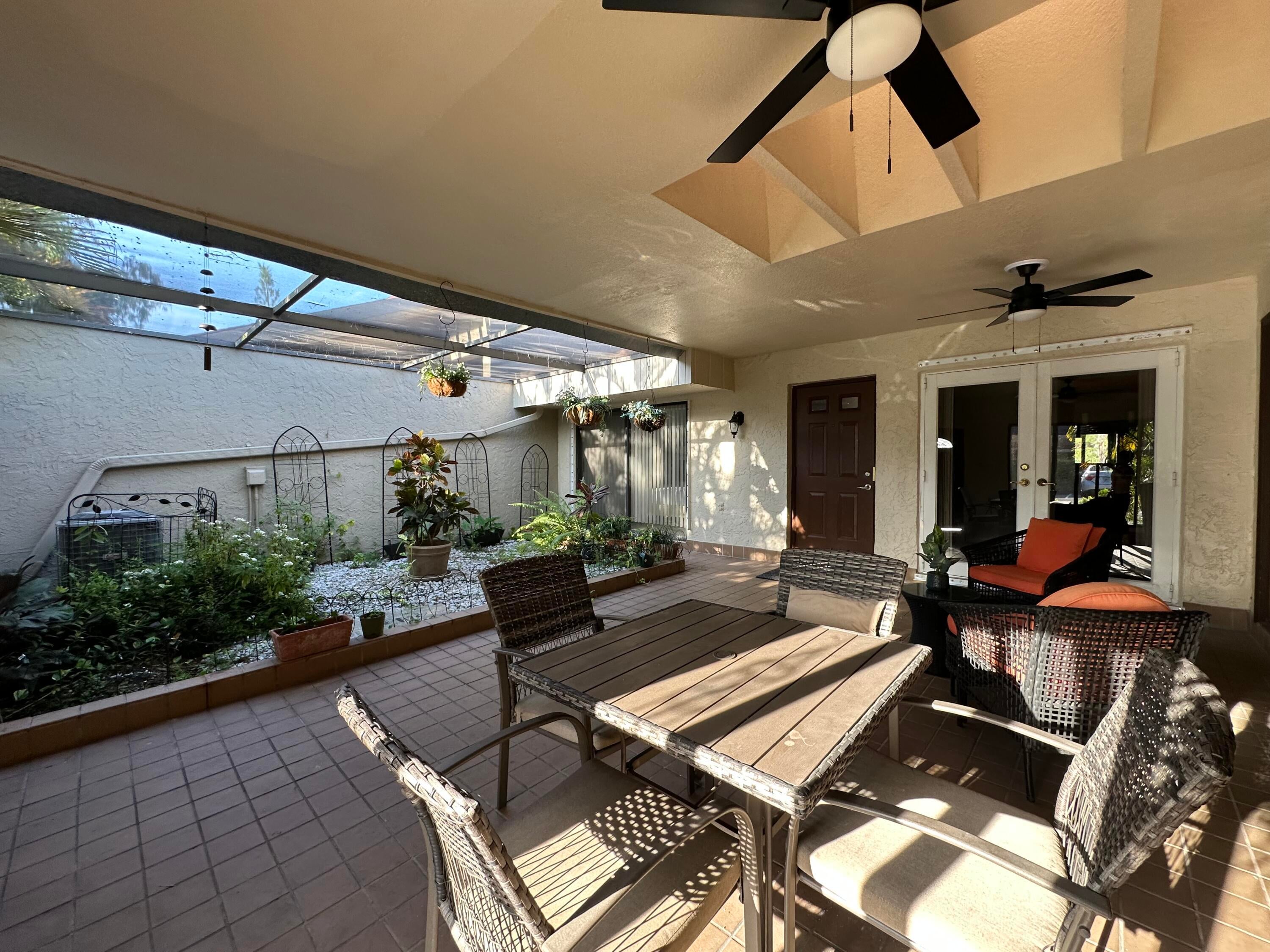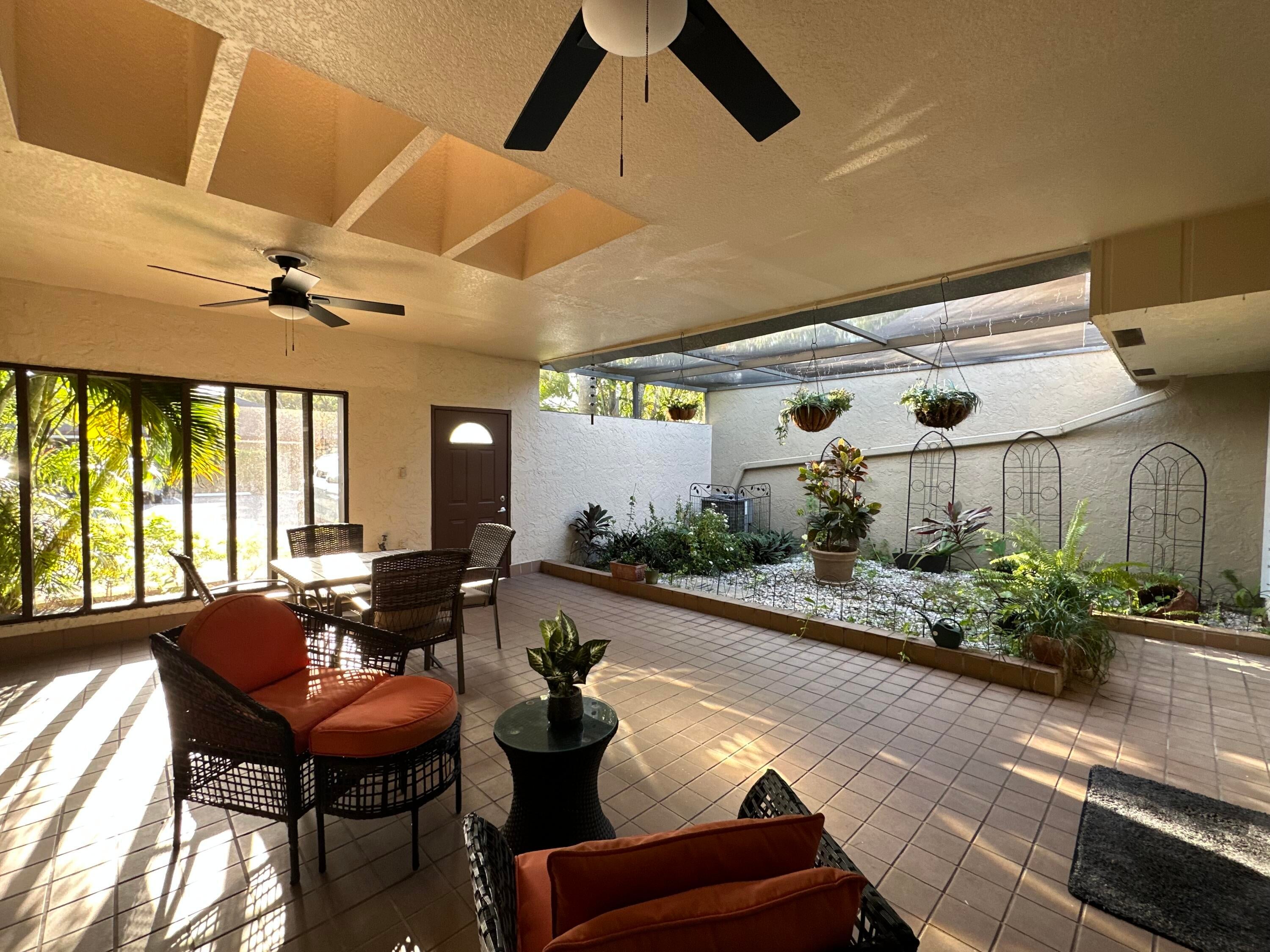 Spacious and bright 2-bedroom, 2-bath villa located in the highly sought-after Timberwalk community in West Boca Raton. This well-maintained home features a private front courtyard, a screened back porch with tranquil garden views, and high vaulted ceilings with skylights that bring in abundant natural light throughout the day. The layout includes generously sized bedrooms, ample closet space, and an open living and dining area, creating a comfortable and welcoming atmosphere.Enjoy parking for two vehicles right in front of the unit, along with the flexibility of renting the home partially furnished or unfurnished, depending on your needs. The community is nestled in a very quiet and peaceful neighborhood, perfect for those seeking both privacy and convenience.Located just minutes from major highways, top-rated Boca Raton schools, and an array of shopping centers, restaurants, parks, and everyday conveniences, Timberwalk offers an ideal location for easy South Florida living. This rental is a perfect blend of comfort, style, and locationready for you to move in and enjoy!