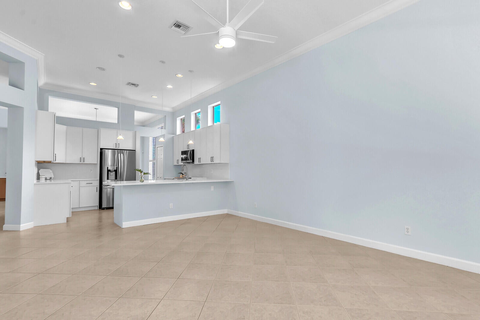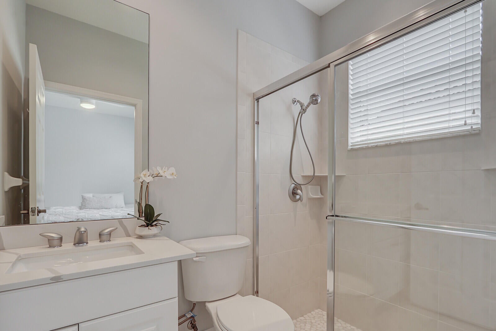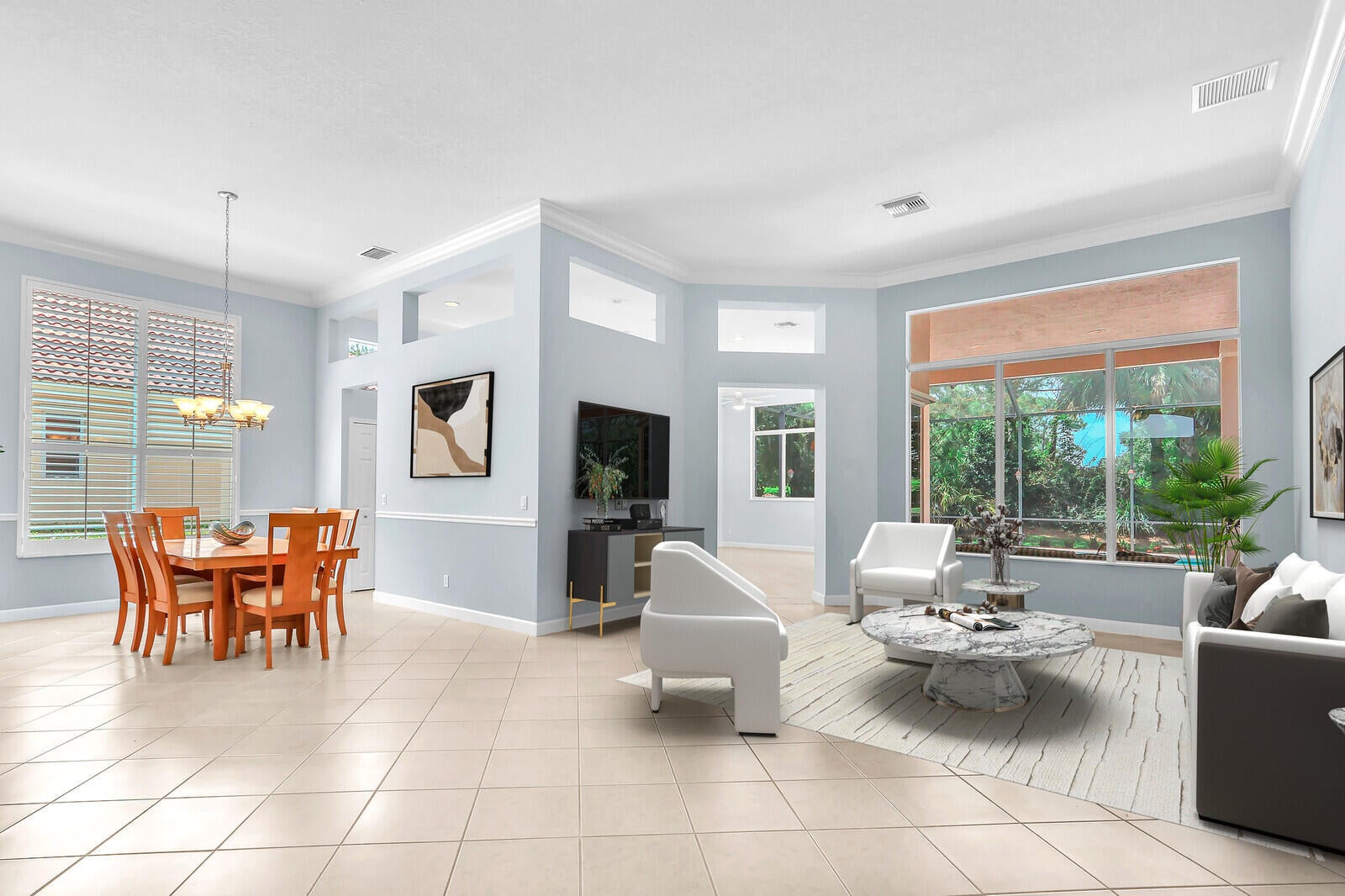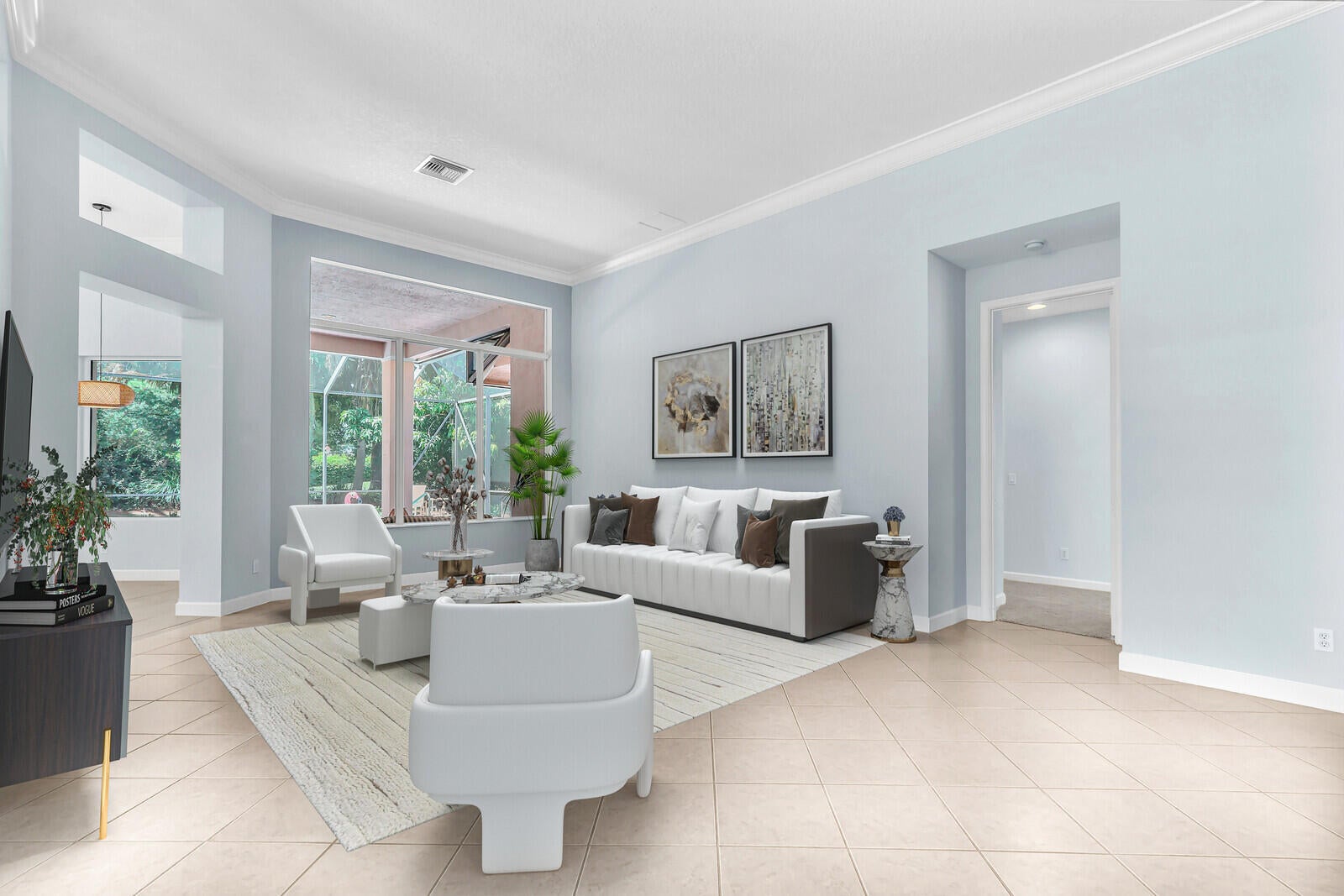 Tastefully updated 2BR + Den home located in the highly desirable Greenbrier neighborhood of PGA Village. This move-in-ready residence features a bright, light-filled kitchen with crisp white cabinetry, sleek stainless-steel appliances, and stunning quartz countertops highlighted by a stylish tile backsplash. A convenient breakfast bar opens seamlessly to the spacious family room, creating the perfect setting for everyday living and casual entertaining.The expansive living and dining areas are ideal for hosting, while sliding doors from the family room lead to a large screened lanai overlooking a sparkling private pool--your own peaceful retreat for outdoor relaxation and gatherings. The generous primary suite offers two walk-in closets with built ins and plush new carpet.The luxurious ensuite bath showcases white cabinetry, new quartz countertops, and a fresh, refined design. A split floor plan ensures privacy, with a beautifully updated guest suite featuring new carpet and its own upgraded ensuite bath. The versatile den, accented by bay windows and plantation shutters, provides the perfect space for a home office, media room, or cozy reading nook.