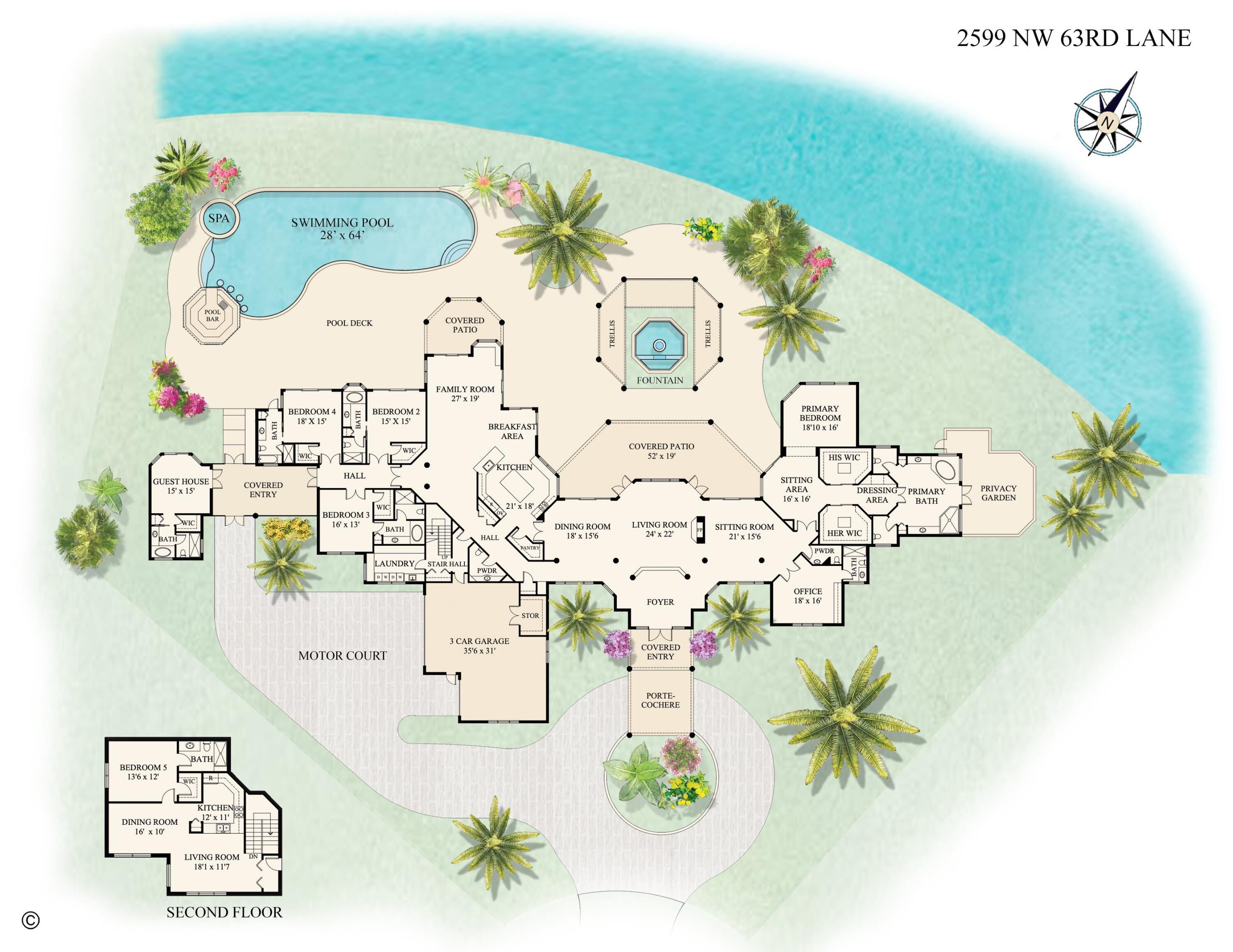 MAGNIFICENT DOUBLE LOT ESTATE SITUATED ON 284' OF PRISTINE WATERFRONT IN GRAND OAKS AT BROKEN SOUND COUNTRY CLUB! 8,328 SF OF PURE LUXURY NESTLED ON A CUL-DE-SAC ON .88 ACRE! 6 EN-SUITE BEDROOMS + OFFICE, 7.2 BATHS & FLOOR TO CEILING IMPACT WINDOWS WITH PANORAMIC VIEWS OF THE GOLF FAIRWAYS & LAKES! PALATIAL PRIMARY BEDROOM SUITE WITH PRIVATE SITTING AREA, A SPA INSPIRED BATHROOM & HIS/HER CLOSETS! UPSTAIRS PRIVATE RETREAT WITH FULLY EQUIPPED KITCHEN, LIVING ROOM & EN-SUITE BEDROOM! GUEST HOUSE WITH COVERED BREEZEWAY TO THE MAIN HOUSE! GOURMET CHEF'S KITCHEN WITH CUSTOM CABINETS, QUARTZ COUNTER TOPS, DOUBLE OVENS & WINE COOLER! EXPANSIVE PATIO WITH OUTDOOR DINING, RESORT STYLE POOL WITH JACUZZI, WATER SPOUTS AND SWIM UP POOL BAR WITH BBQ, TROPICAL FOUNTAIN AND INTIMATE SEATING AREAS!Nestled on a tranquil cul-de-sac within the prestigious Broken Sound Country Club, this extraordinary Grand Oaks double-lot estate redefines luxury living. As you approach the magnificent residence, you are immediately captivated by its commanding presence spanning 284 feet of pristine waterfront. Step inside to discover 8,328 square feet of uncompromising elegance where every detail has been meticulously curated for those who demand the exceptional. Floor-to-ceiling impact windows frame breathtaking panoramic views where emerald golf fairways meet sparkling lake waters, creating a living canvas that changes with the light. The six en-suite bedrooms, including a palatial primary bedroom with private sitting area and spa-inspired bathroom, offer luxury for family and guests. An additional executive office provides the perfect balance of productivity and pleasure. The private upstairs retreat offers complete independence with its own en-suite bedroom, fully-equipped kitchen, and private living space - perfect for long-term guests or family members seeking their own sanctuary within your home. Enhancing this estate's appeal is a private wing, thoughtfully connected to the main residence via an elegant covered breezeway. This exclusive space features a bedroom, full bathroom, and a generous closet, providing all the comforts of private quarters. It is a perfect accommodation for visiting guests, live-in staff, or multi-generational living arrangements and is currently used as a gym. With direct access to the resort-style pool area, guests can seamlessly transition to the outdoor paradise. The gourmet chef's kitchen stands as a testament to both function and beauty, featuring custom cabinetry and top-of-the-line appliances including double ovens and dual dishwashers for effortless entertaining. A sophisticated wine cooler preserves your collection at optimal temperatures, while the dramatic waterfall island serves as both a stunning focal point and practical workspace. Magnificent windows that flood the space with natural light, framing breathtaking views and elevating everyday cooking into an extraordinary experience. The true magic unfolds in the resort-style outdoor oasis, where entertainment possibilities are limitless. Host sophisticated soirées on the expansive terrace adorned with a mesmerizing fountain or enjoy intimate al fresco dining by the summer kitchen while watching the sunset reflect on the water. The freeform salt water heated pool with playful water spouts, swim up pool bar and integrated jacuzzi invites both energetic swims and peaceful relaxation. As evening descends, multiple thoughtfully designed seating areas transform into intimate gathering spaces under the stars. This isn't merely a home - it's a private paradise where luxury, nature, and lifestyle converge to create an unparalleled living experience at Grand Oaks, Broken Sound Country Club. THE CLUB: You will experience unparalleled luxury at the prestigious Broken Sound Country Club, where world-class amenities meet championship excellence. Home to two world-renowned golf courses, including the legendary Old Course that has proudly hosted the PGA Championship Season Opener for 17 consecutive years. This exclusive community offers the ultimate in resort-style living. Dive into relaxation at the stunning aquatics center featuring a dramatic waterfall and water slide, then indulge your palate at any of five exceptional dining venues ranging from casual fare to exquisite fine dining. Rejuvenate your body and mind in the state-of-the-art spa and fitness center, or perfect your game on 21 pristine clay tennis courts and 8 pickleball courts. This isn't just a home - it's your gateway to a lifestyle of distinction and endless recreation. FEATURED DETAILS: -Expansive Double Lot - .88 Acre -284' Waterfront -Located on Quiet Cul-De-Sac -Panoramic Views of Golf Fairways and Crystal Lakes -8,328 Square Feet -6 En-suite Bedrooms -7 Full & 2 Half Bathrooms -2023 Impact Windows & Doors -2022 Gourmet Chef's Kitchen - Double Ovens, Dual Dishwashers, Wine Cooler -2022 Two LG Front Load Washers and Two LG Dryers -Custom Office -Lutron Controlled Indoor and Outdoor Lighting -Private Upstairs Retreat - En-Suite Bedroom, Fully-Equipped Kitchen, Private Living Space -Guest House Attached with Covered Breezeway to Main House -Whole House Water Filtration System -3-Car Garage with Tesla Electric Charging Outlet -2022 Refinished Resort-Style Salt Water Heated Pool & Jacuzzi -2022 All New Porcelain Pavers on Terrace -Aqualink Control Pool, Jacuzzi & Fountain -2022 Entire House Painted -Pool Bar with Outdoor BBQ Summer Kitchen -Tropical Fountain Feature -2022 All New Pavers on Driveway and Walkway THE CLUB: You will experience unparalleled luxury at the prestigious Broken Sound Country Club, where world-class amenities meet championship excellence. Home to two world-renowned golf courses, including the legendary Old Course that has proudly hosted the PGA Championship Season Opener for 17 consecutive years. This exclusive community offers the ultimate in resort-style living. Dive into relaxation at the stunning aquatics center featuring a dramatic waterfall and wate