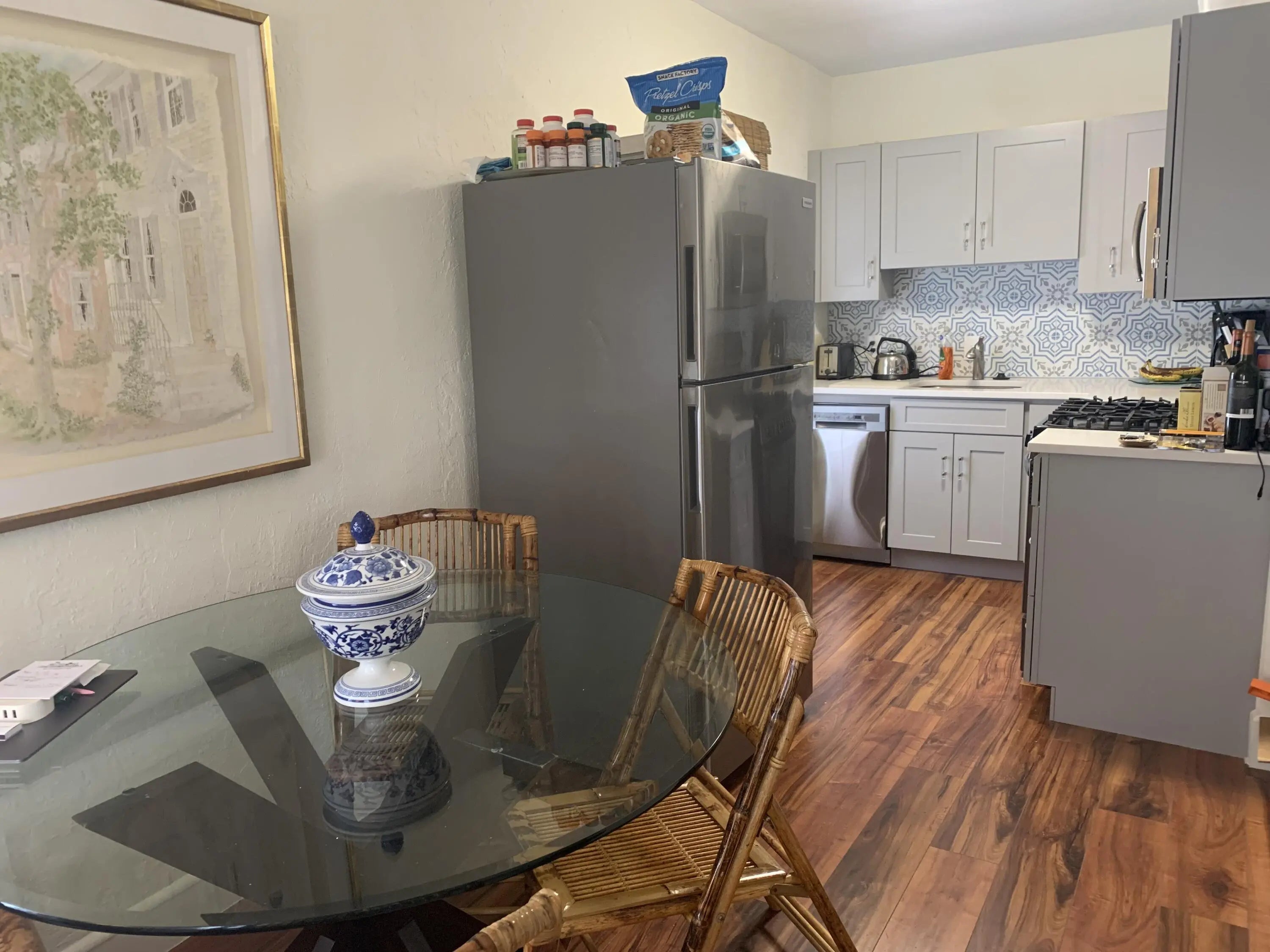 You'll love this bright, updated 2-bedroom, 1-bath upstairs apartment in the heart of downtown West Palm Beach! The remodeled kitchen has clean white cabinets, newer appliances, and hardwood floors, while the updated bathroom and in-unit stackable washer and dryer add extra convenience. Enjoy central A/C and a prime location close to Palm Beach Atlantic, City Paws Dog Park, CityPlace, and just a short walk to Clematis Street for dining and fun. This is the south upstairs unit, tucked privately behind the main house.