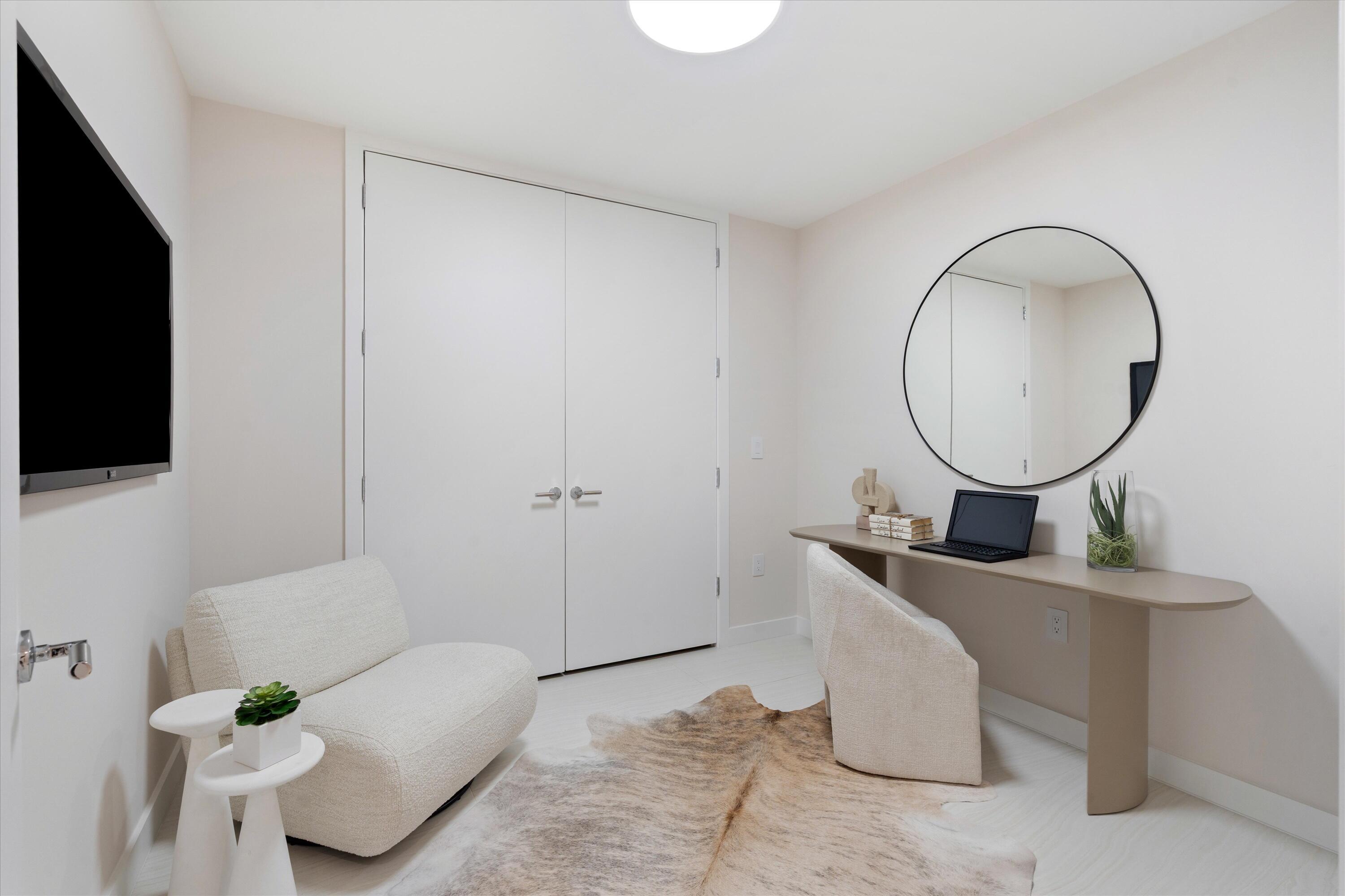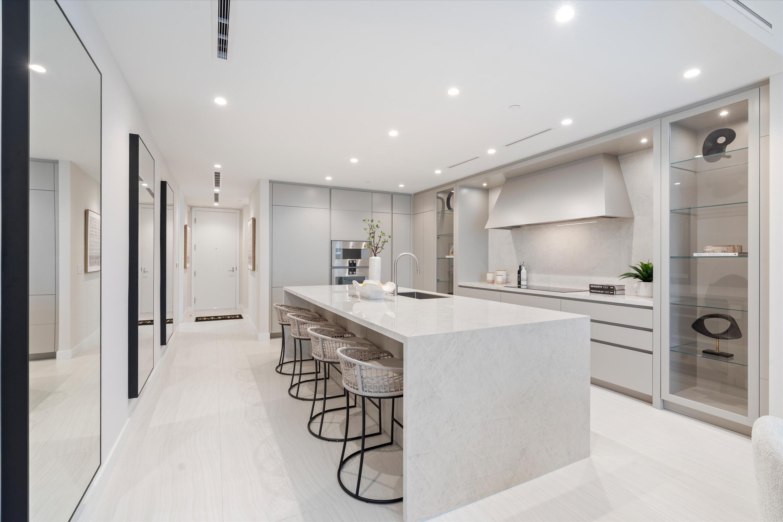 Experience refined living in the heart of downtown Boca Raton at ALINA Residences. This newly completed 4th floor condo, with desirable southeastern exposure, is move-in ready and seamlessly combines modern elegance with everyday comfort. The thoughtfully designed layout includes a spacious primary bedroom, a versatile den, and two full bathrooms--offering both style and functionality. The light-filled, open-concept living space is framed by expansive floor-to-ceiling sliding glass doors that open to a generous south-facing terrace, perfect for relaxing with picturesque golf course views or enjoying al fresco dining. Every detail has been meticulously selected, from motorized custom shades and built-in closets to sophisticated Italian finishes. The chef's kitchen features premium Gaggenauappliances, including an induction cooktop and wine refrigerator, delivering the ultimate in luxury and convenience. ALINA offers a lifestyle that redefines convenience and indulgence. Residents enjoy 24-hour security and valet service, a 75-foot lap pool, a cutting-edge fitness center with yoga and Pilates studios, a golf simulator, and spa facilities including sauna, steam, and salt rooms. Outdoor BBQ areas and an elegant lounge provide spaces to relax and connect.