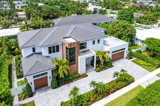 Spectacular Contemporary Living in Boca Villas. Crafted by renowned Primo Construction, this magnificent contemporary estate is ideally situated in the prestigious Boca Villas neighborhood--just steps from the ocean and moments from The Boca Raton, Mizner Park, Royal Palm Plaza, and East Boca Raton's finest restaurants and shops. This two-story, 5-bedroom, 6.5 bath residence offers a seamless blend of sophisticated design and luxurious comfort. Each bedroom has en suite baths. The second floor boasts a primary bedroom and 3 secondary bedrooms. The open concept living area features soaring ceilings, a sleek modern glass stairwell, and a gourmet chef's kitchen; all anchored by a decorative remote-control fireplace that adds both warmth and elegance.offers additional flexible living space, ideal for a media lounge, playroom, or secondary office. Each of the home's bathrooms is adorned with tasteful decorative porcelain tile, showcasing refined craftsmanship and cohesive design. Additional highlights include a private office with designer doors, a separate cabana bath, a spacious 3-car garage, a beautiful elevator, impact glass throughout, and a generator for added convenience and peace of mind. Step outside to your own serene retreatan exquisite spa-like pool with elegant water features, a covered patio area, and a fully equipped summer kitchenperfect for alfresco dining, entertaining, or relaxing in style. Meticulously built with exceptional attention to detail, this Boca Villas masterpiece defines contemporary coastal living in the heart of Boca Raton.