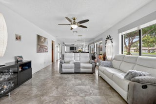 Pack your bags (offered turnkey or furnished subject to exclusions) and move into this ''stunning'' updated 2 bedroom/2bath/1car garage villa where all the work has been done for you. Step inside to a bright, open layout where modern upgrades meet timeless comfort. Just perfect for cooking and entertaining, the kitchen has been updated with quartz counters, tile back splash and newer appliances. Both bathrooms have been beautifully redone, showcasing quality finishes and a clean, contemporary design. Hurricane impact windows and Hurricane entry doors ( 2023) provides peace of mind and energy efficiency. New electric panel (2023). Outdoor patio, perfect for entertaining or relaxing has views of wide open spaces between well maintained green-belt areas. Maintenance includes water