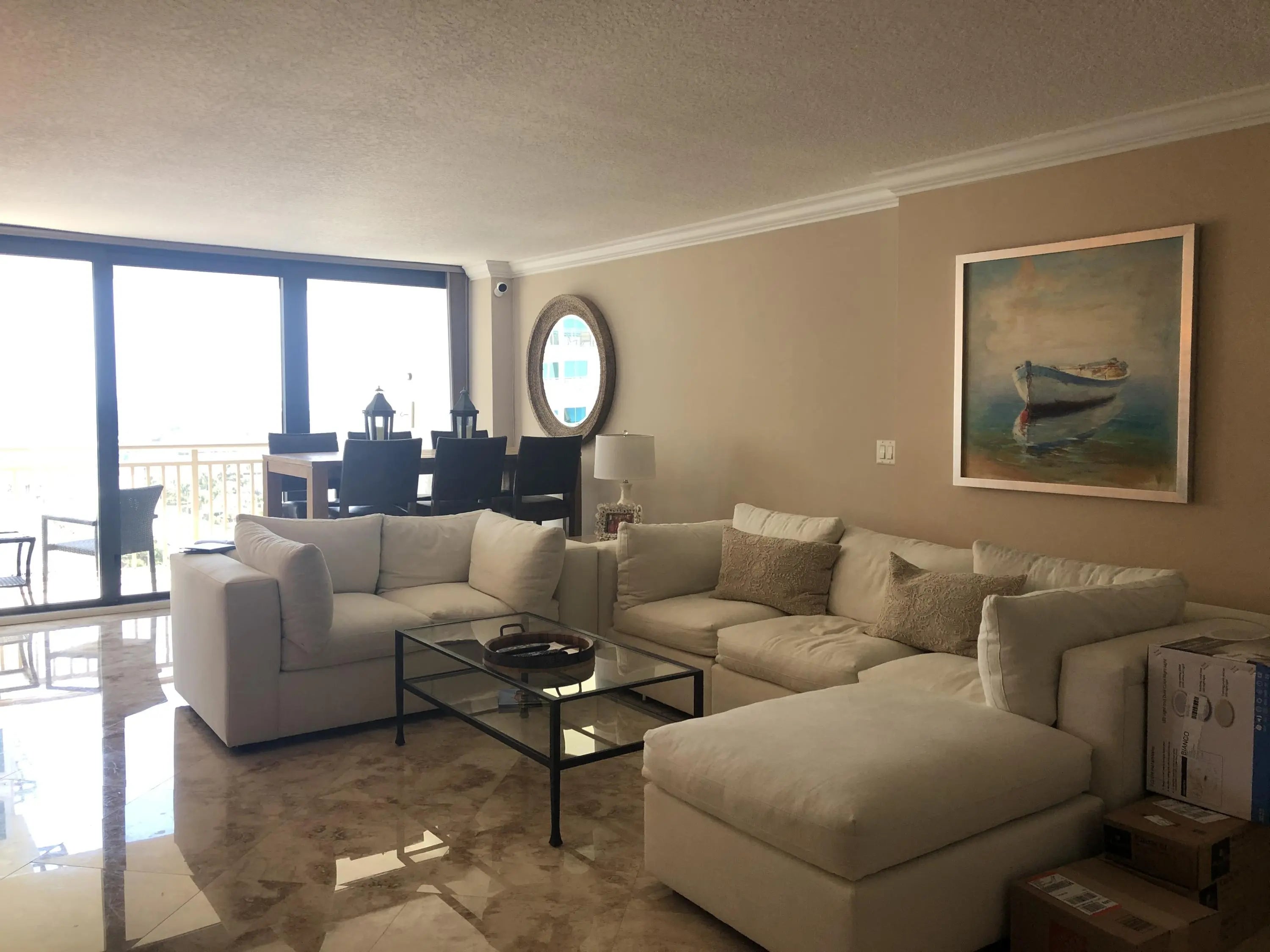 This large condo on the 15th floor in desirable Oceantree on Singer Island has been completely remodeled throughout and has beautiful views of both the ocean and the Intracoastal. Both bedroom suites have their own bathrooms and the family room/bar area also provides additional sleeping accommodations. High end furnishings throughout,. Oceantree is on over 6 acres of beautiful sandy ocean beach with beach services available and has two heated pools, hot tub, picnic gazebos, exercise room, library, community room, parking garage, and more! Must see!