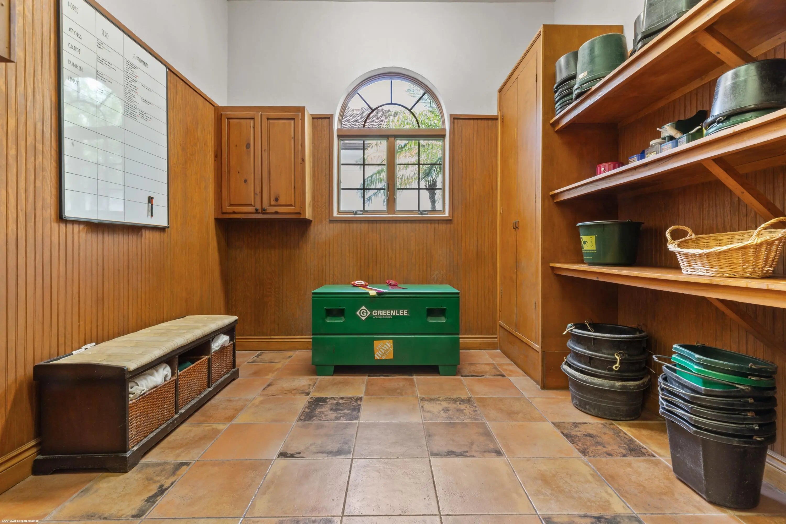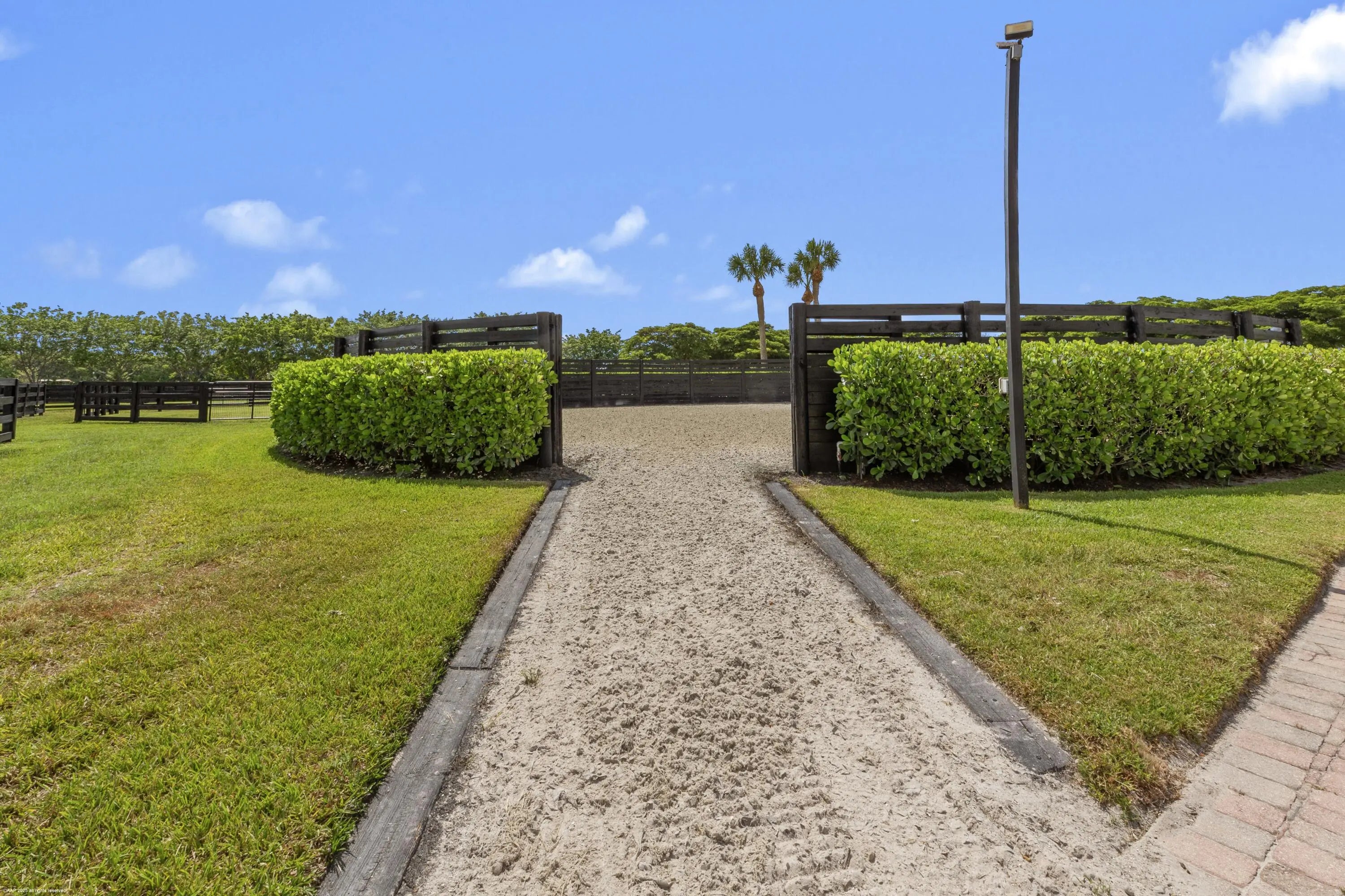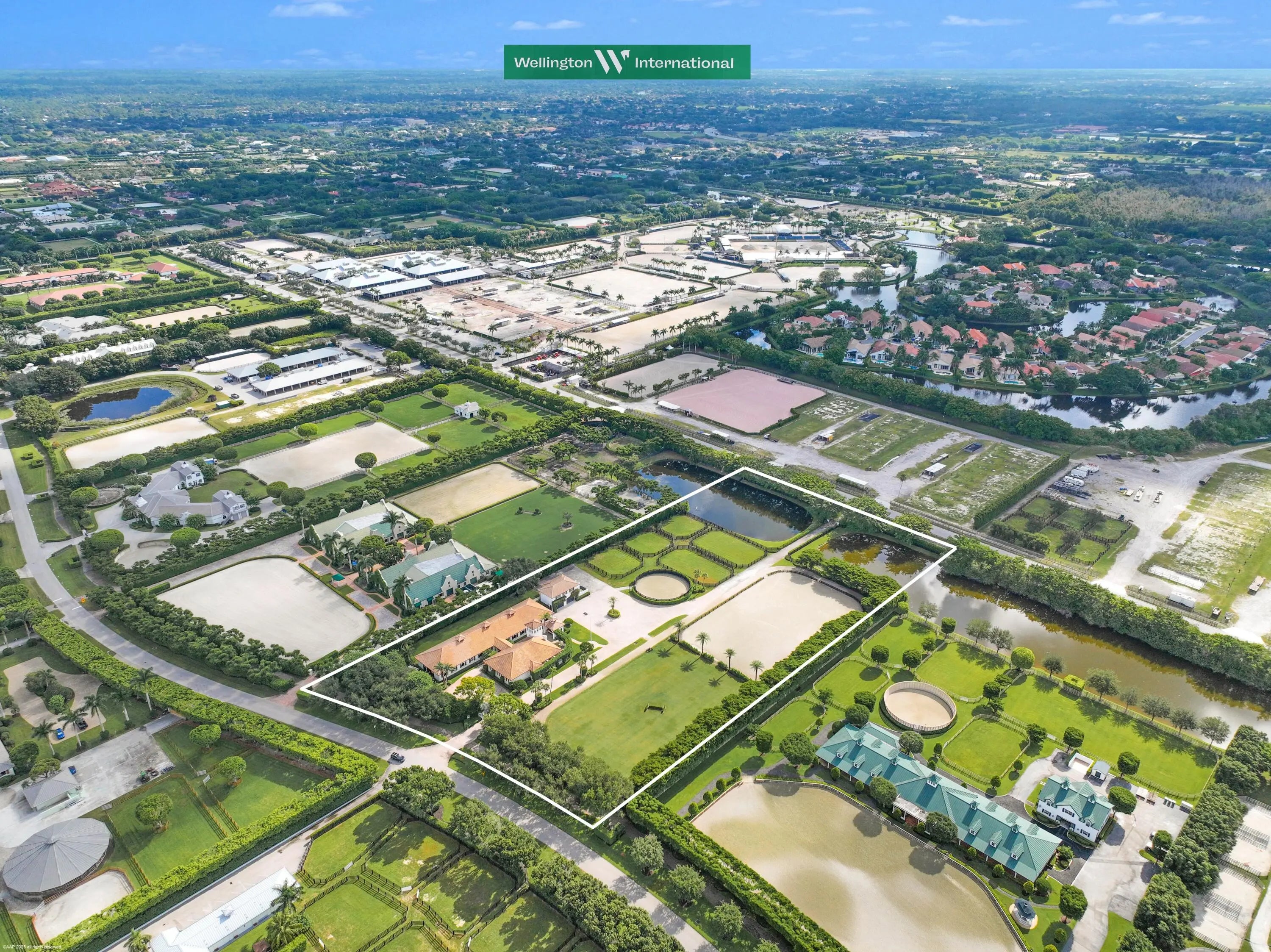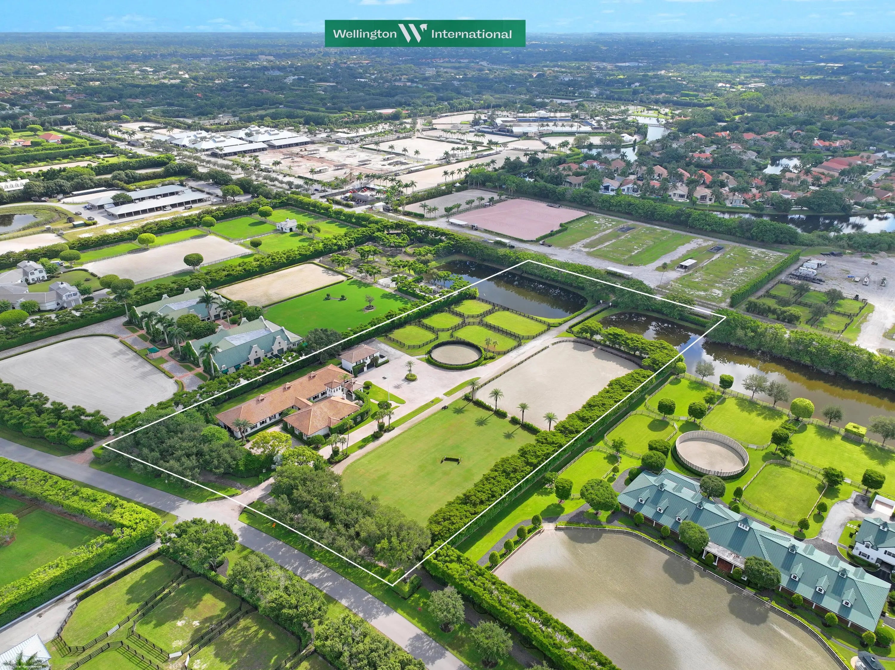 Nestled in prestigious Grand Prix Village, this exceptional 5.88-acre equestrian facility offers unparalleled access to the horse show grounds via a private gate. Featuring 16 spacious stalls, a tack room, feed room, and four wash stalls, the property is designed for elite equestrian performance. The owner's quarters include a luxurious two-bedroom, 2 bath apartment, a private office, and a lounge for relaxation. Staff accommodations provide a comfortable three-bedroom, two-bath residence. The state-of-the-art all-weather arena, adjacent Grand Prix field, and surrounding track, complemented by five paddocks and a lunging ring, create a world-class environment for training and competition. A rare gem in the heart of equestrian excellence.