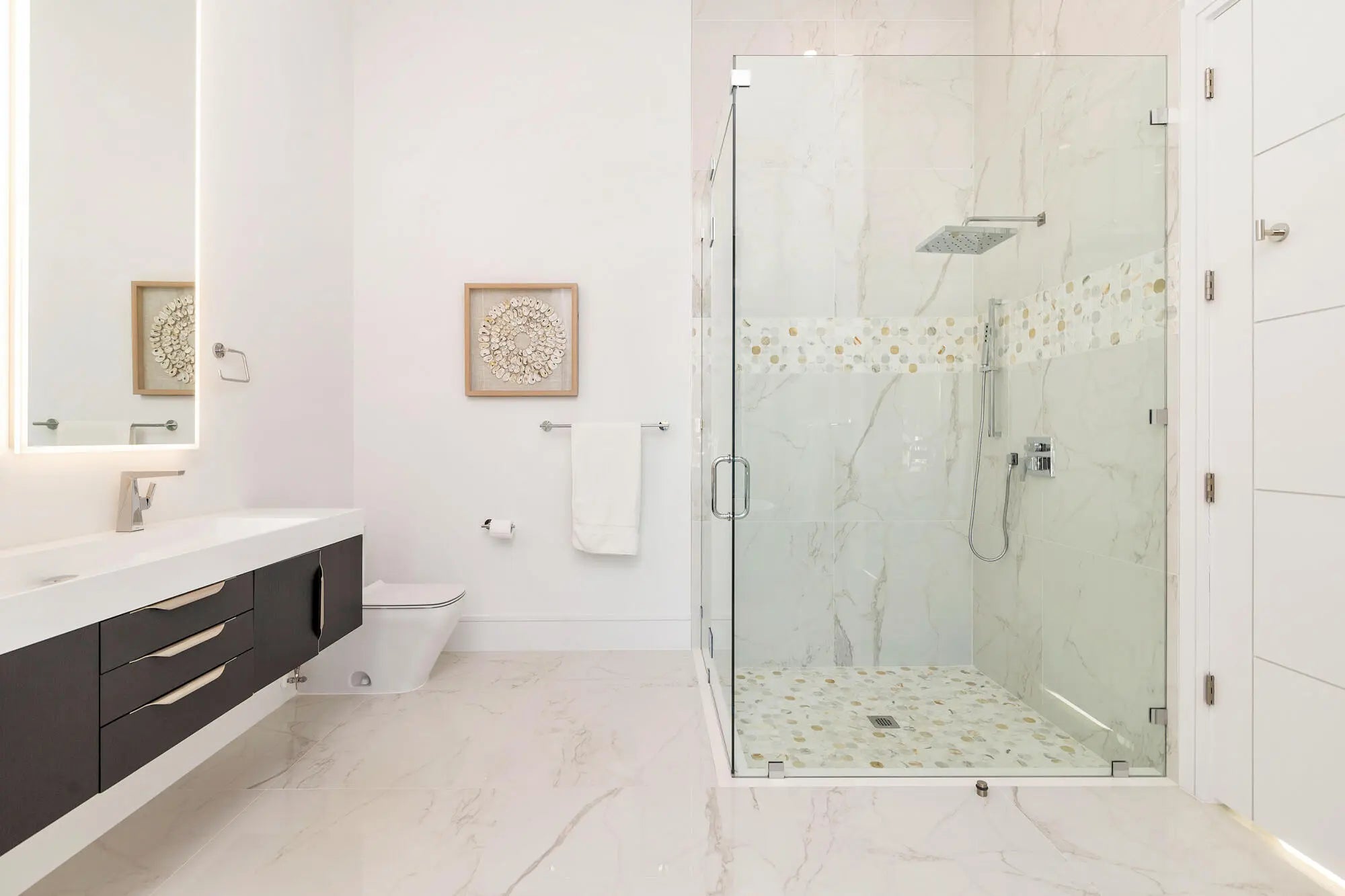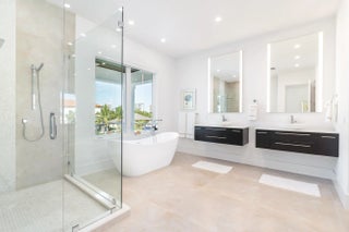 This breathtaking two-story modern residence, completed in 2023 is situated on a 100x110 lot with 100 feet of waterfrontage. The home offers stunning views of both the canal and the Intracoastal, seamlessly blending luxury, comfort, and contemporary design. With 4 bedrooms and 4.1 bathrooms, this 4,852-square-foot home boasts an expansive total area of 7,246 square feet. Designed with exceptional attention to detail, the residence is filled with natural light, thanks to floor-to-ceiling windows and soaring 23-foot ceilings. The open-concept layout provides a sense of space and grandeur, while all-impact glass and doors ensure security and peace of mind. The main level features a gourmet kitchen equipped with top-of-the-line appliances, a walk-in pantry, custom lighting, and a