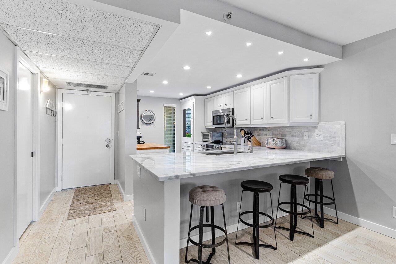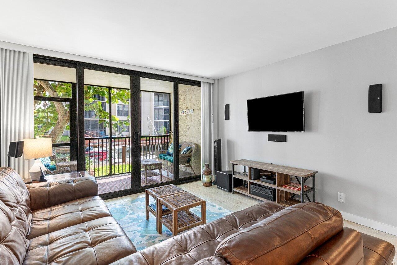 Experience luxury waterfront living at Boca Bayou, a premier gated community. Set on 46 acres of beautifully landscaped grounds, Boca Bayou offers a true resort experience with 5 heated pools, tennis, pickleball, fitness centers, saunas, bocce, shuffleboard, billiards, grilling stations, a new clubhouse underway, and even car wash stations, all secured by 24-hour manned gates. Boaters enjoy private canals with direct ocean access, making this community a true paradise for waterfront living.This completely renovated first-floor unit combines modern luxury with the ease of direct water access. From your private screened-in patio, enjoy tranquil canal views framed by lush greenery and a private 26-ft dock, ready for your ocean adventures. The newlyrenovated dock features durable composite decking, installed just one year ago. It also includes mooring whips to help protect your boat. Inside, enjoy a sleek open-concept design featuring high-end kitchen with integrated appliances, custom cabinetry, and ample counter space with seating for guests. The spacious living and dining areas flow seamlessly to the patio, creating the perfect indoor-outdoor connection. The split bedroom floor plan ensures privacy, with the primary suite offering dual vanities, abundant storage, and a spa-style shower with body sprays. The versatile second bedroom includes a custom Murphy bed, making it ideal as a guest suite or home office. Built-in closet systems and brand-new impact windows and doors add both style and peace of mind. With assigned parking directly in front of the unit and plenty of guest parking, convenience matches comfort. All assessments are paid, 30-year concrete recertification complete, and new clubhouse renovations underway. Monthly fees cover building insurance, water, cable with HBO, and reserves. Just minutes from Boca Raton's finest beaches, Mizner Park, Royal Palm Plaza, and the vibrant downtown scene, this property captures the essence of South Florida living. Whether boating, entertaining, or simply unwinding in serene surroundings, this home is an exclusive waterfront sanctuary that won't last.